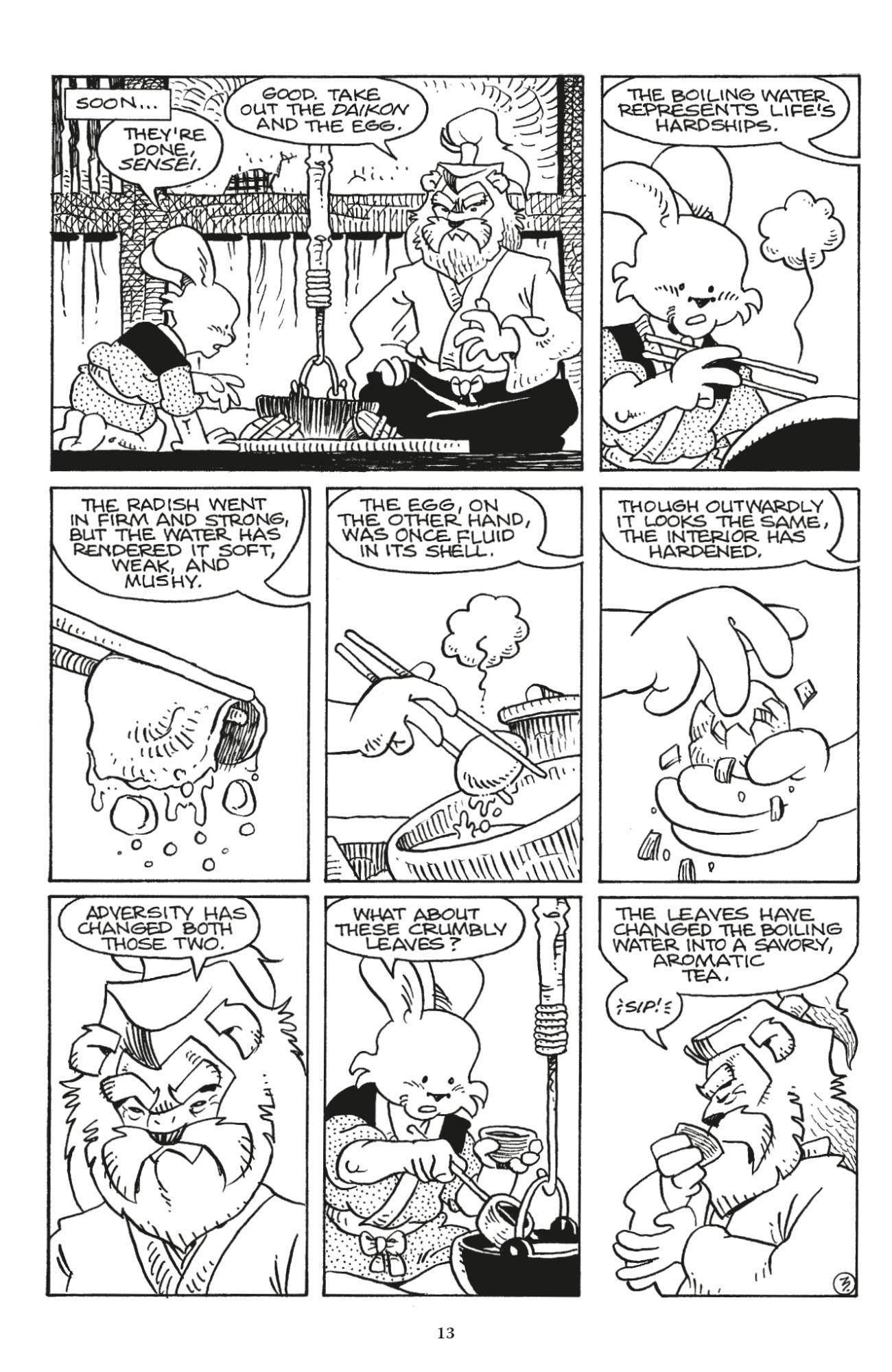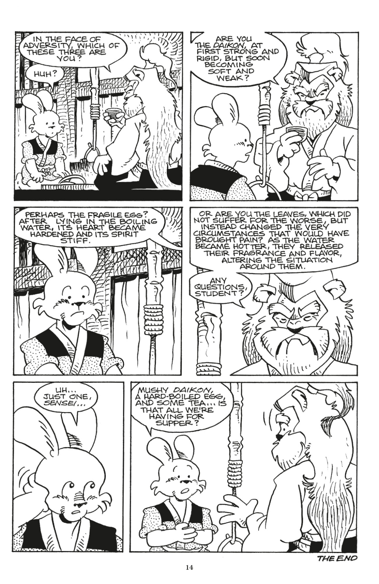 This fifth definitive Usagi Yojimbo collection sees the return of many of Usagi's friends. Inspector Ishida, the sneaky thief Kitsune, and the fearsome bounty hunters Gen and Stray Dog all make appearances. The retainer Tomoe Ame also returns in "Mother of Mountains," "Tomoes Story," and the poignant tea ceremony tale, "Chanoyu". Collects Usagi Yojimbo volume three #76-#93, Usagi Yojimbo Color Special #1-#3, and more!
