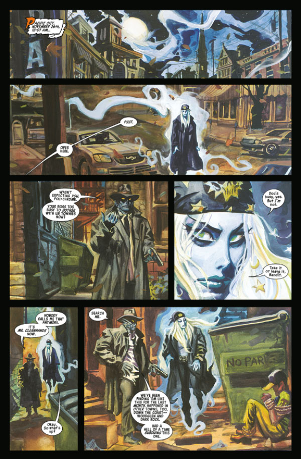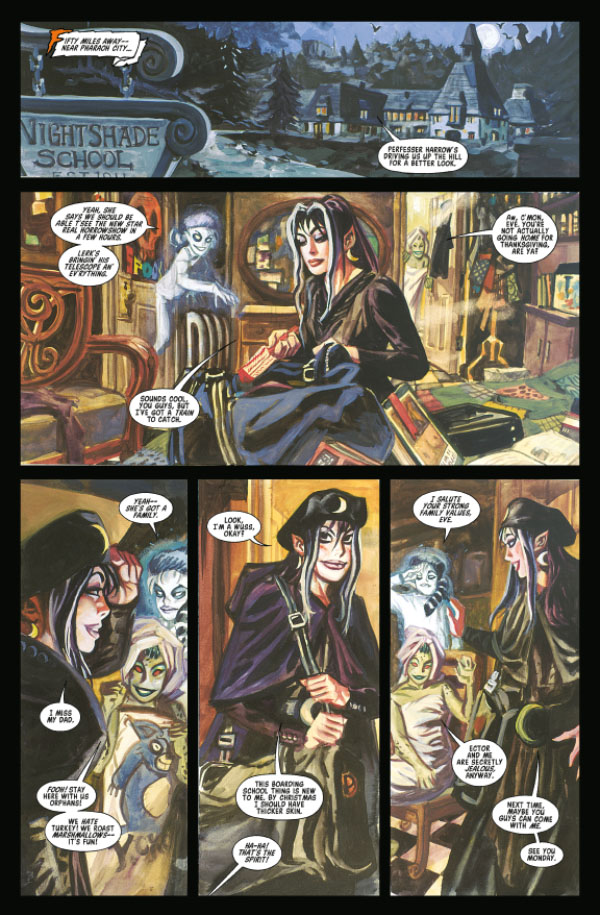 The Nocturnals revolves around the mysterious quest of underworld enforcer and occult figure, Doc Horror; his supernaturally-gifted daughter Evening (aka Halloween Girl) who carries a pumpkin full of haunted toys; the Gunwitch, a silent, two-gun revenant with an itch to kill monsters; the lissome wraith Polychrome, and a host of hard-boiled inhuman players battling hidden evils lurking on the outskirts of human knowledge.