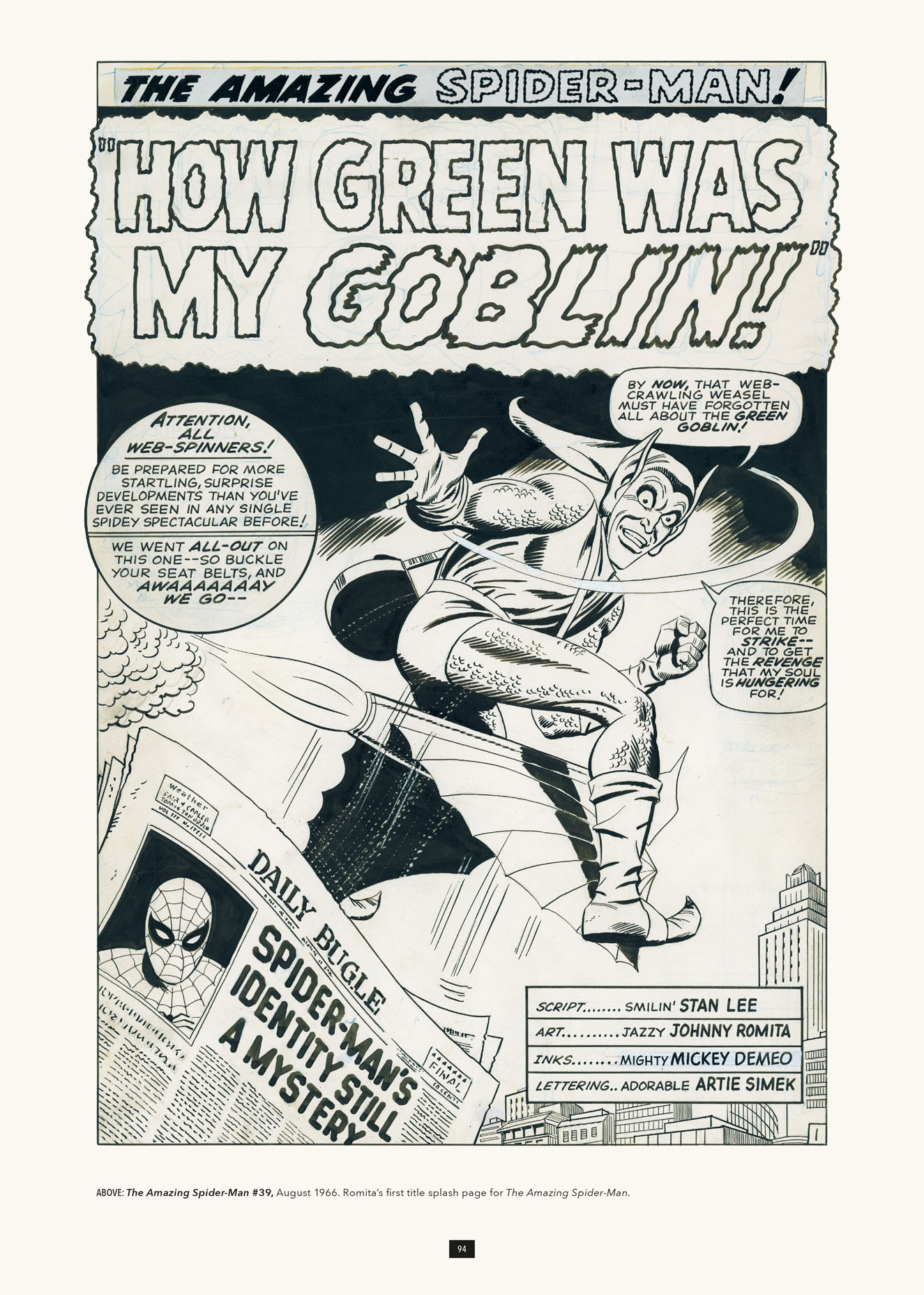 This oversized hardcover gallery collects iconic original art from The Amazing Spider-Man #39–#122, and is accompanied by essays from comics editor John Lind.