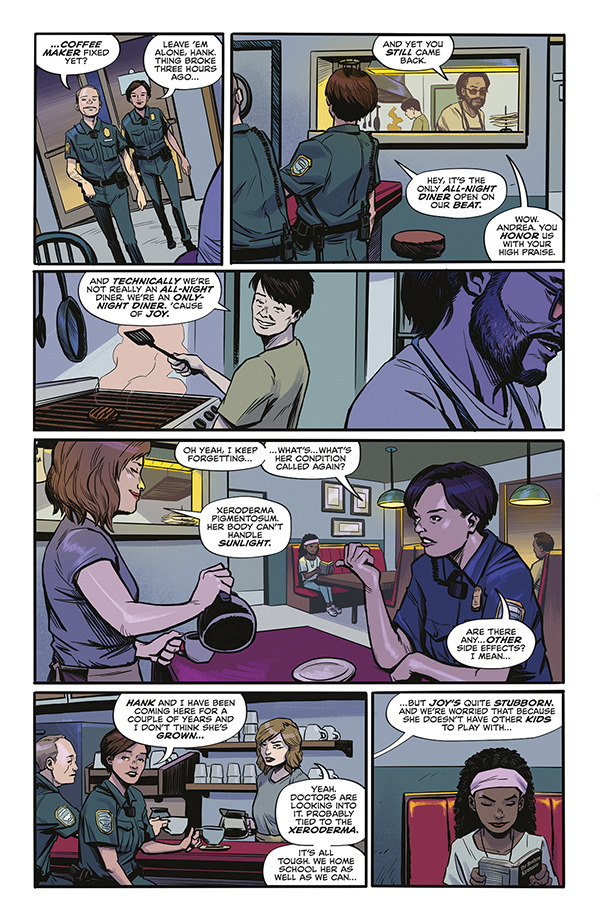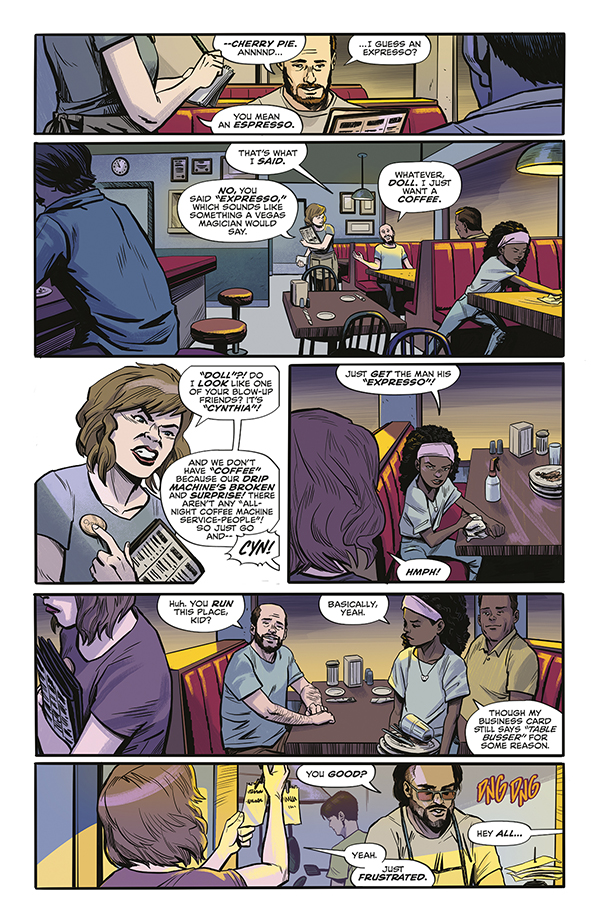 Welcome to the Allnighter, the only diner in town where you can get coffee and a meal from sunset to sunrise! The staff are friendly (kind of) and happy to serve you (sometimes), and it would never cross their minds to drink their customers' blood . . .