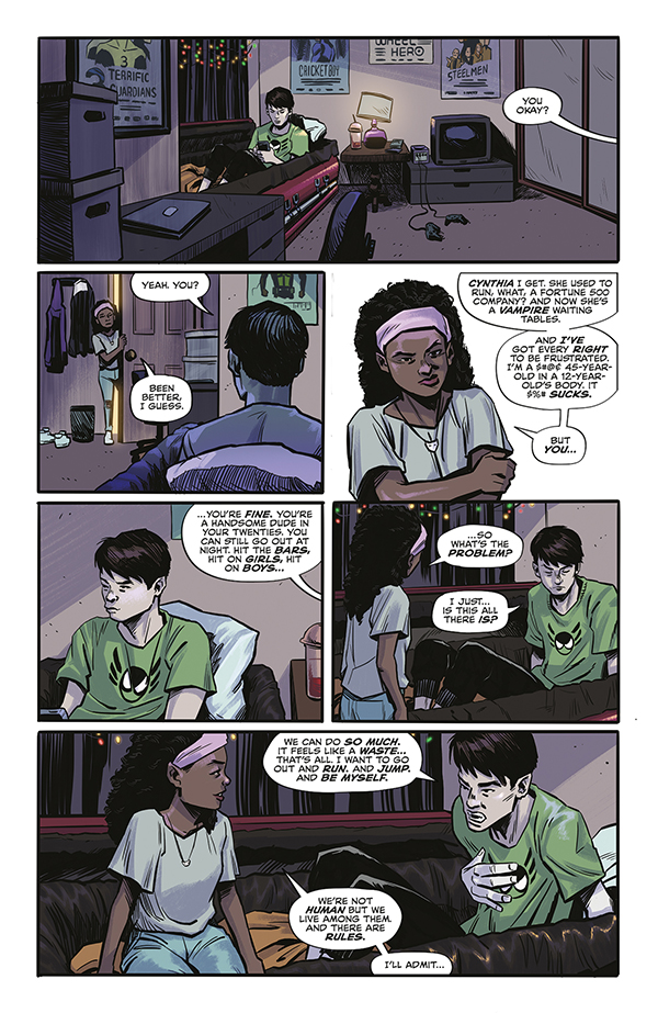 Alex is bored--flipping burgers for strangers all night is no way for a vampire to live. But he and his fellow vampires Joy, Cynthia, and Ian have agreed to blend into human society. Inspired by superhero movies, one of few passions in his un-life, Alex decides to don a cape and start fighting bad guys. But his decision will have bigger consequences than he realizes--for himself and for everyone he wants to protect.