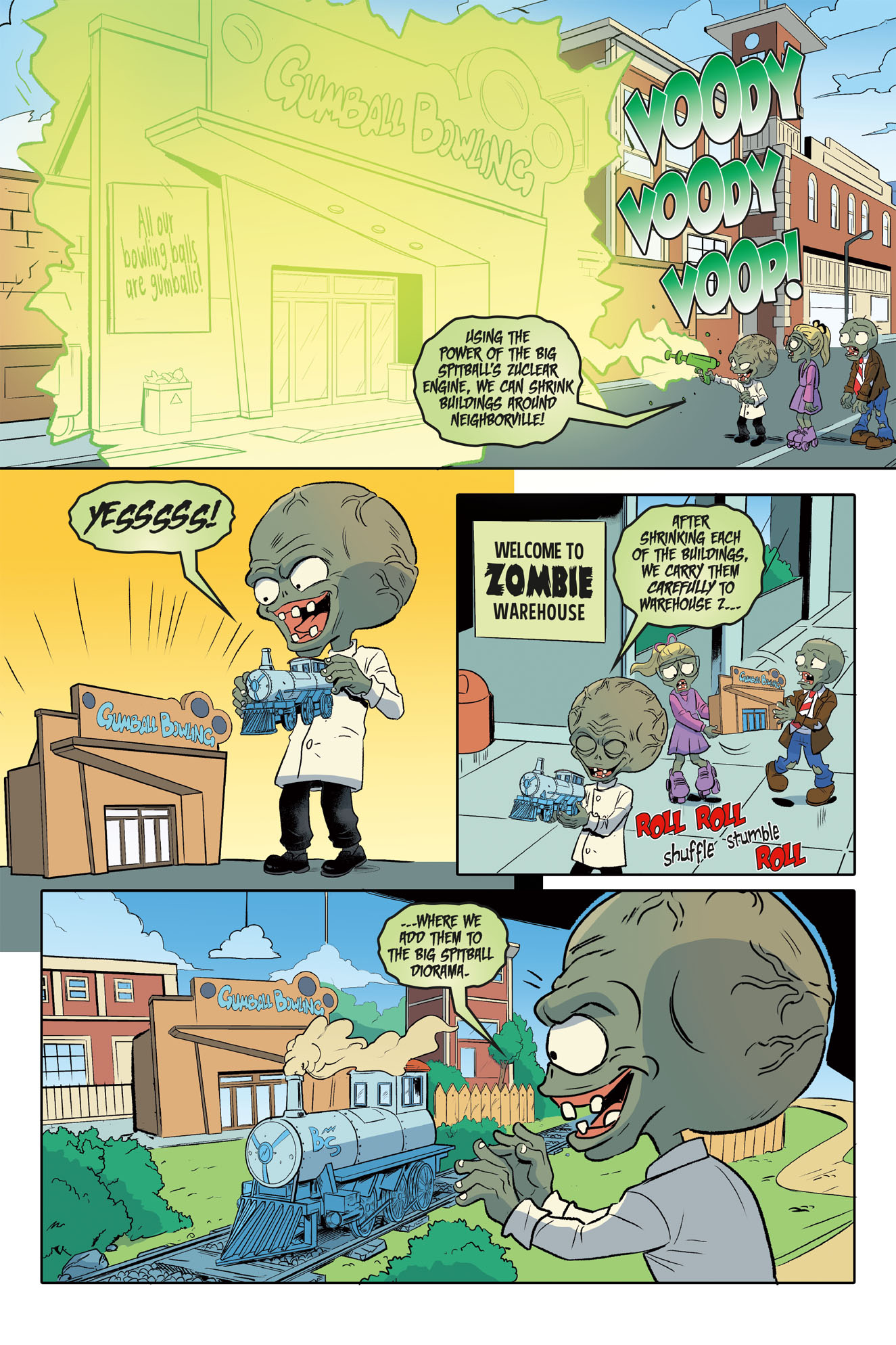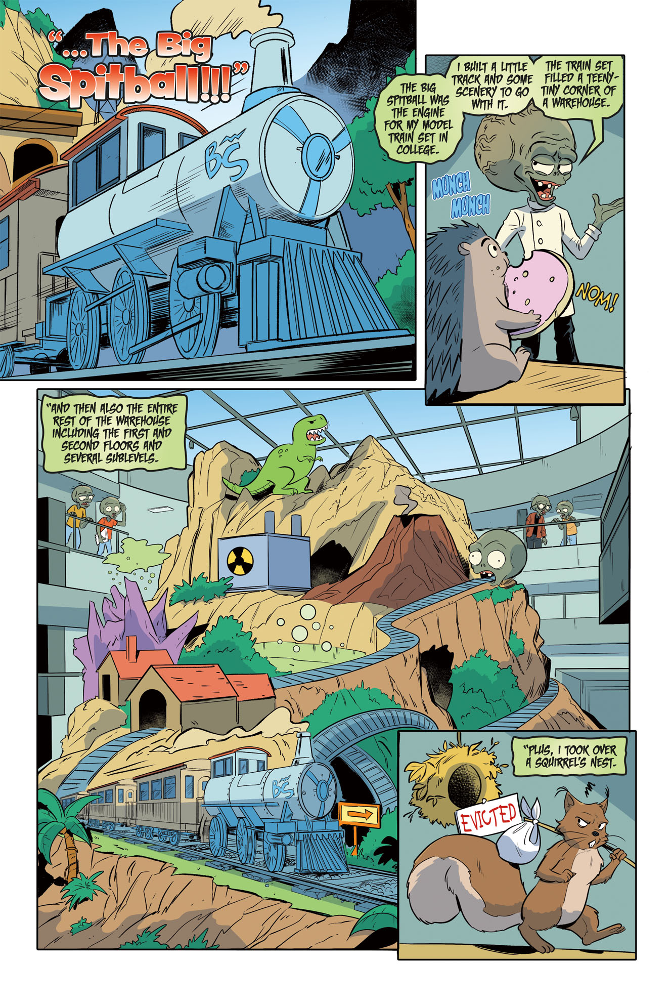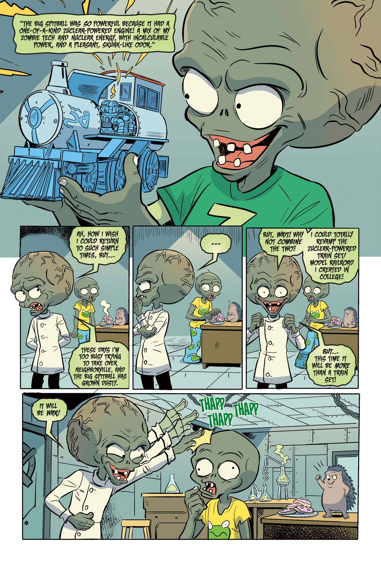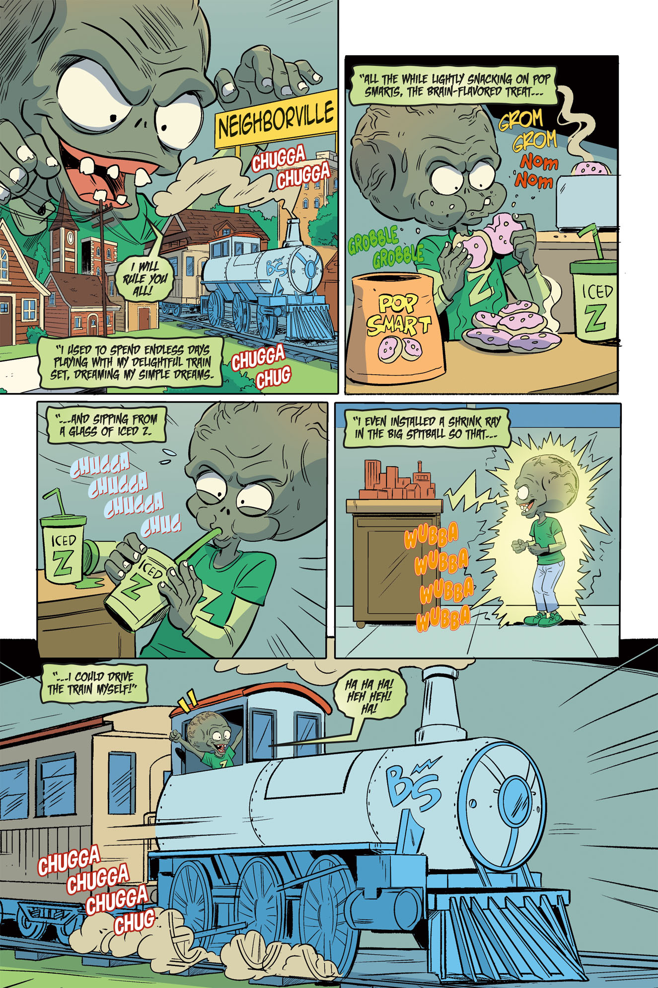 Zomboss visits his old model train, dubbed “Big Spitball,” in a gigantic train set that takes up a whole warehouse. Using the Big Spitball’s zuclear-powered engine and shrink ray, Zomboss miniaturizes the buildings of Neighborville and adds them to the huge diorama!