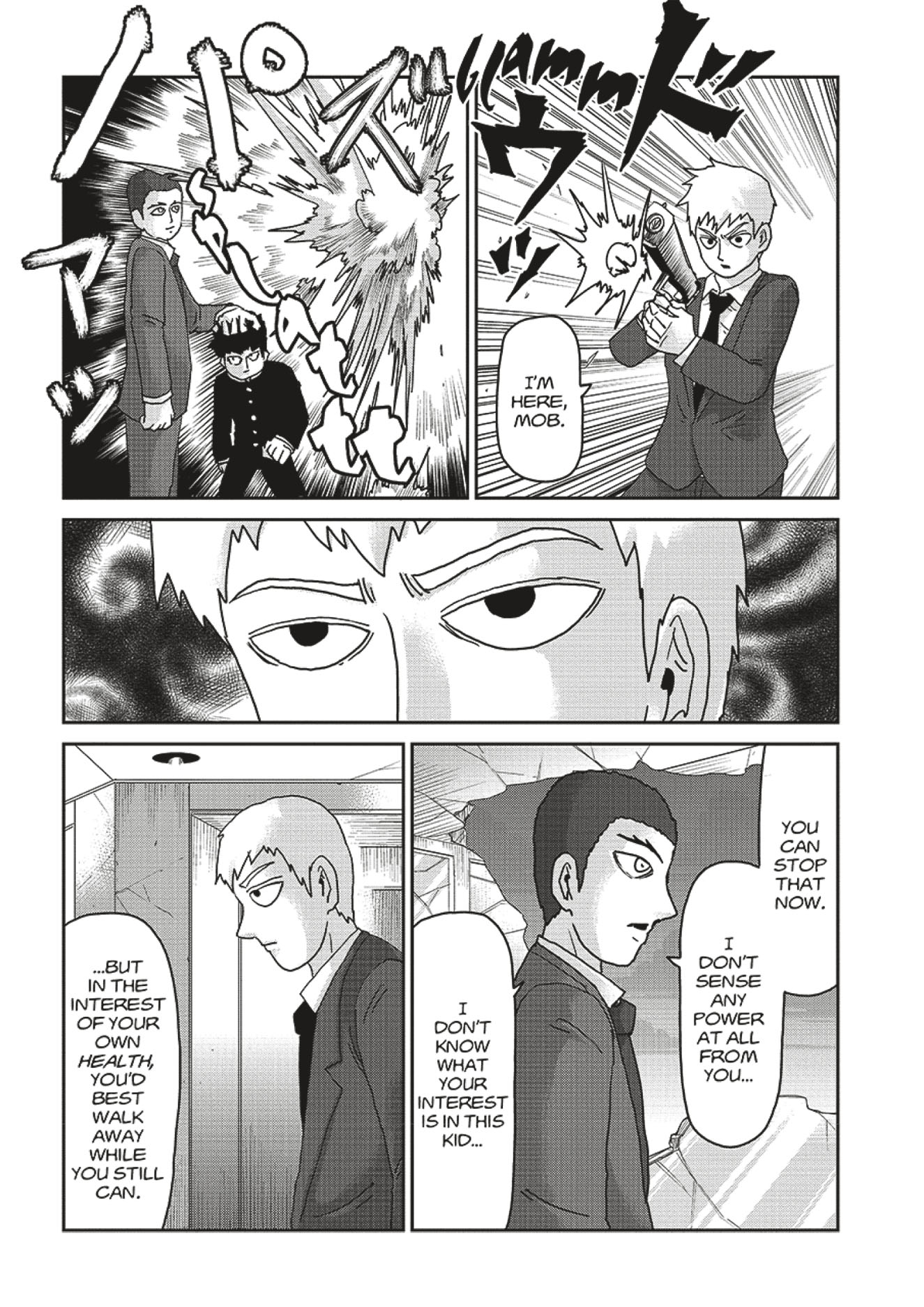 Mob knows what it means to be withdrawn and afraid of his own powers, yet he overcame that to make real friends. Can he convince Serizawa the same is possible for him, or will their standoff end only in destruction?