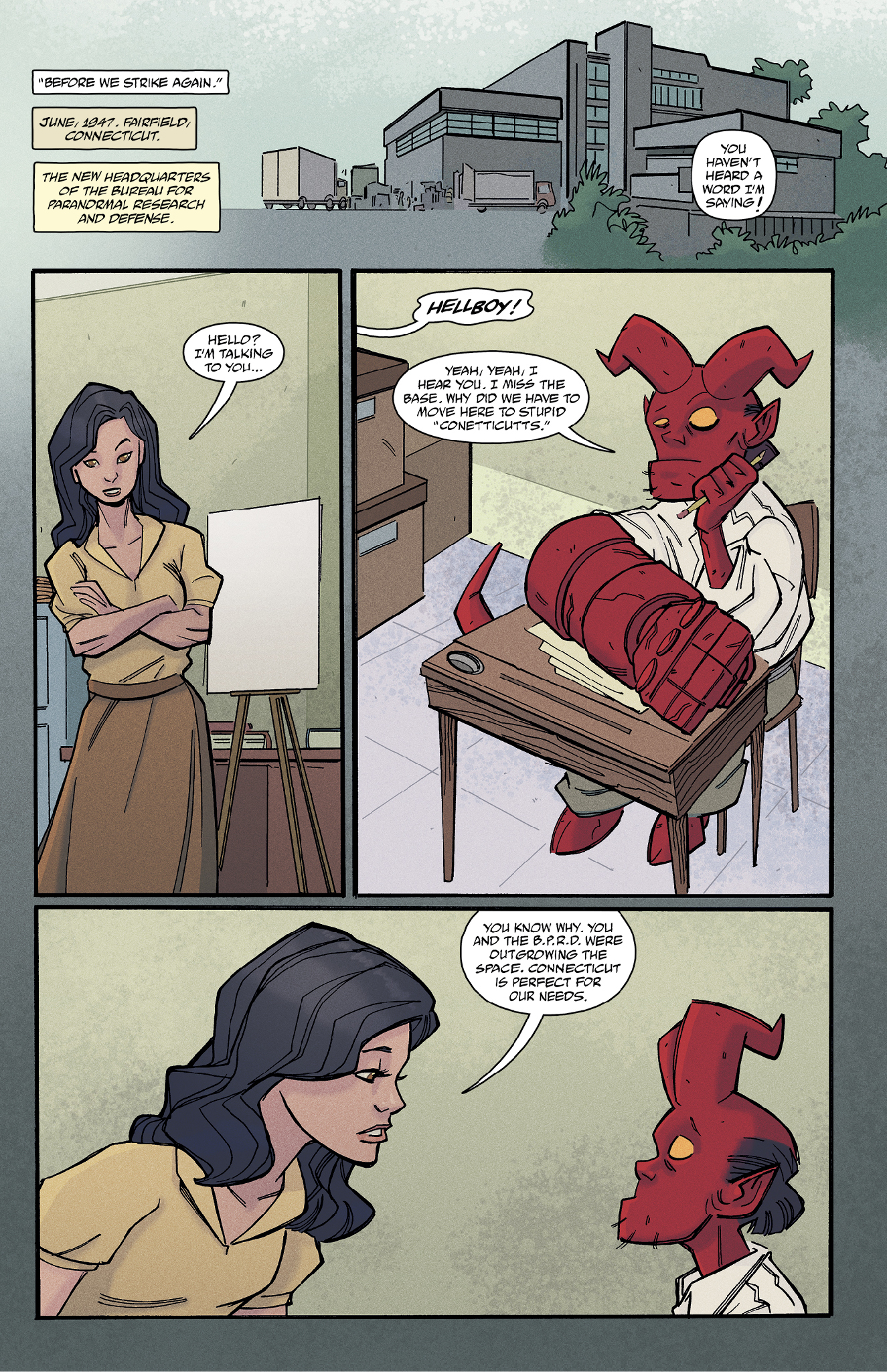 Returned from their adventures on a secret island, Hellboy and the Professor move with the B.P.R.D. from New Mexico to Connecticut. The relocation is tough on Hellboy: is he just homesick, or have scrambled memories from the island gripped the supernatural whippersnapper? Meanwhile, word of Hellboy's survival has also reached an unknown enemy, who failed to kill him once before but is determined not be foiled again . . . Collects the four-issue miniseries.