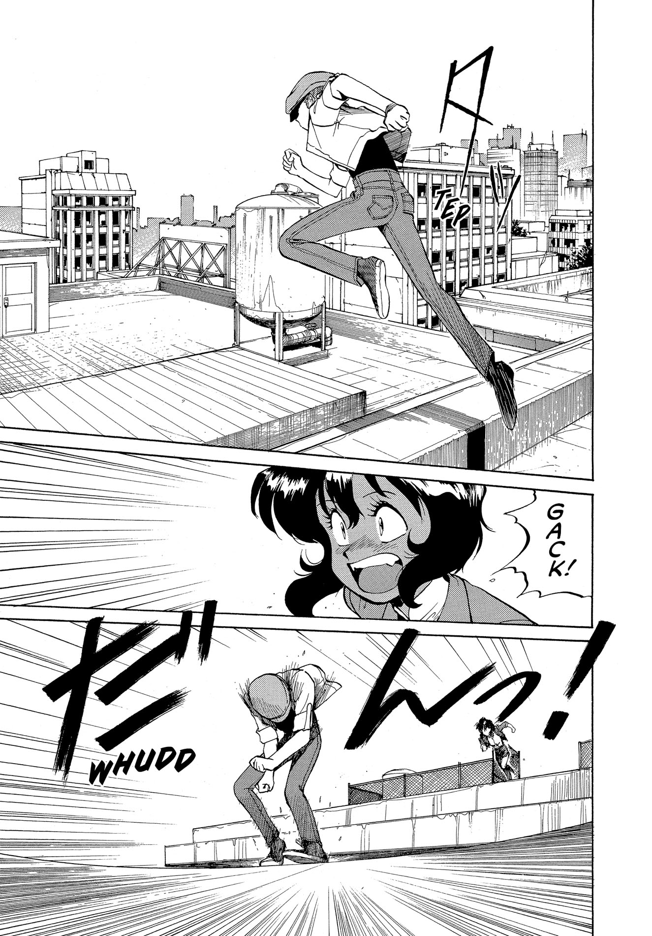Gunsmith Cats Omnibus vol. 1 introduces supporting characters including bespectacled info broker Becky Farrah, master thief Misty Brown, Chicago detective Roy Coleman, and the infamous transporter “Roadbuster” Bean Bandit—unstoppable either in his Corvette LS-7 or in hand-to-hand combat!