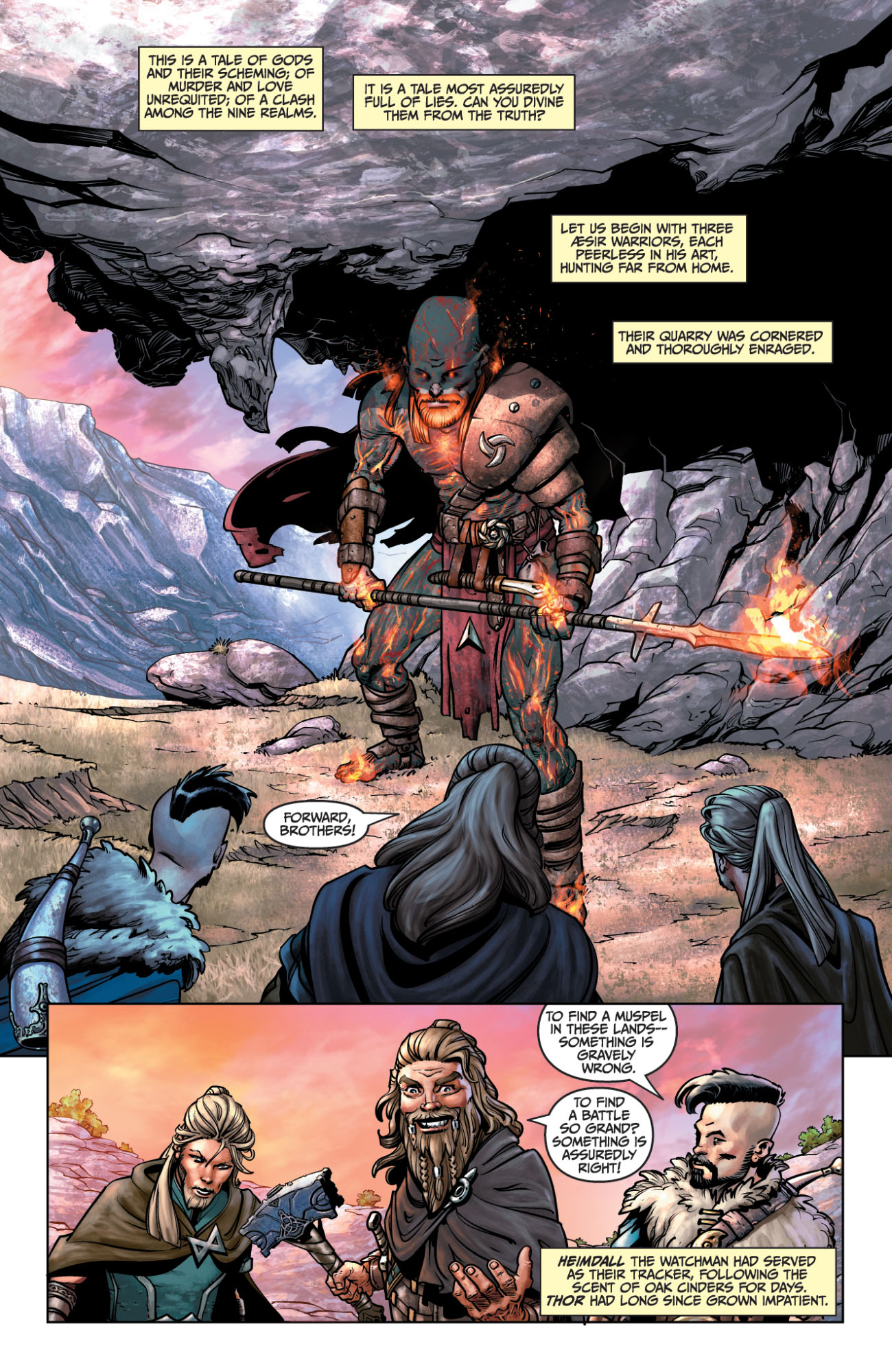 War is about to break out between the two neighboring realms of Muspelheim and Svartalfheim. Surtr, lord of the Muspels, is gathering his army of fire giants. Determined to prevent such bloodshed, Baldr, son of Odin and god of light, enlists the help of the great trickster god, Loki. Will Loki betray Baldr and the rest of the Æsir? Or will Baldr win the heart of the daughter of the Surtr and forge a lasting peace between the Nine Realms?
