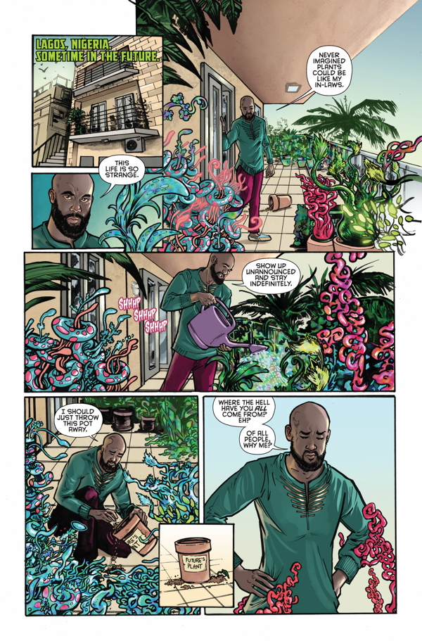 On a planet Earth bursting with integrated extraterrestrial life, pregnant doctor Future Nwafor Chukwuebuka is fleeing Nigeria under mysterious conditions. Her fiance doesn't know she's left, and she's smuggling an illegal, sentient plant into NYC. There, she'll be thrown into a vibrant immigrant community of humans and aliens, fighting for social justice and facing her past and her unexpected future.