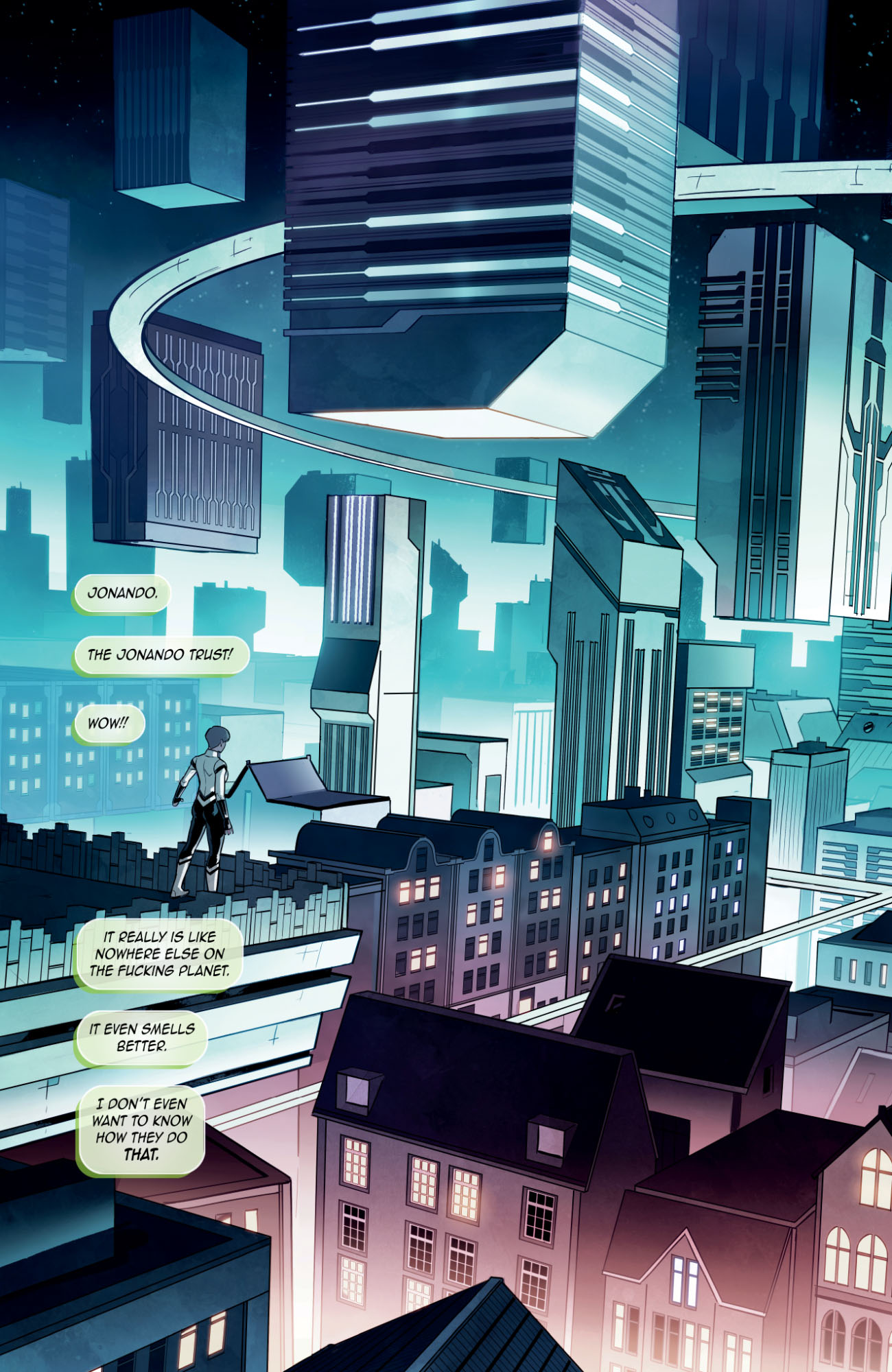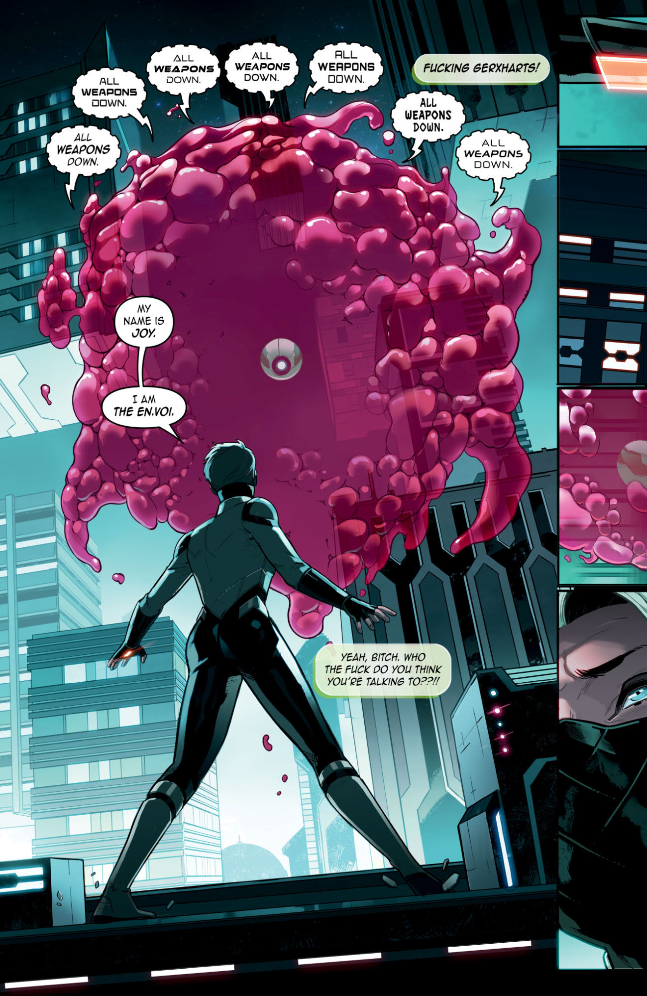 Fifty-five years from now. Joy is an EN·VOI. A special agent of the JONANDO TRUST. Trusts are corporate-owned cities that are the centerpiece of modern society. She rights wrongs for the trust. She is excellent. Perfection. Hard on herself. Driven. Almost legendary in some parts. Until one day a voice pops in her head trying to get her to betray everything she has ever believed.