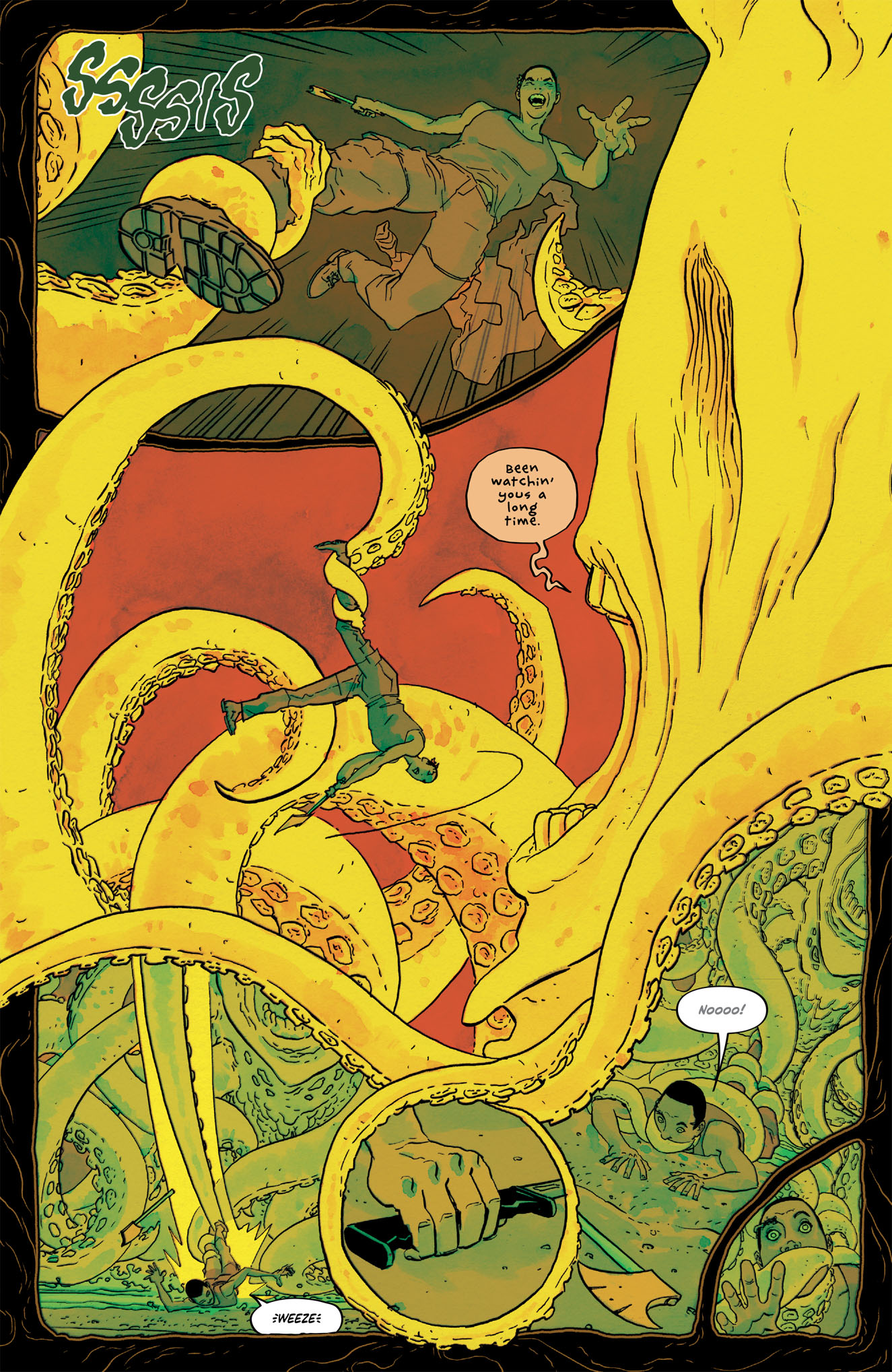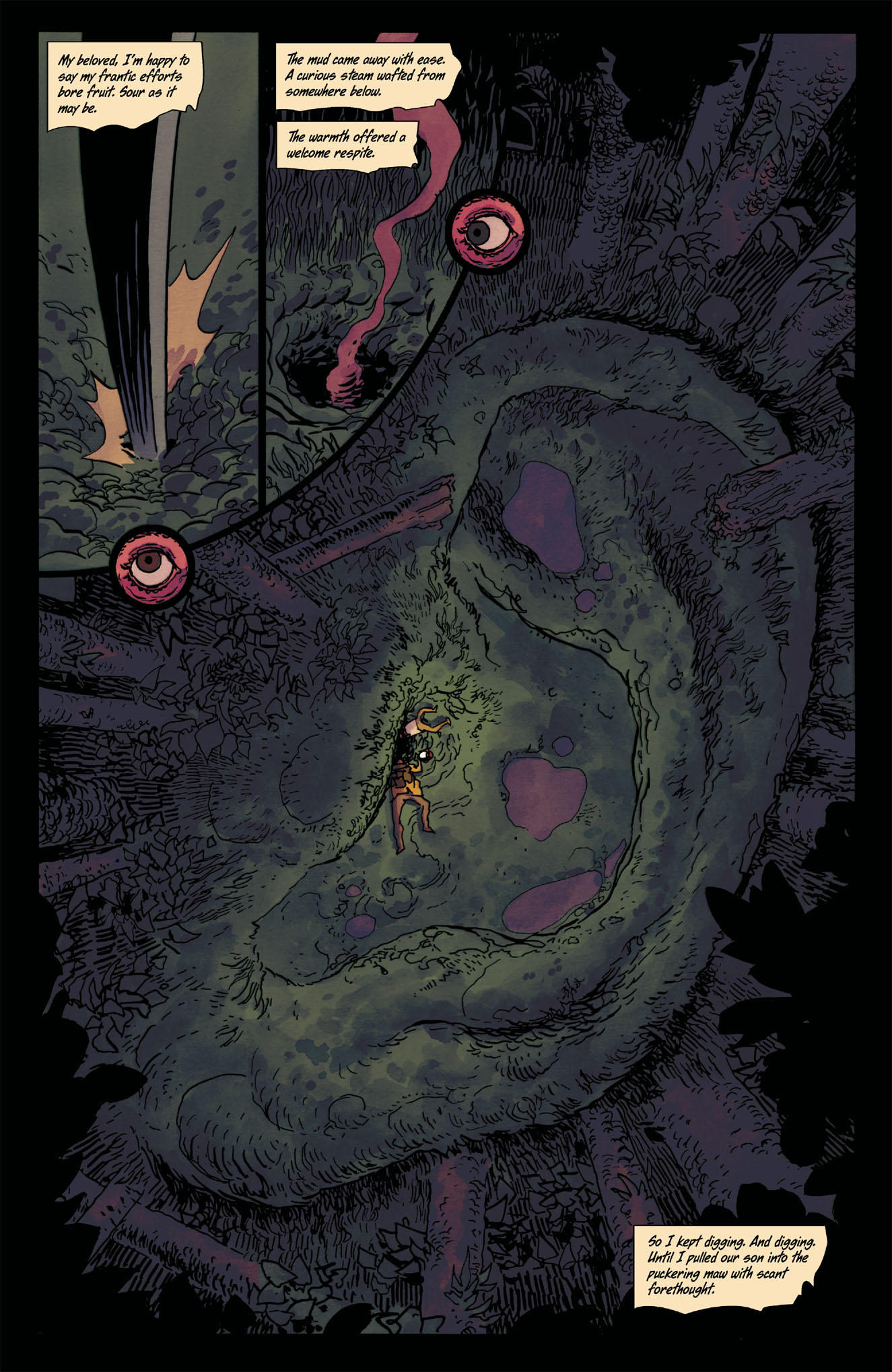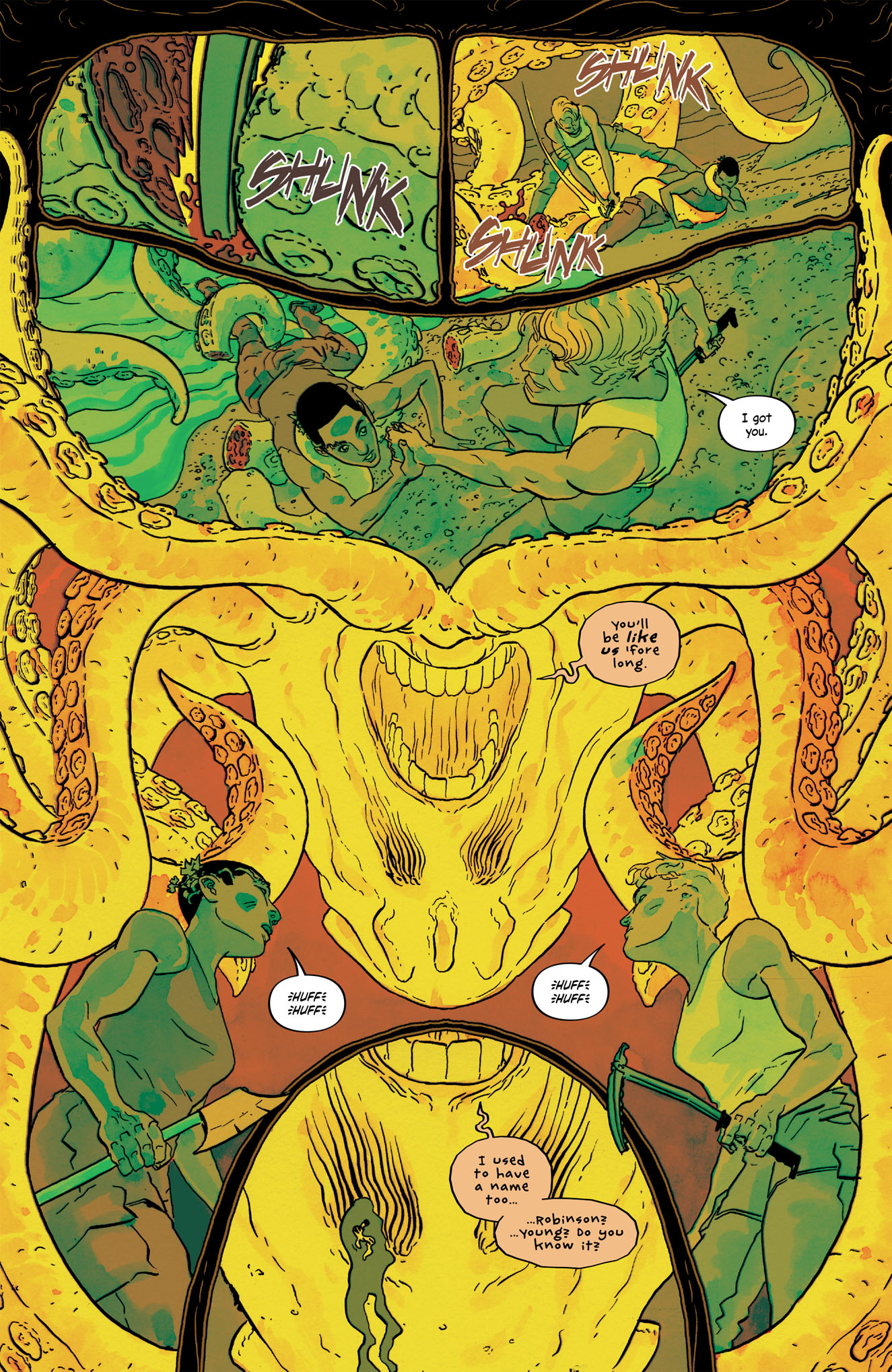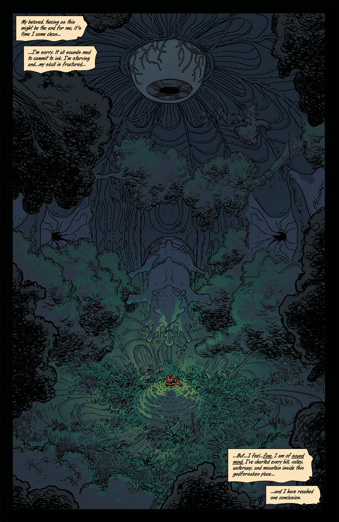 From critically acclaimed writer Zac Thompson and visionary artist Hayden Sherman comes part two of the S.I.N.E.W expedition’s ill-fated journey into a Lovecraftian labyrinth.
