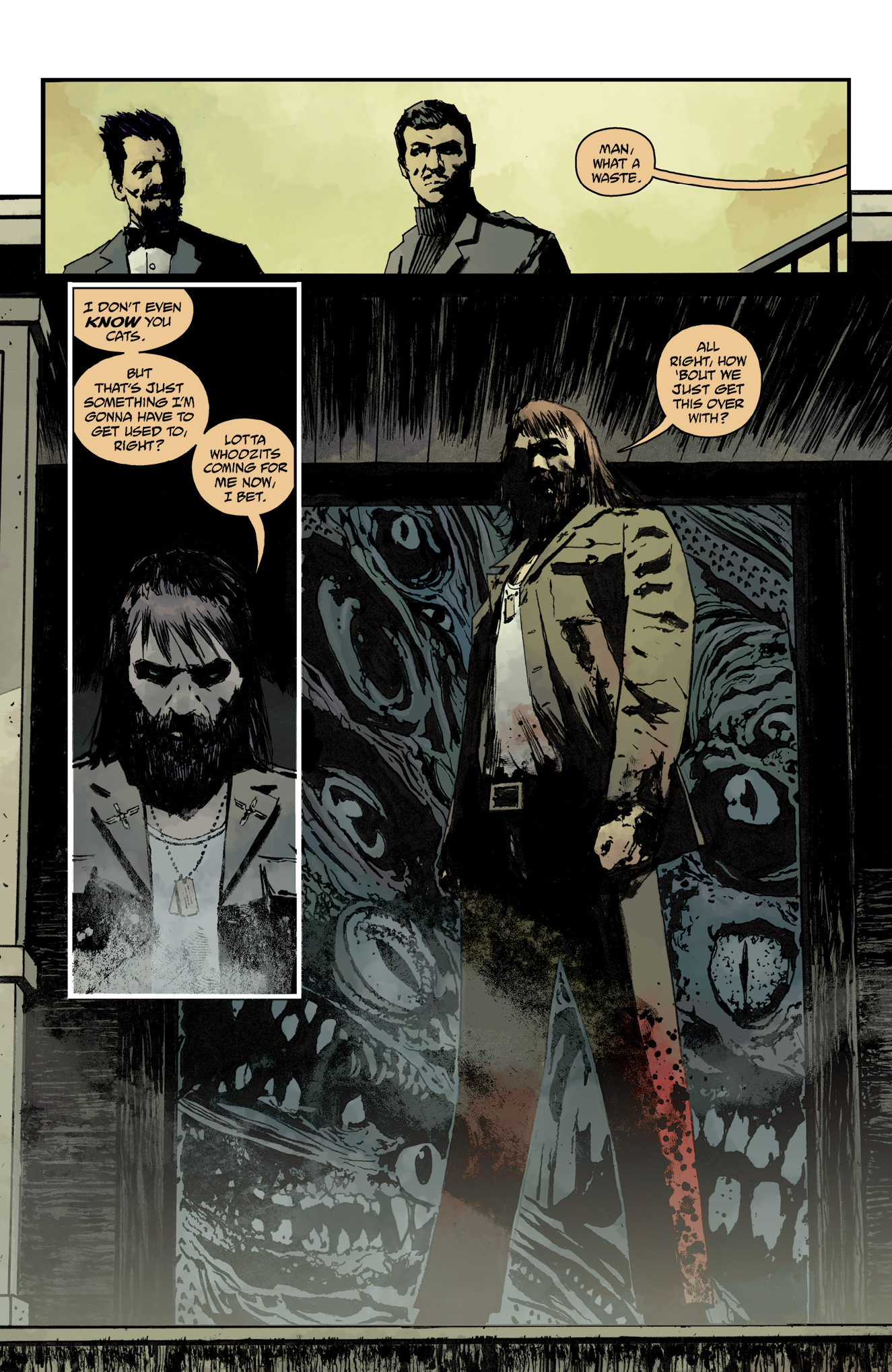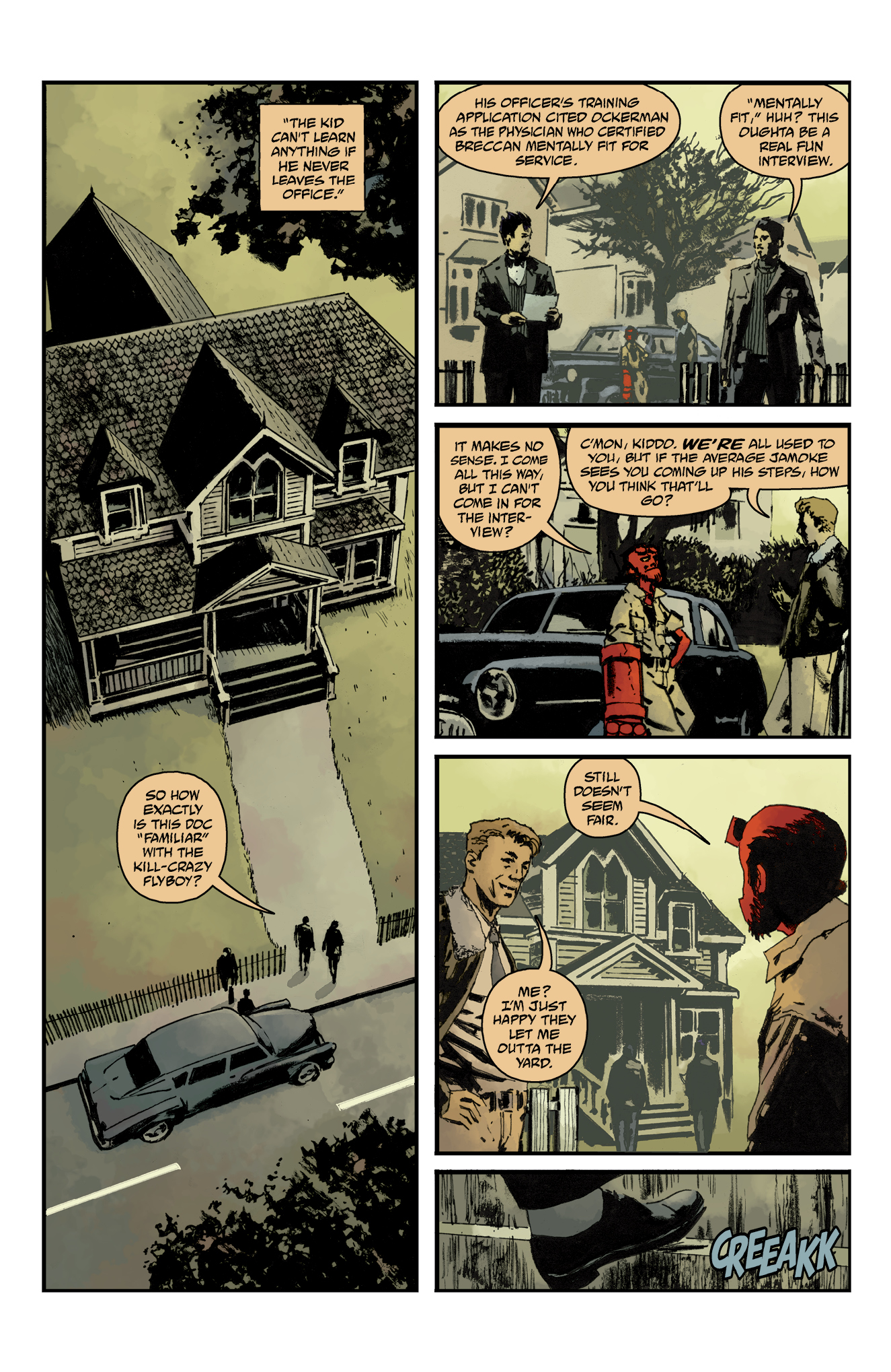 Elsewhere, B.P.R.D. field agent Ashley Strode attempts to purge a demon from a 100-year-old exorcist, setting her on a path to battling a demon who is kidnapping and eating children.