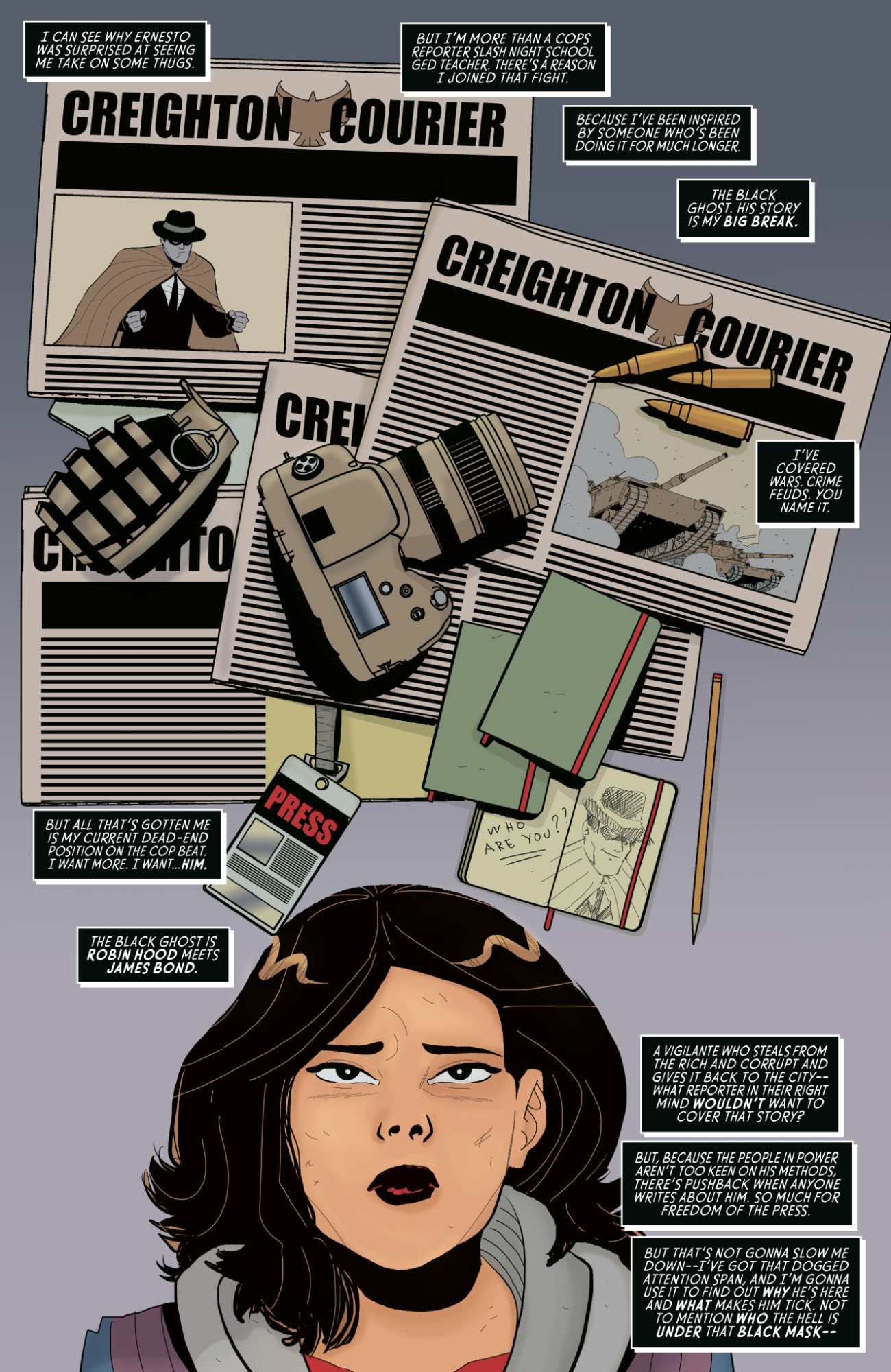 Six months after the events of the first arc, we find Lara in a different spot. Sober and focused on her job at The Creighton Courier covering the increasingly corrupt CCPD. But thats all about to change. A letter from a dead man, Marco Nava--the original Black Ghost, and her brother Tomas's best friend--derails Lara's plans, and sends her sprinting down a rabbit hole to find out more about the man who wore the Black Ghost mask before he was gunned down. Collects Black Ghost series two, #1-#5 in print for the first time.