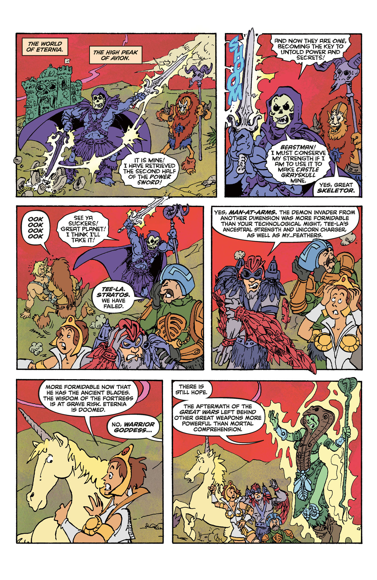 In the depths of Castle Grayskull, the Sorceress and Zodac debate the value of He-Man. To save the life of her champion, the Sorceress must take the Cosmic Enforcer on a tour of the multiverse.