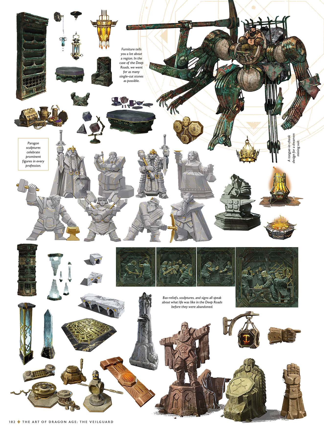 See characters as you've never seen them before—from concept to final design, explore the world and varied cultures of Thedas with splash art designs and props from the beautiful locales in the game, and inspect the armory—examining in detail hundreds of weapons and armor!