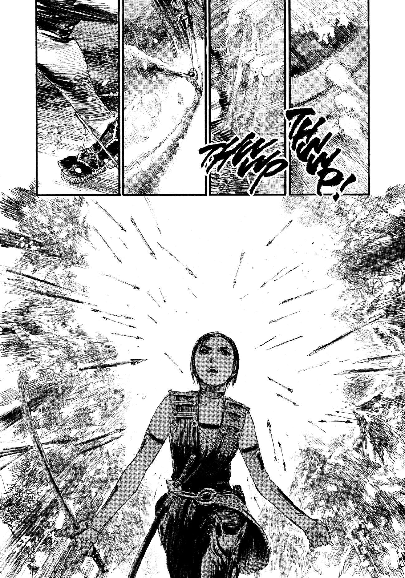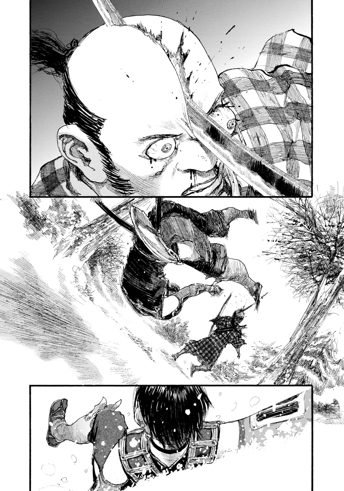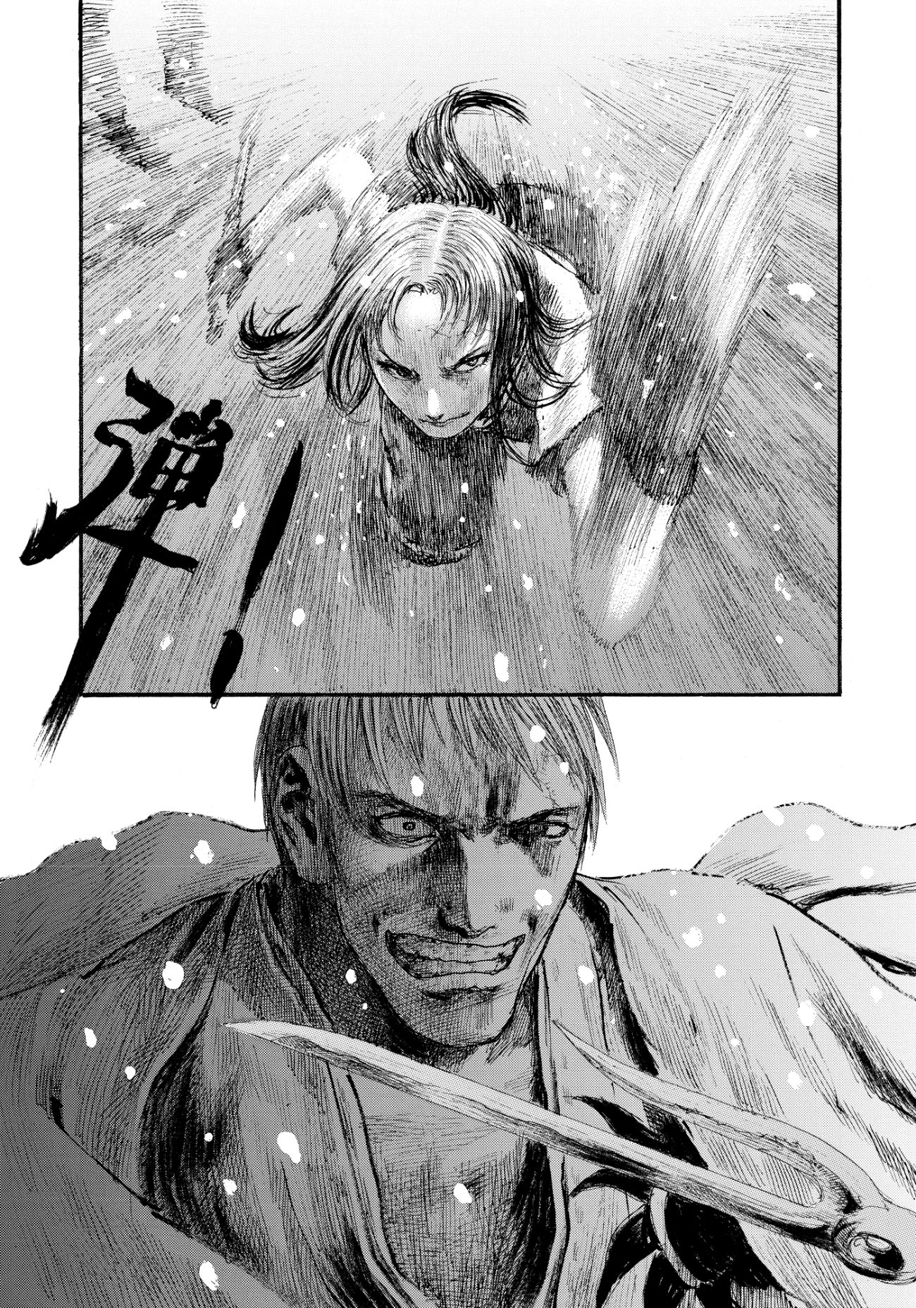 While Anotsu's strange crew of Itto-ryu are splintered and fatigued, Habaki Kagimura's group of suicidal Rokki-dan soldiers is hot on their heels. Paths cross, swords clash, and all the pieces begin to fall into place for a ferocious final battle in this penultimate omnibus collecting Hiroaki Samura's spellbinding masterpiece.