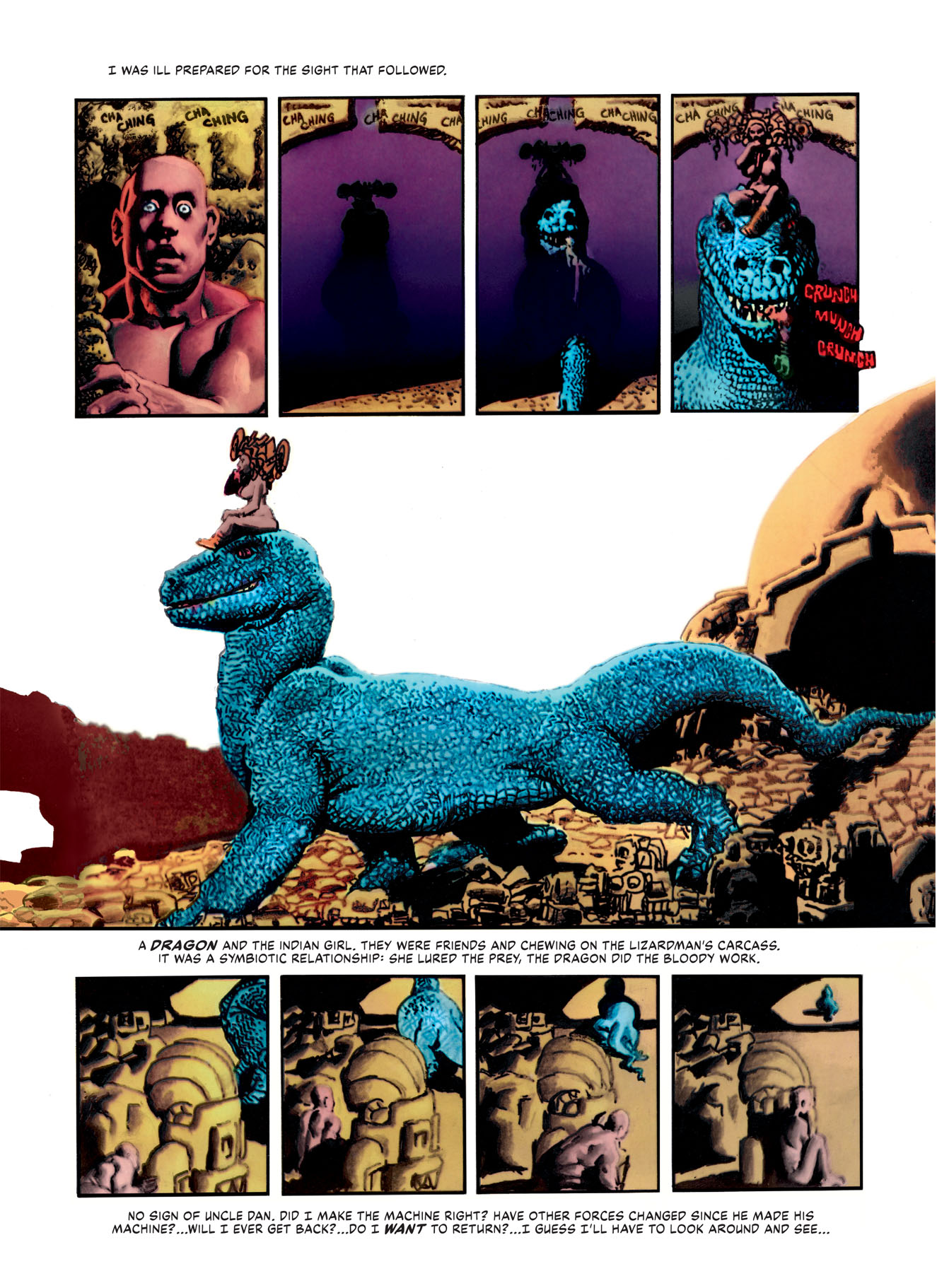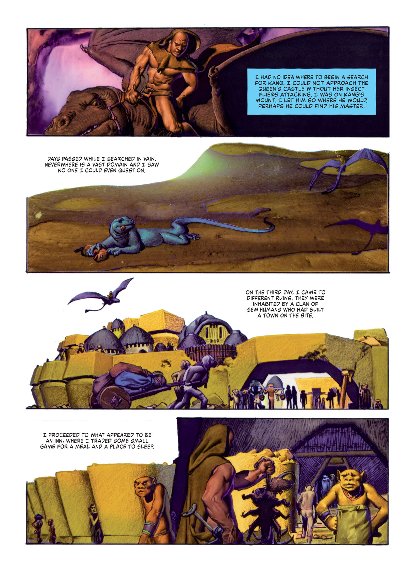Thrust into a bizarre fantasy world called Neverwhere, the muscular adventurer Den goes on an exotic adventure through ancient ruins meeting an evil queen, her sacrificial doppelganger, bizarre lizard men, giant insects, and more strange and dangerous madness in this legendary saga brimming with horror, magic, and violence.