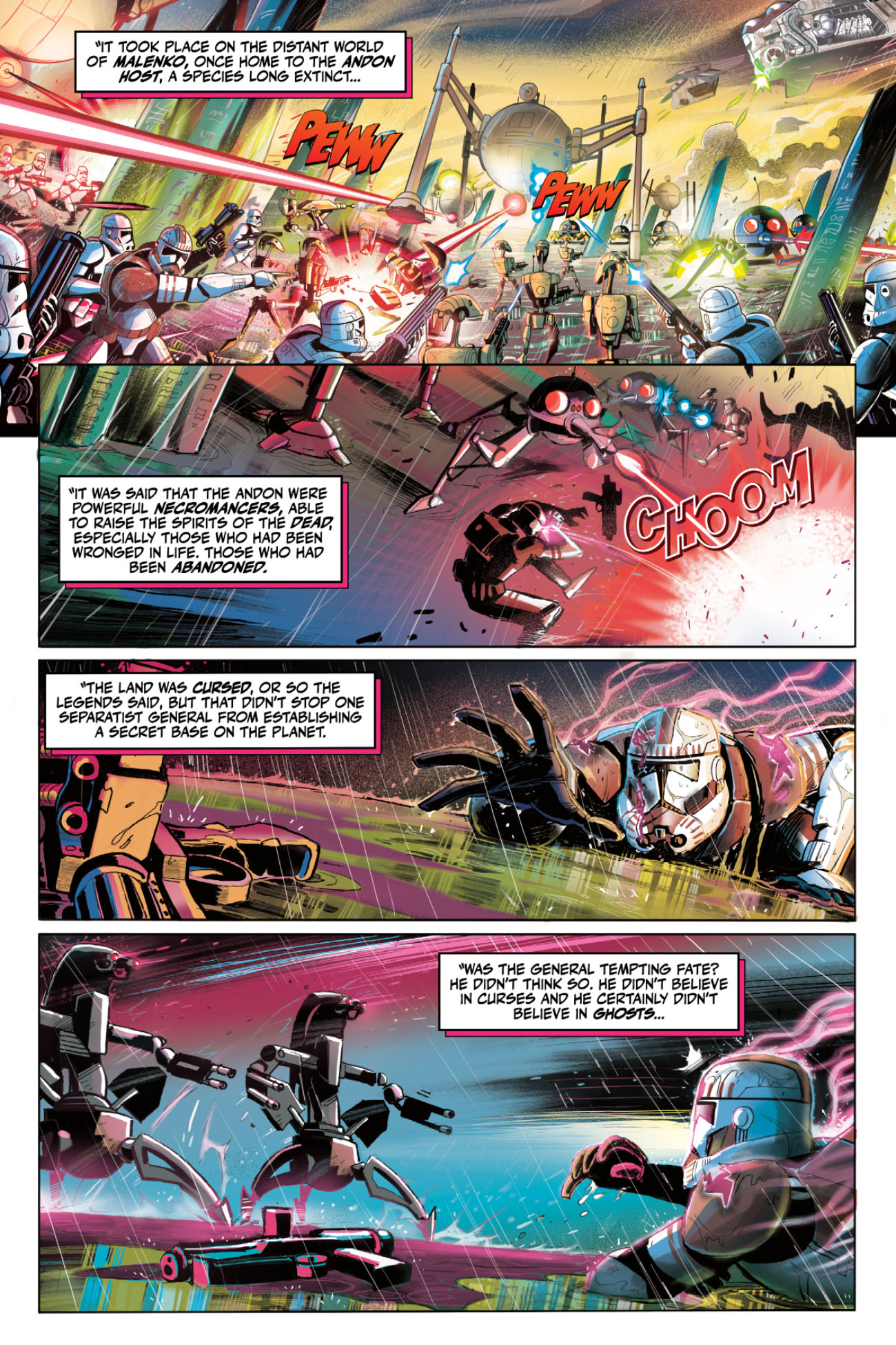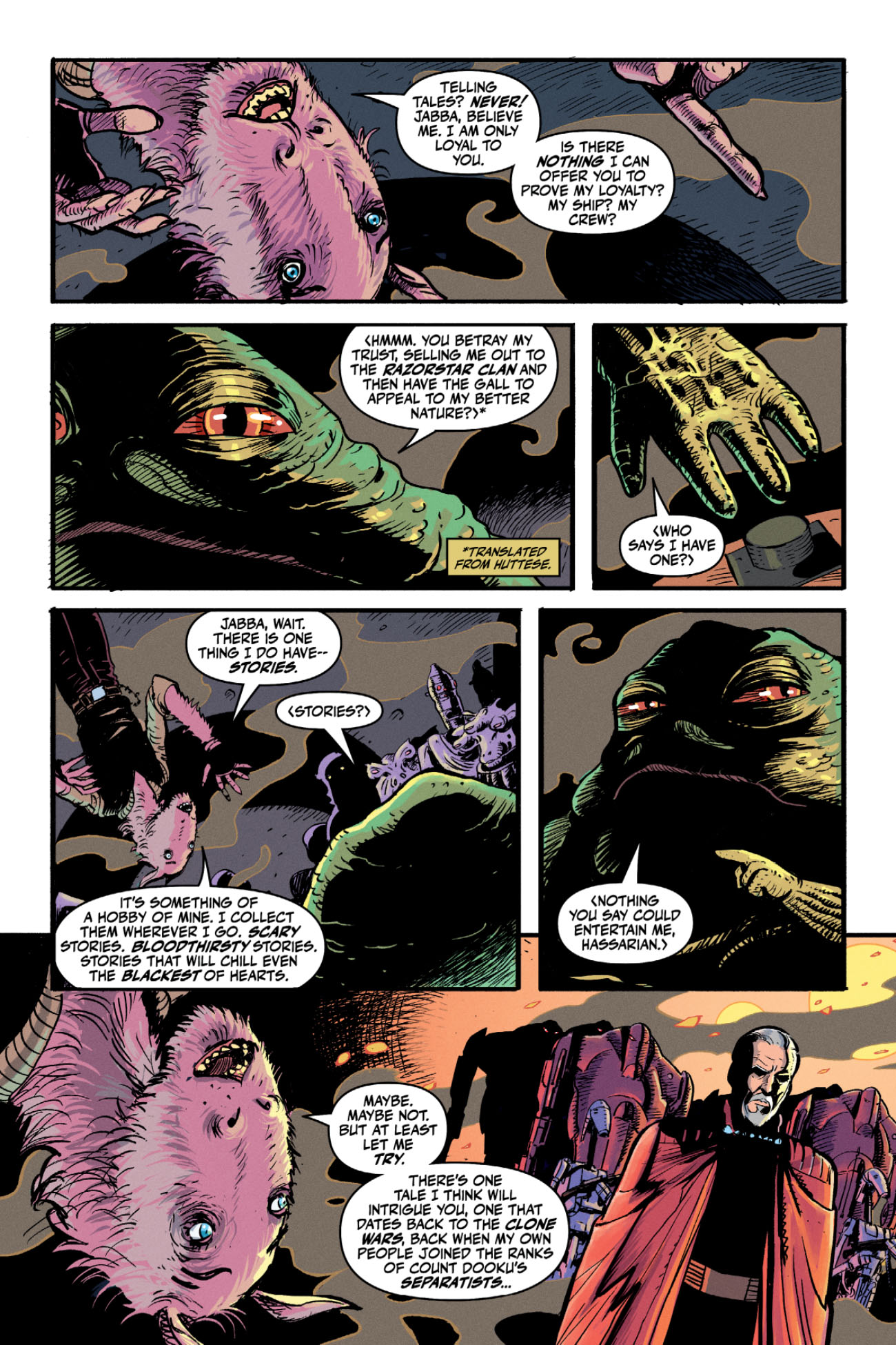 It's a dark and stormy night on Tatooine as Jabba the Hutt's victim hangs perilously above the rancor pit with only his collection of scary stories to save him. New York Times bestseller Cavan Scott (Star Wars: The High Republic, Tales from Vaders Castle) teams up with fan-favorite artists Nick Brokenshire, Juan Samu, Rafael Pérez, and Puste for a trio of terrifying tales just in time for Halloween. Experience clanking droid ghosts, explore the chilling wampa caves of Hoth and go monster hunting with Saber-For-Hire Ty Yorrick.