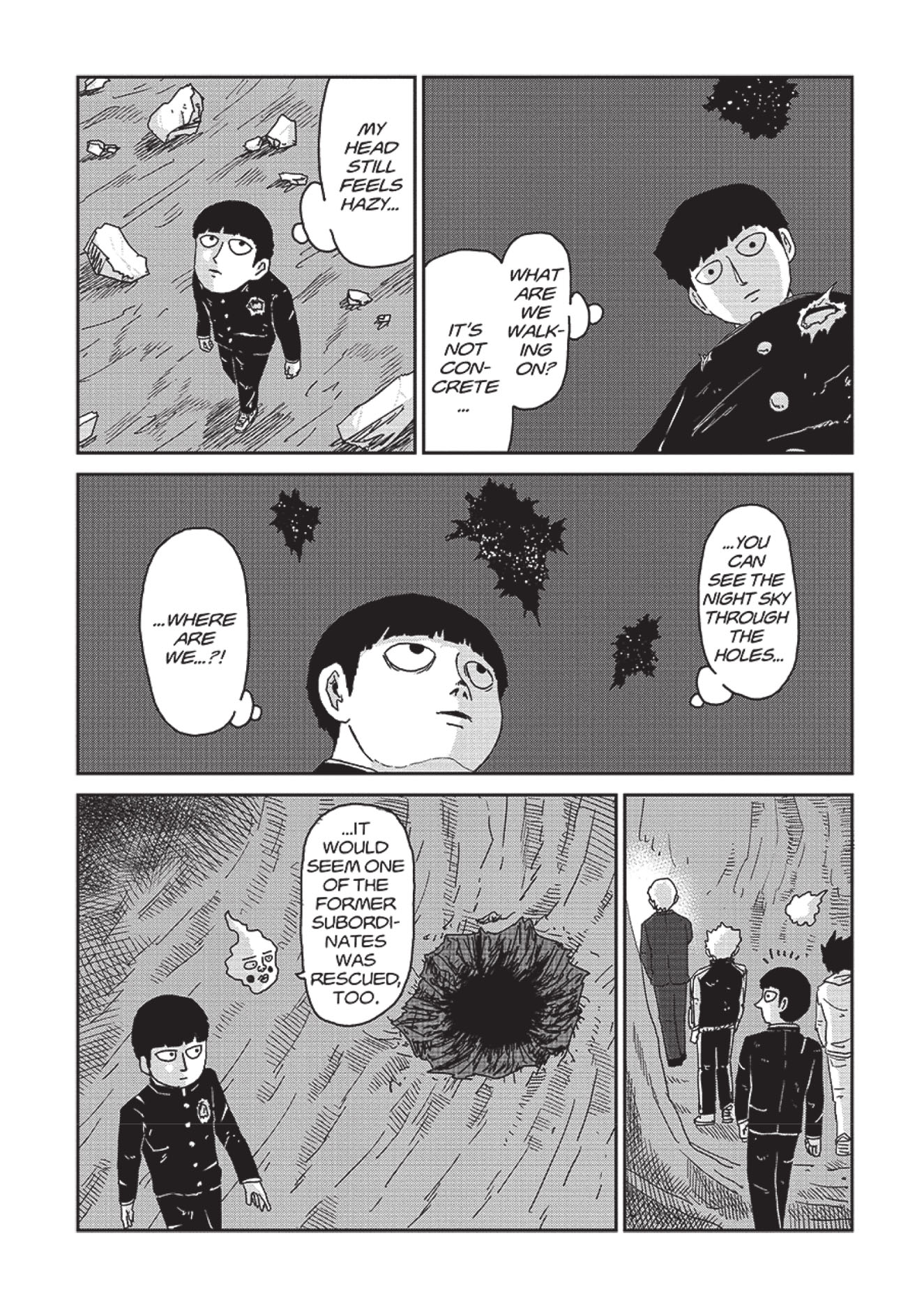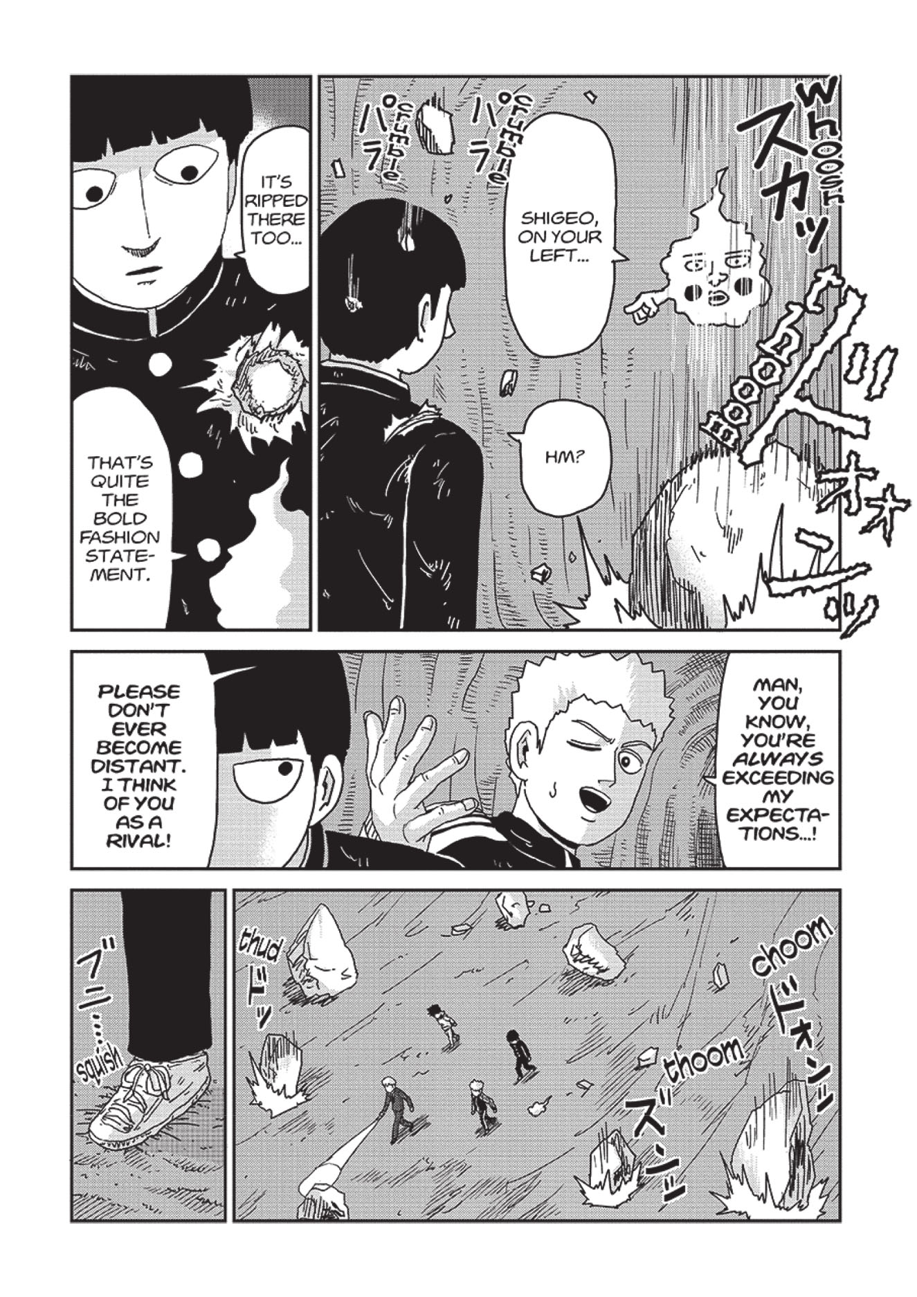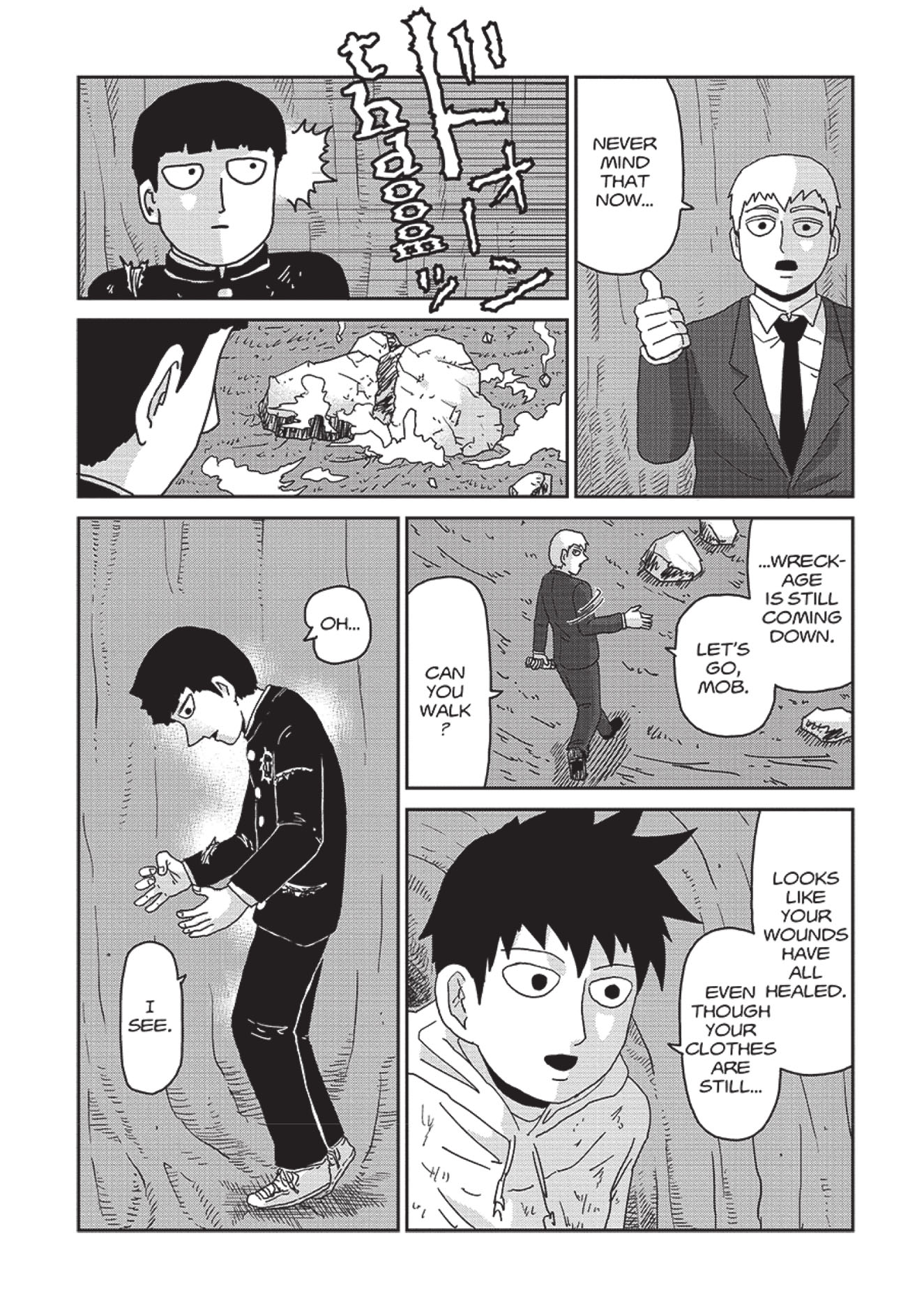The battle for the city is over, with Claw vanquished, and nothing to mark the struggle but the gigantic broccoli sprouting from the rubble. That's not a misprint, but it's also the beginning of still more trouble as this "divine tree" begins to attract spiritual devotees to Seasoning City in search of the psychic power at its root! Regardless of his incredible heroism and esper skills, Mob still needs to find a way forward in search of a normal life ... but will the cult stalking him permit it ... ?