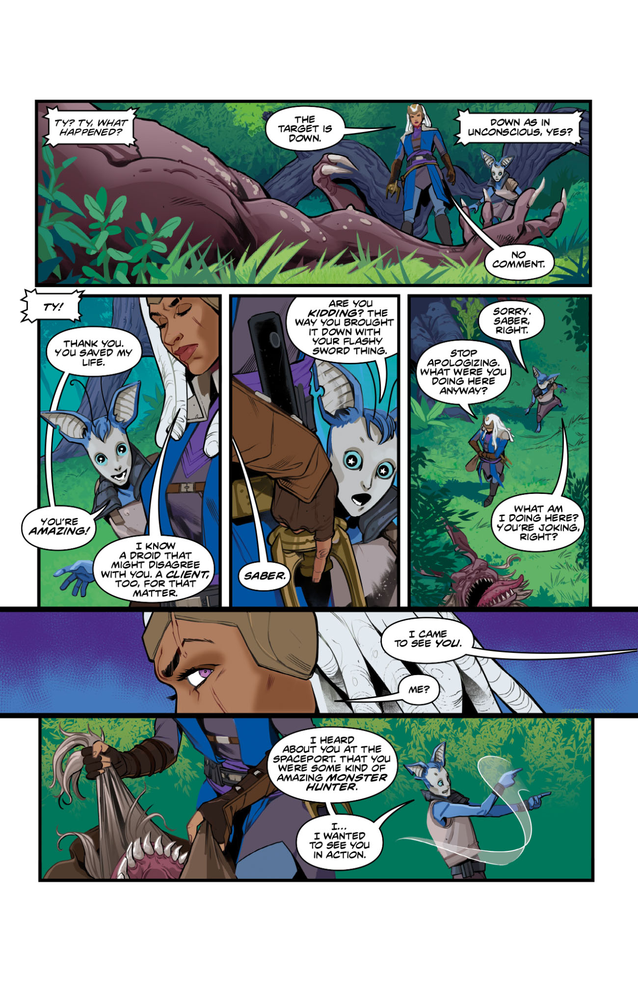 After dealing with an escaped Drewen being transported to the Republic Fair, Ty heads to Loreth, where local pioneers have tasked her with taking on the fearsome Gretalax that terrorizes them. She takes the mission but can't shake the feeling that something is amiss with The Force.