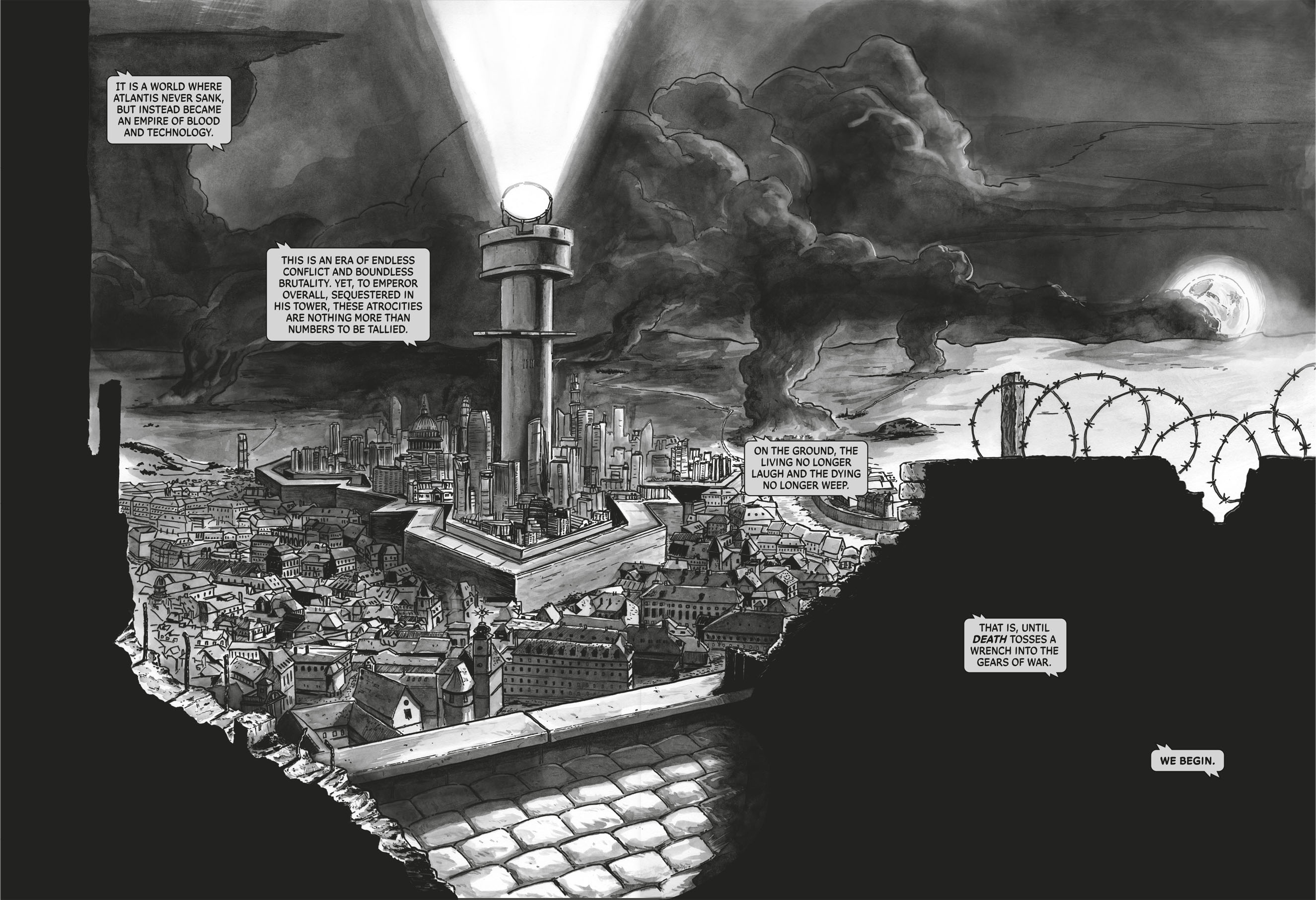 Set in an alternative universe where Atlantis never sank but instead became a technologically advanced tyranny, the power-mad buffoonish Emperor declares all-out war--everyone against everyone. Death goes on a labor strike, creating a hellscape where everyone fights, but no one dies. Can the spirit of Life stop this terror with the power of love?