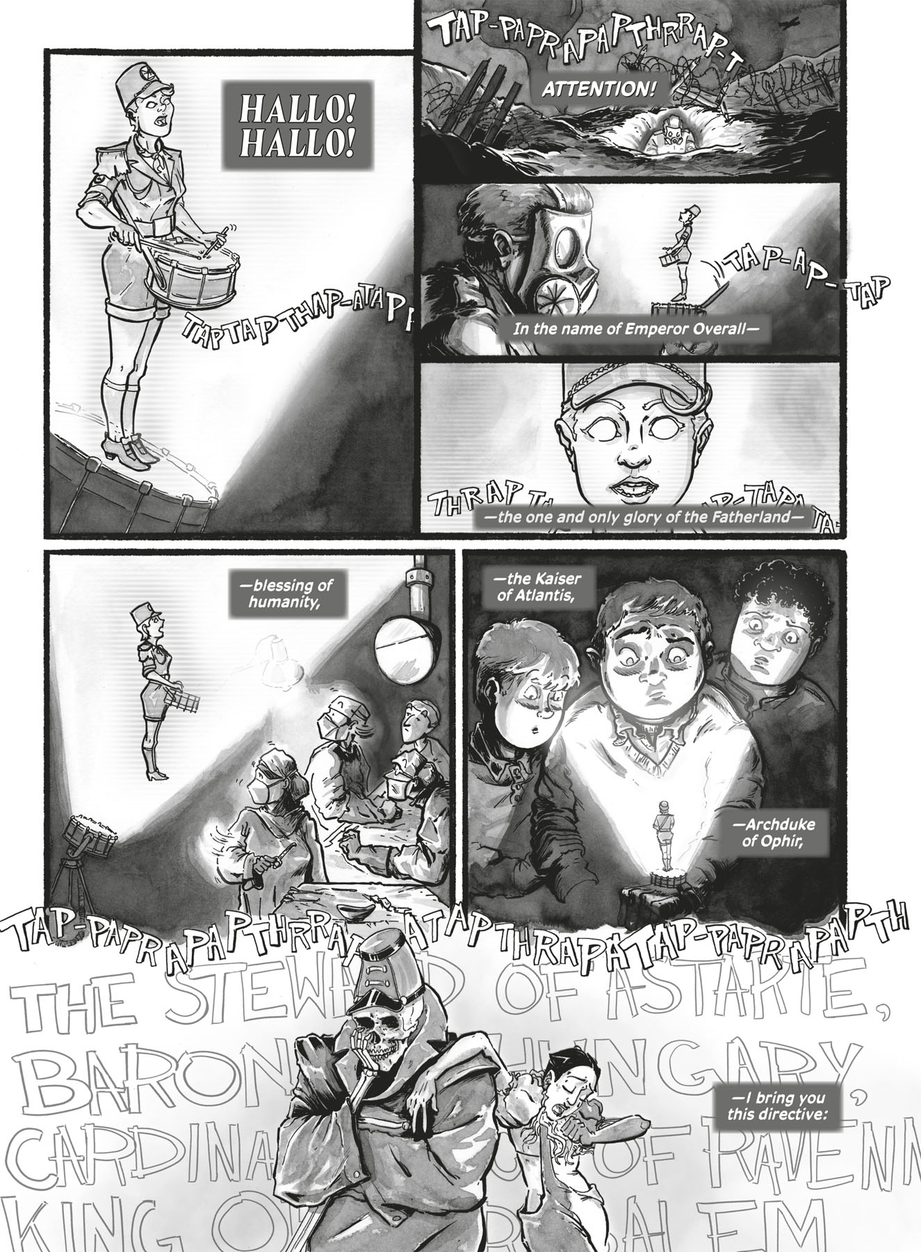 Mixing dystopian sci-fi, mythic fantasy, and zombie horror, Death Strikes: The Emperor of Atlantis, is a graphic novel based on a suppressed opera written in 1943 by Peter Kien and Viktor Ullmann, two prisoners at the Terezín concentration camp in Czechoslovakia. The authors did not live to see their masterpiece performed.