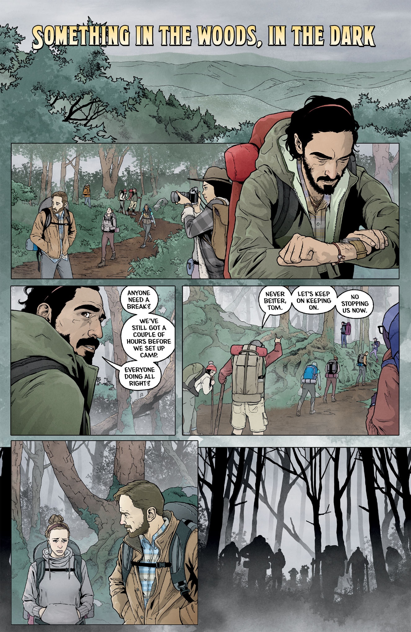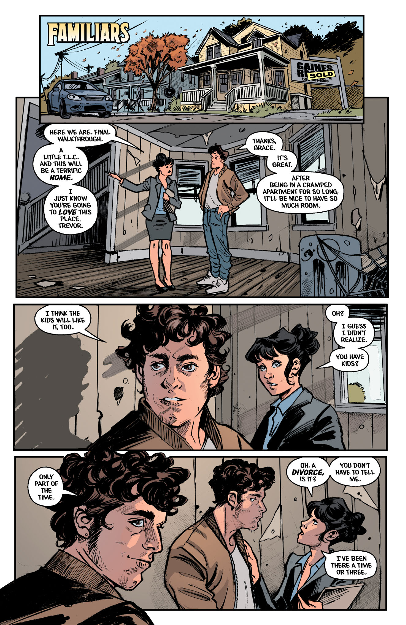 Collects the four-issue miniseries with the stories "Familiars" and "Something in the Woods, In the Dark."