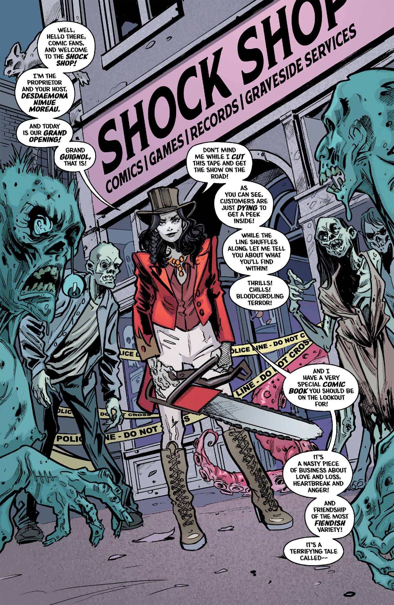 Cullen Bunn (Harrow County), Danny Luckert (Regression), and Leila Leiz (The Last Book You'll Ever Read) present a brand-new horror anthology flipbook taking place in a haunted comic book shop with a twisted retailer filled with tales of terror sure to leave you with the lights on. Welcome to the SHOCK SHOP!