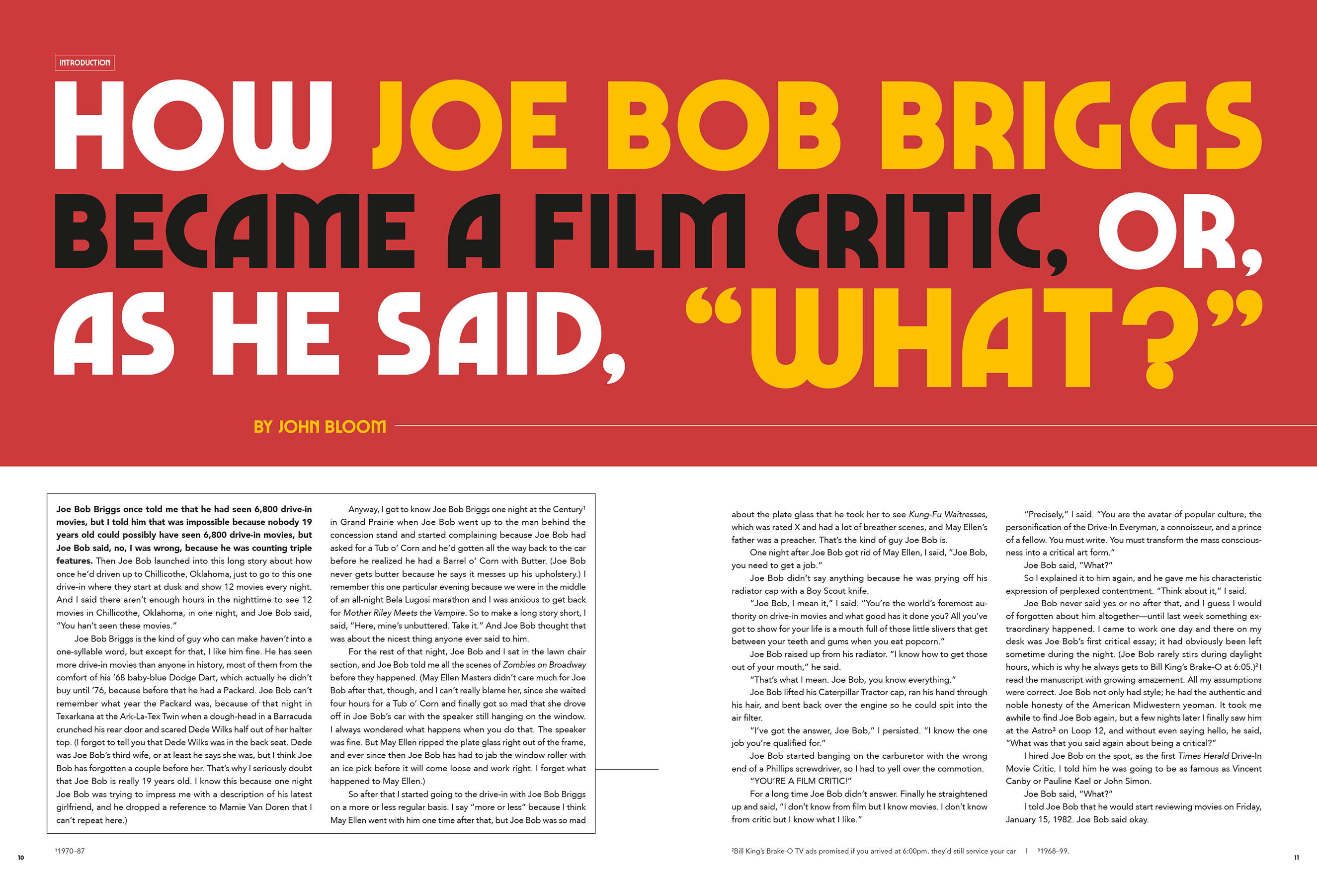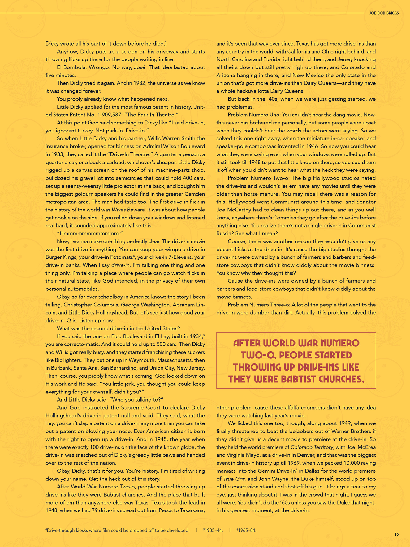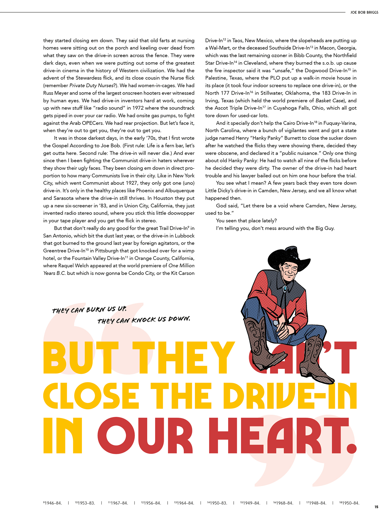 This art book-sized hardcover edition features Briggs’ first columns for The Dallas Times Herald and contains his famous B-movie reviews, fan letters and his replies, plus Briggs’ adventures as the world’s foremost expert on drive-ins—some of which hasn’t been in print for more than forty years.