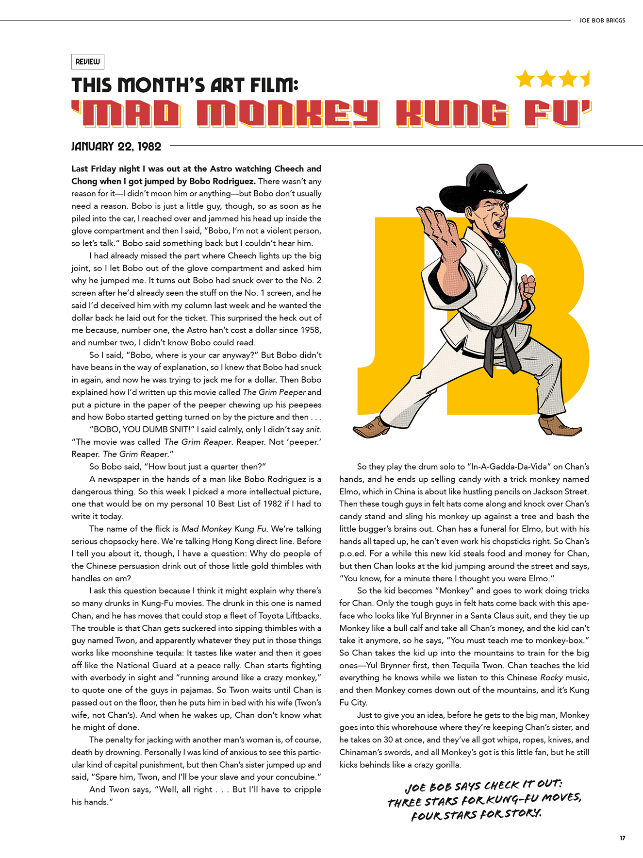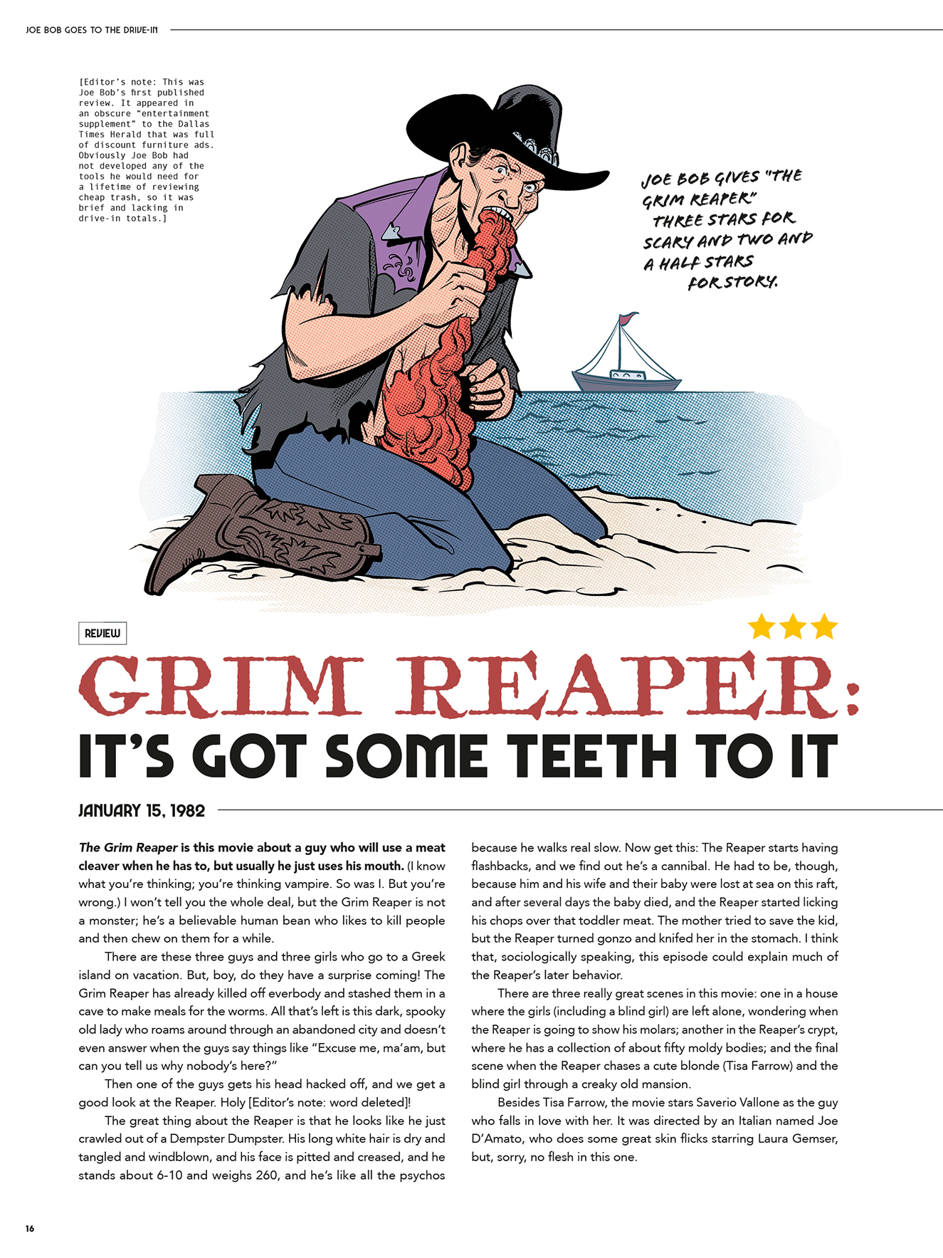 This brand-new, updated art book-sized hardcover edition of the long out-of-print collection by cult film host Joe Bob Briggs features new writing, movie reviews, and fan letters not seen in over 40 years, plus new artwork by comic book artist Mike Norton and an introduction by Stephen King.