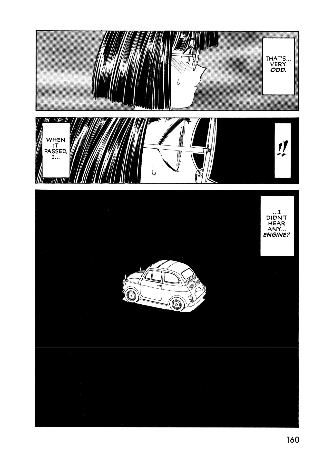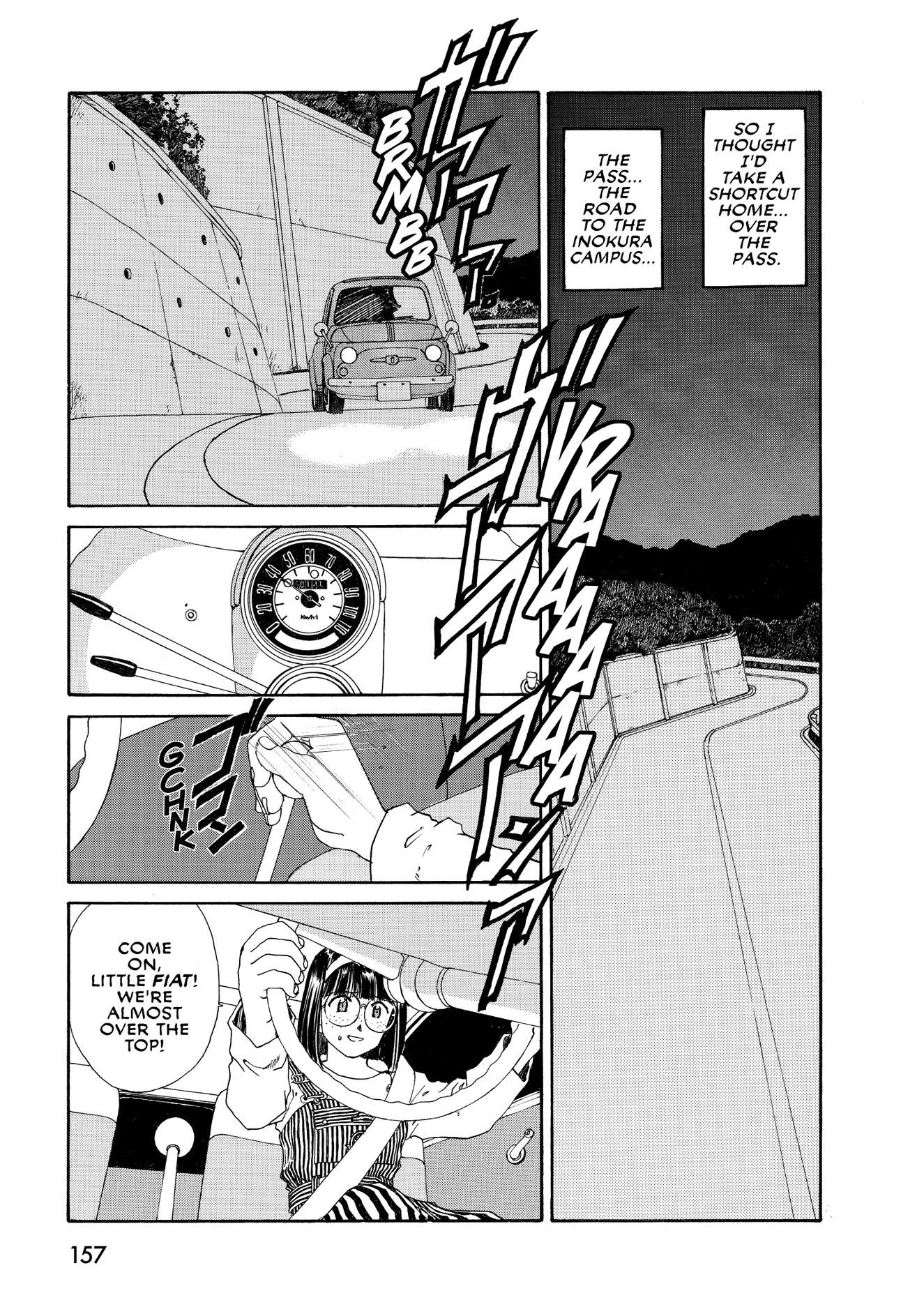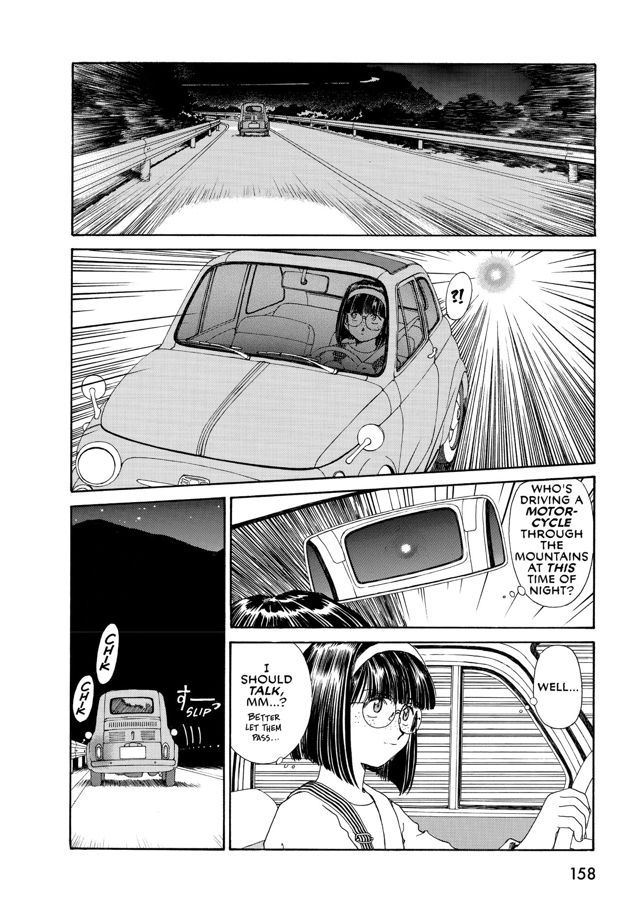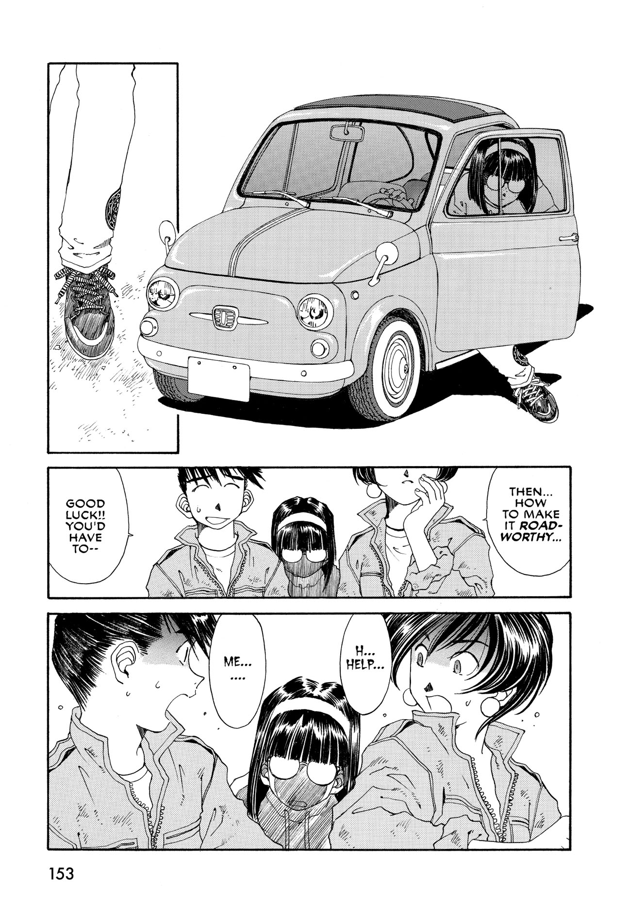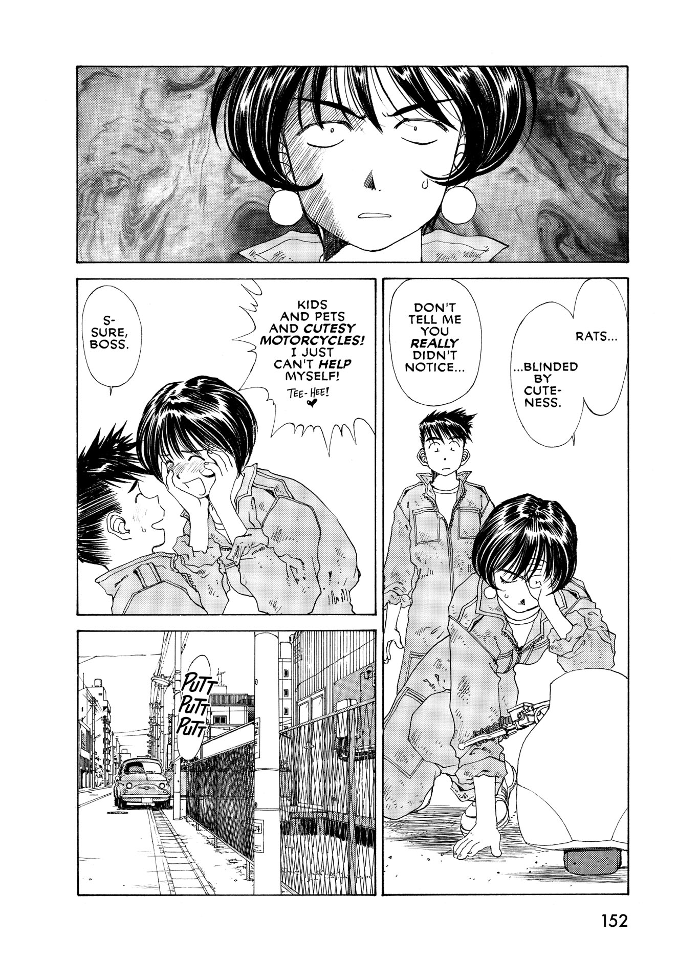 Domestic drama takes on a whole new scale--literally, as Skuld's attempt to solve their storage problems leaves Belldandy and Keiichi trapped in a living room that's now infinite square feet big! Once those household worries are wrapped up, the couple hit the road on a tandem bike for a late-night race to challenge the ghost . . . of a motorcycle, while back on campus the mad Dr. Koichi "Moreau" Morizumi drafts Keiichi and Belldandy into being the lab assistants for his latest scheme to build a walking robot that proves four legs bad, two legs much, much worse!