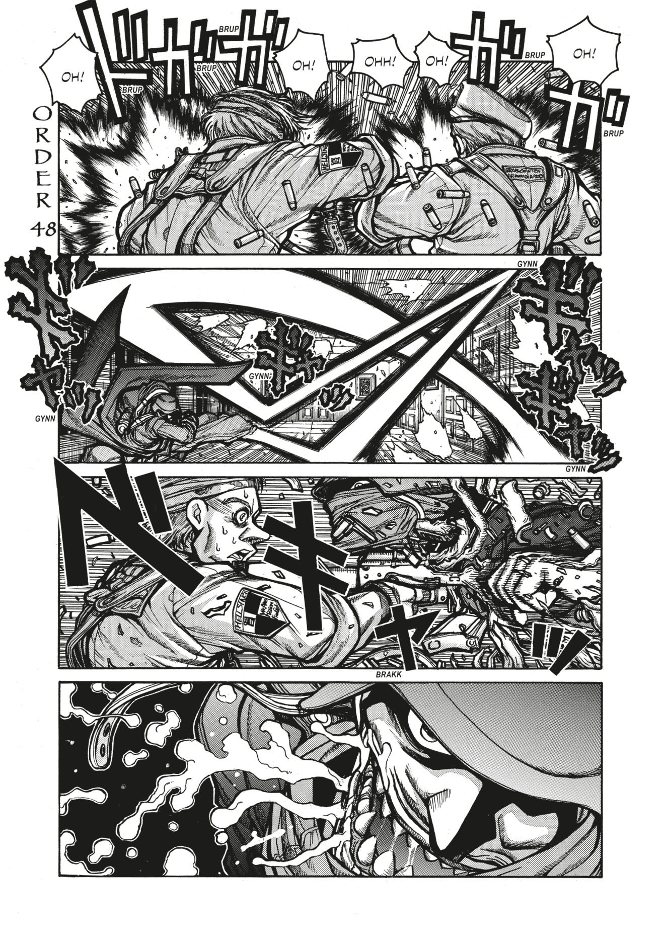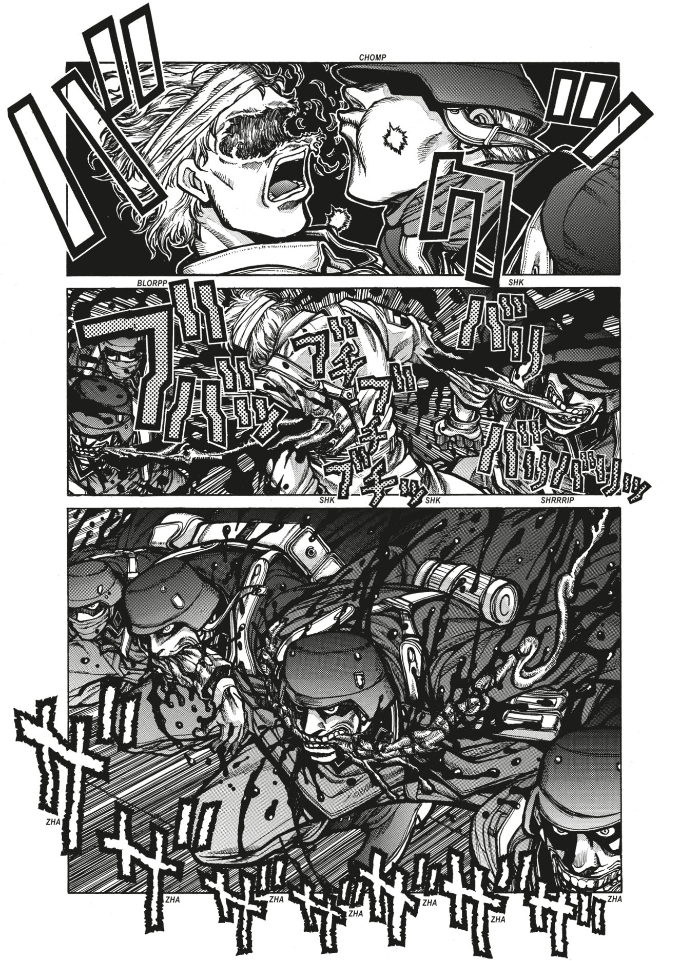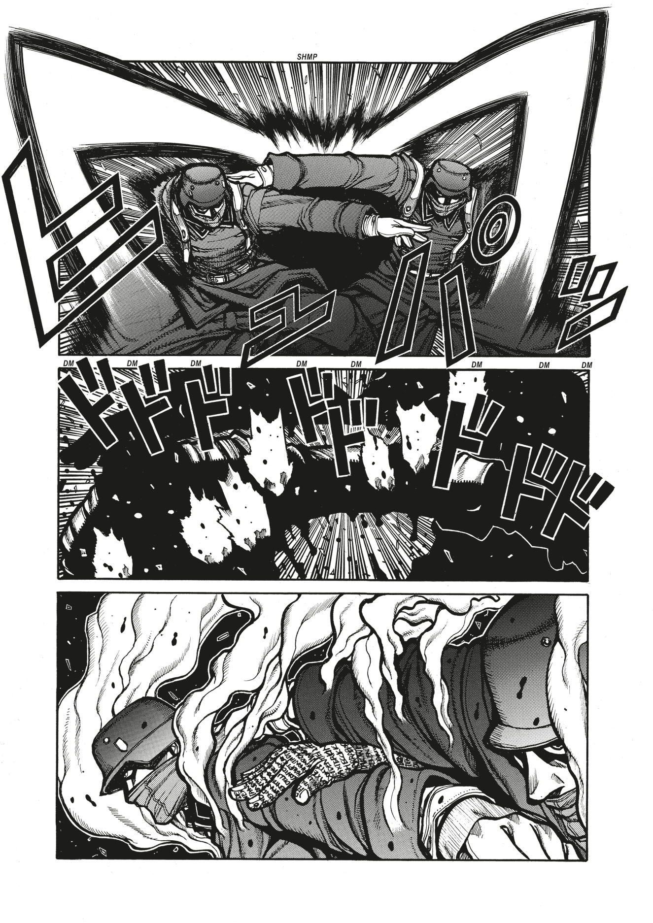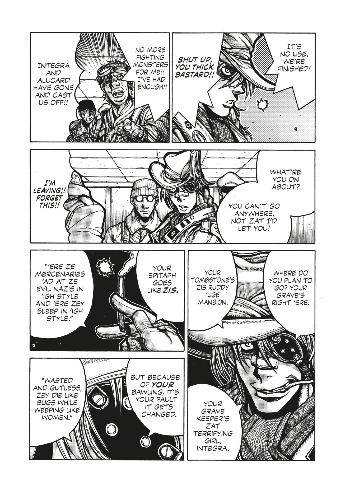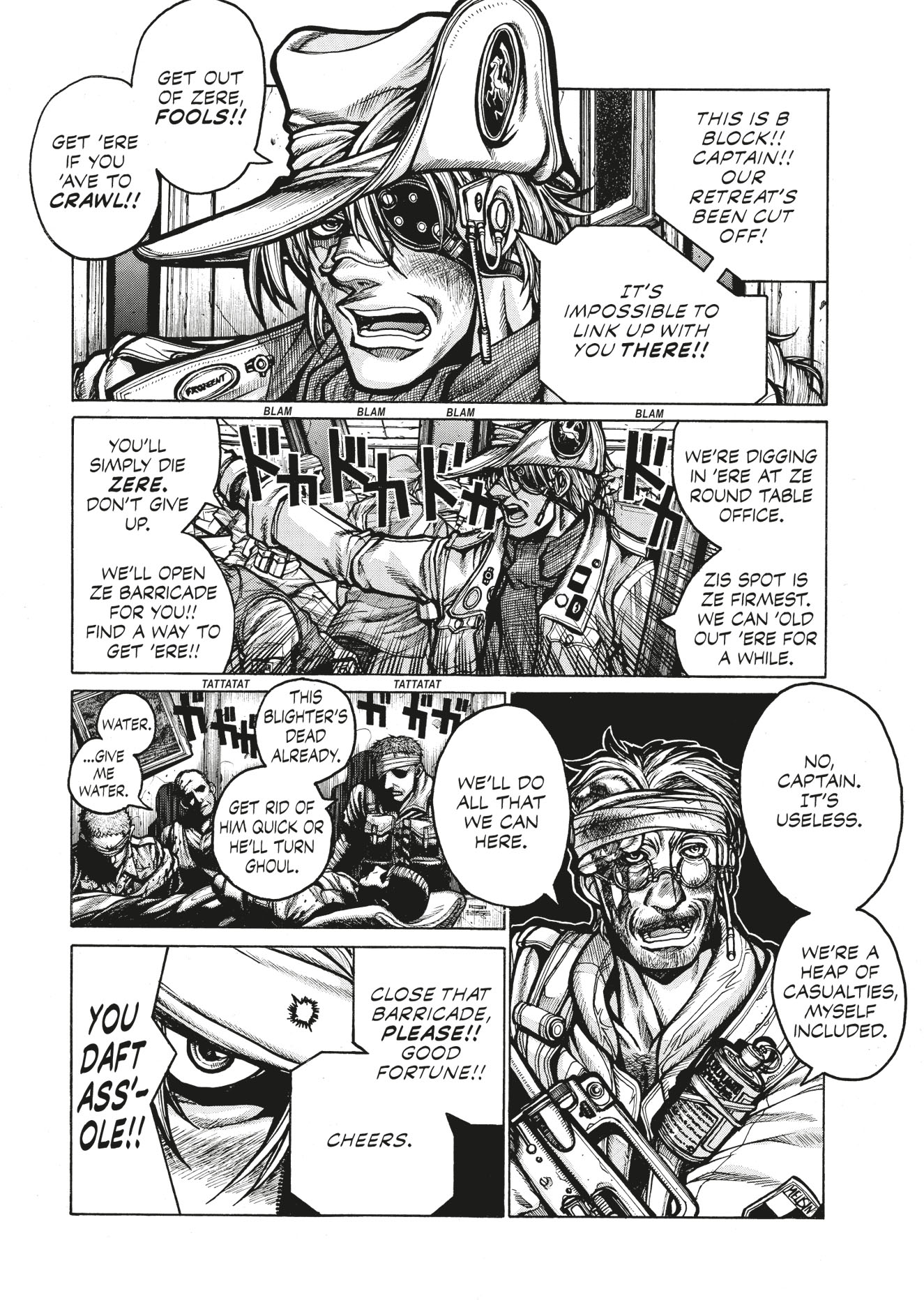 London is battered by a hurricane of death and destruction as vampire Nazis, Protestant knights, and Vatican warriors battle in what may result in worldwide apocalypse. The Hellsing Organization's Wild Geese mercenaries are literally being eaten alive, and it might just take half-vampire Seras Victoria to embrace her unholy destiny to provide humanity as shred of hope. But with the Catholic Iscariot Army on the march and Alucard, the vampire lord, sure to enter the fray, this cauldron is about to boil over!
