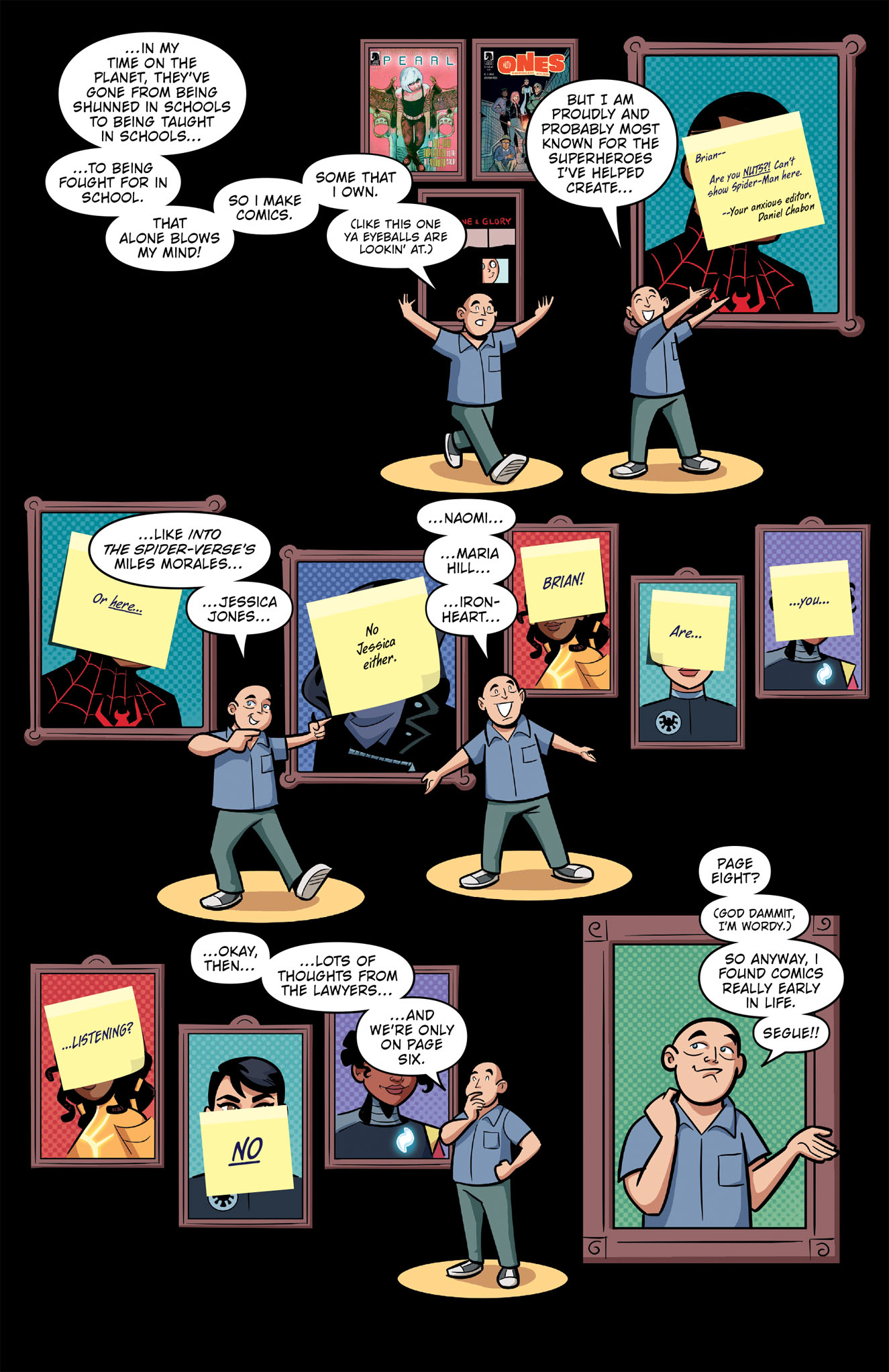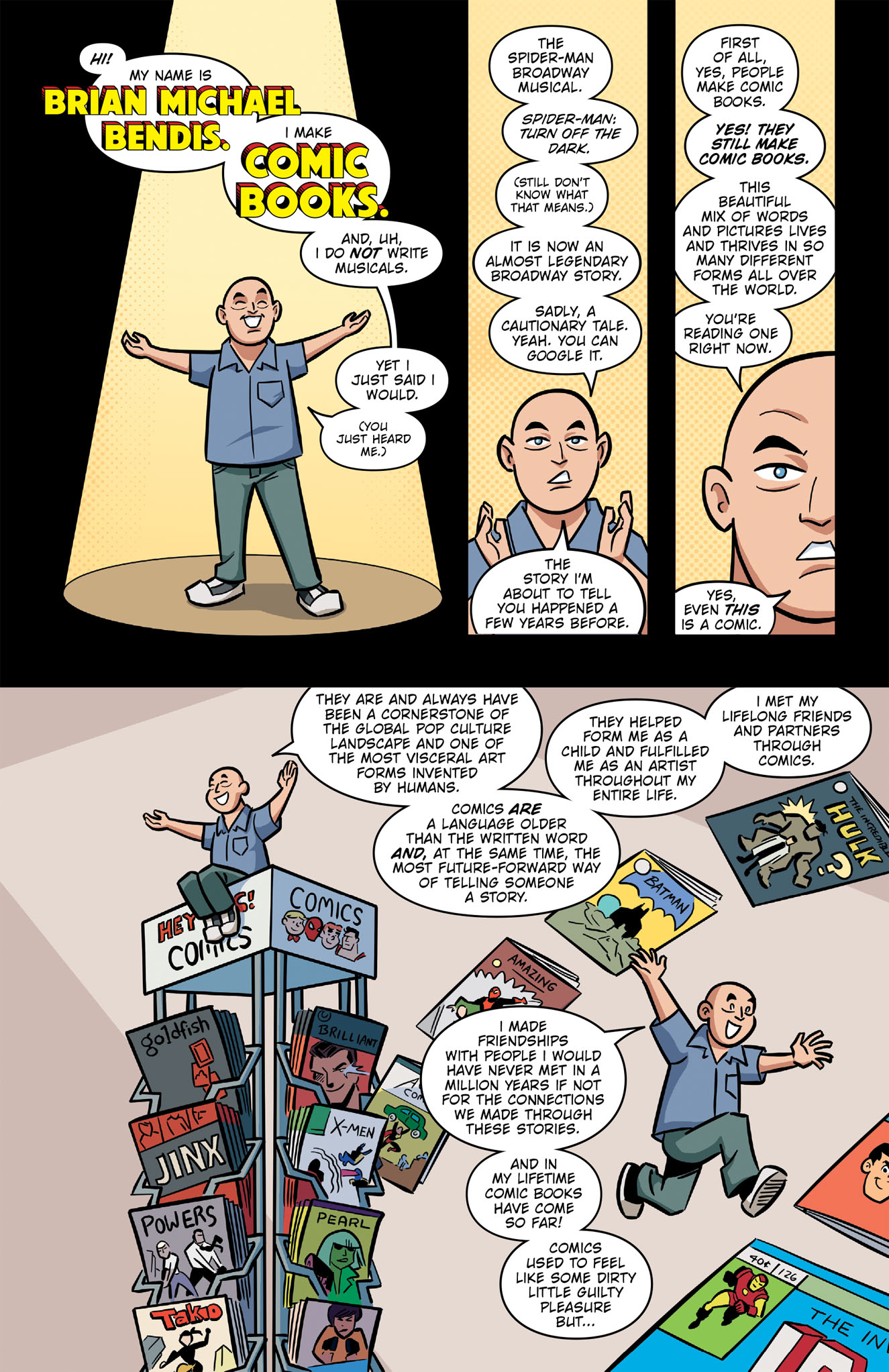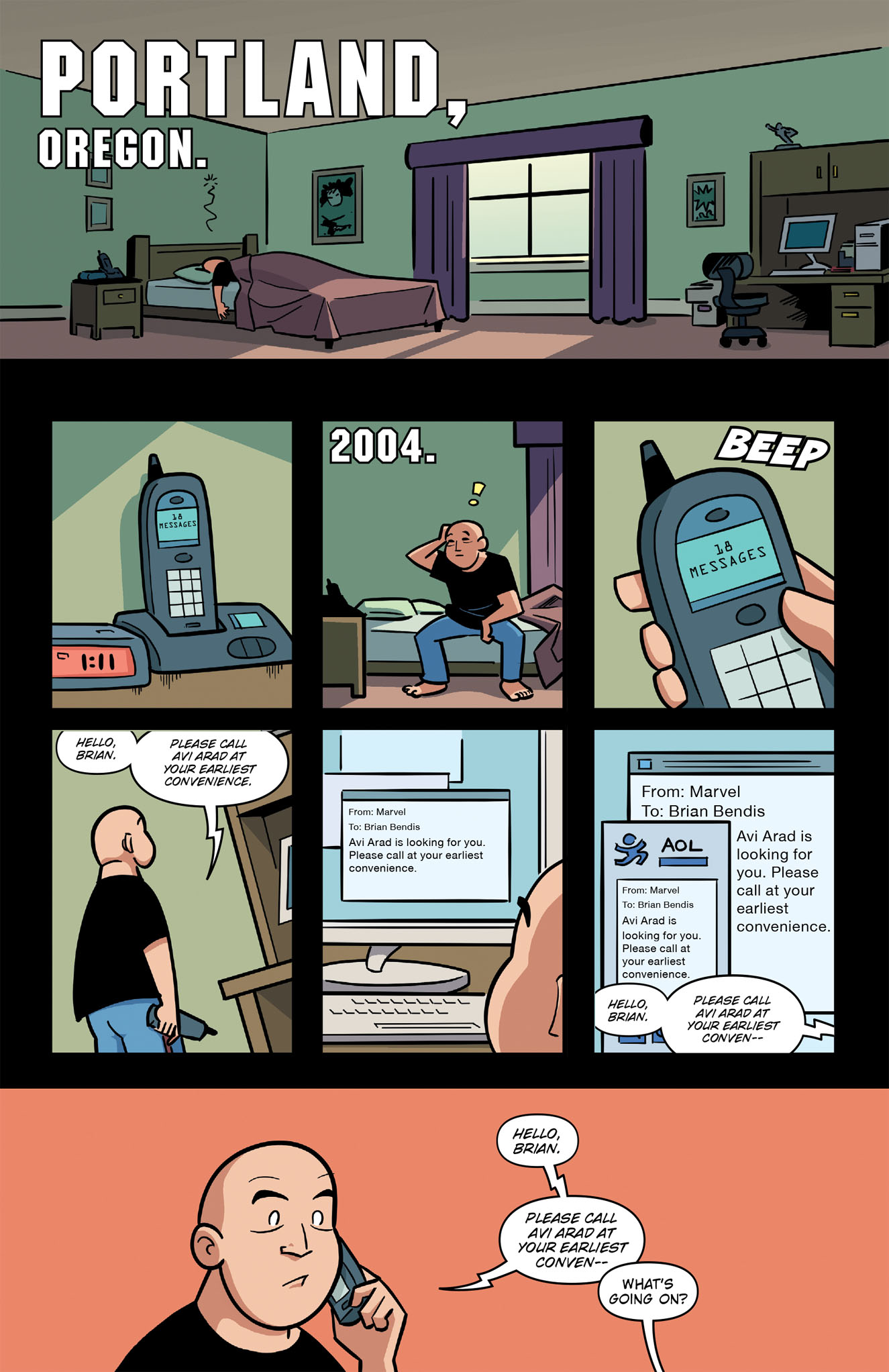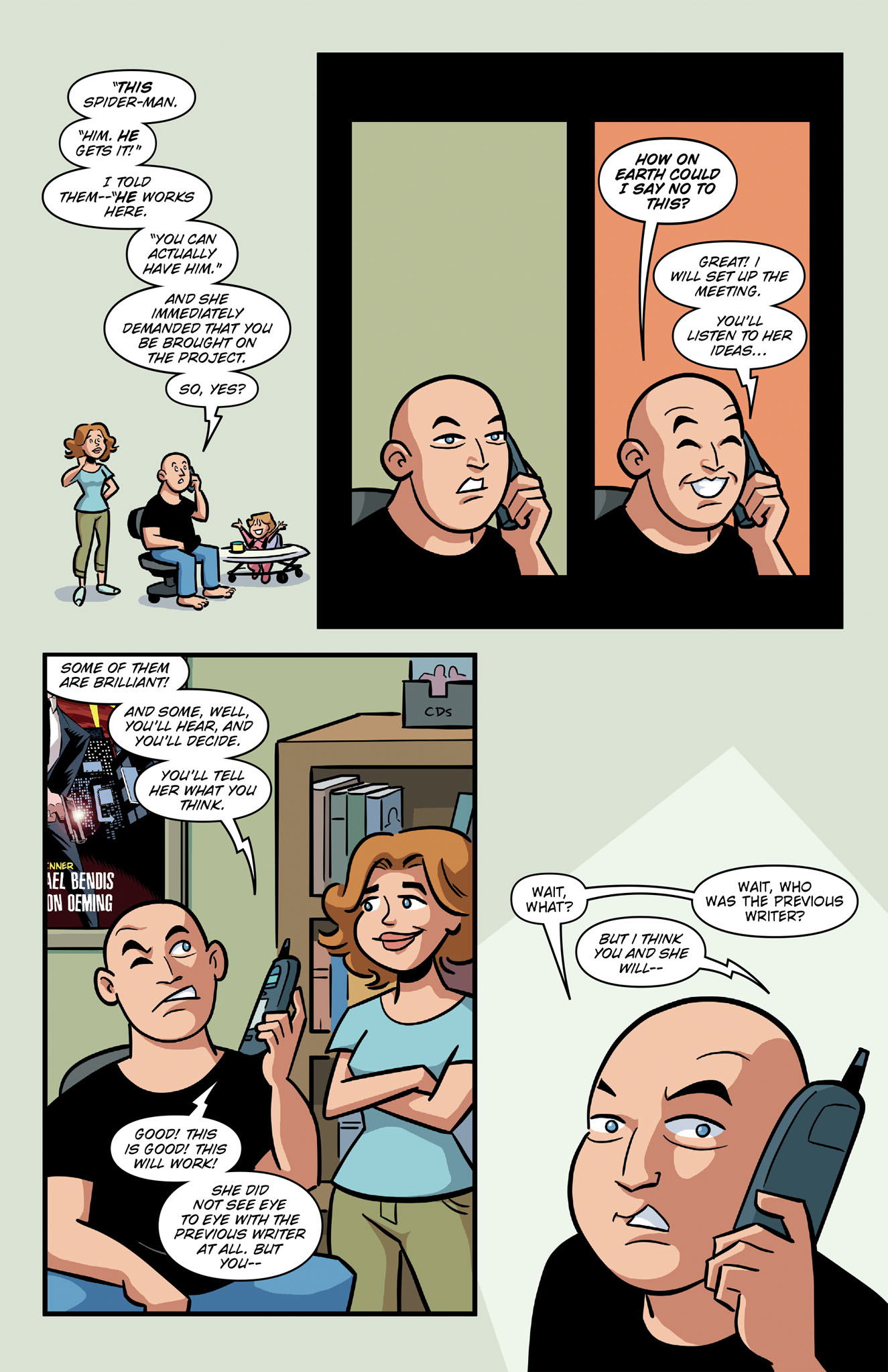 Brian Michael Bendis, cartoonist Bill Walko, colorist Wes Dzioba, and letterer Josh Reed, come together to tackle the stranger-than-fiction events behind the curtain of the pre-production of Spider-Man: Turn Off the Dark.