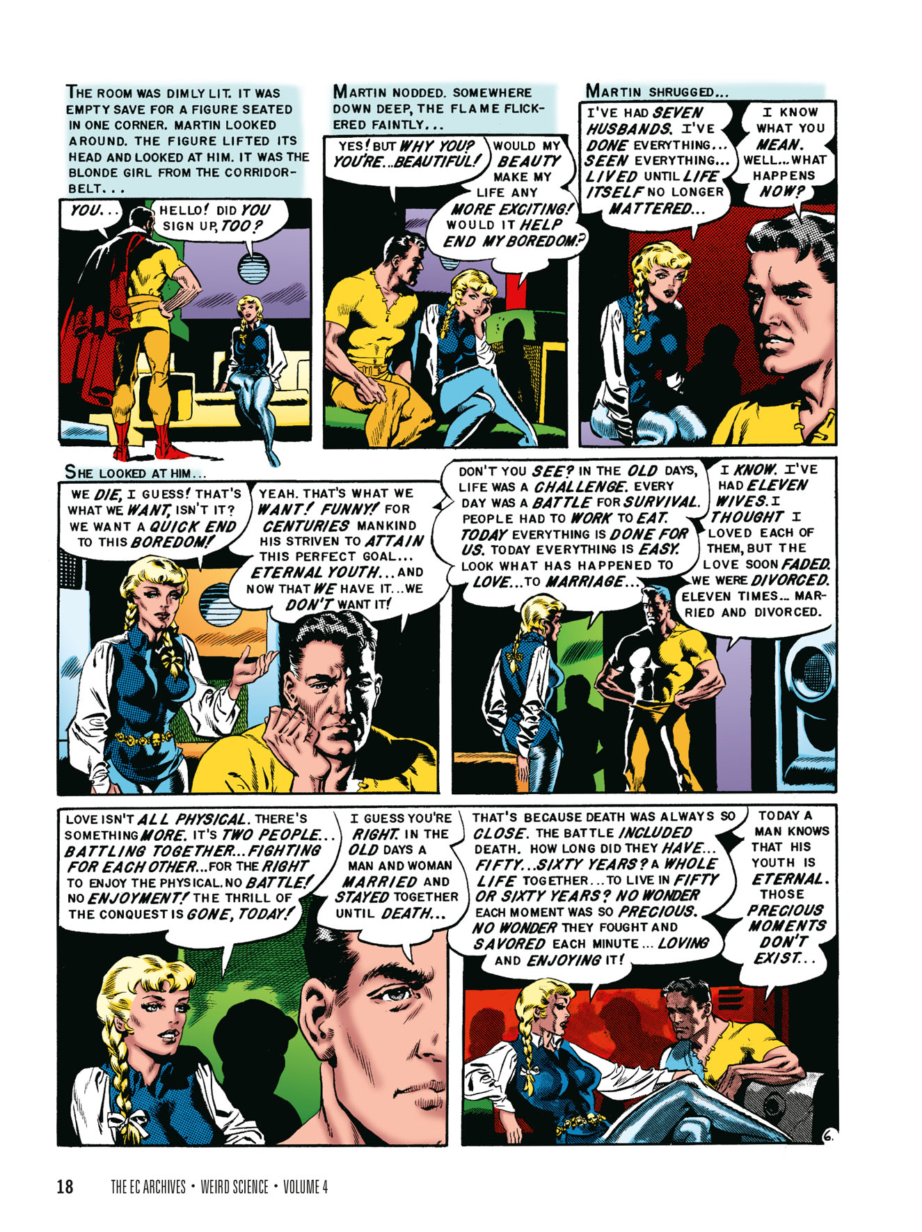 The Weird Science archives take flight at Dark Horse in an affordable, oversized paperback! This volume collects the complete Weird Science issues #19–#22 and Weird Science-Fantasy #23–24 in glorious remastered color!