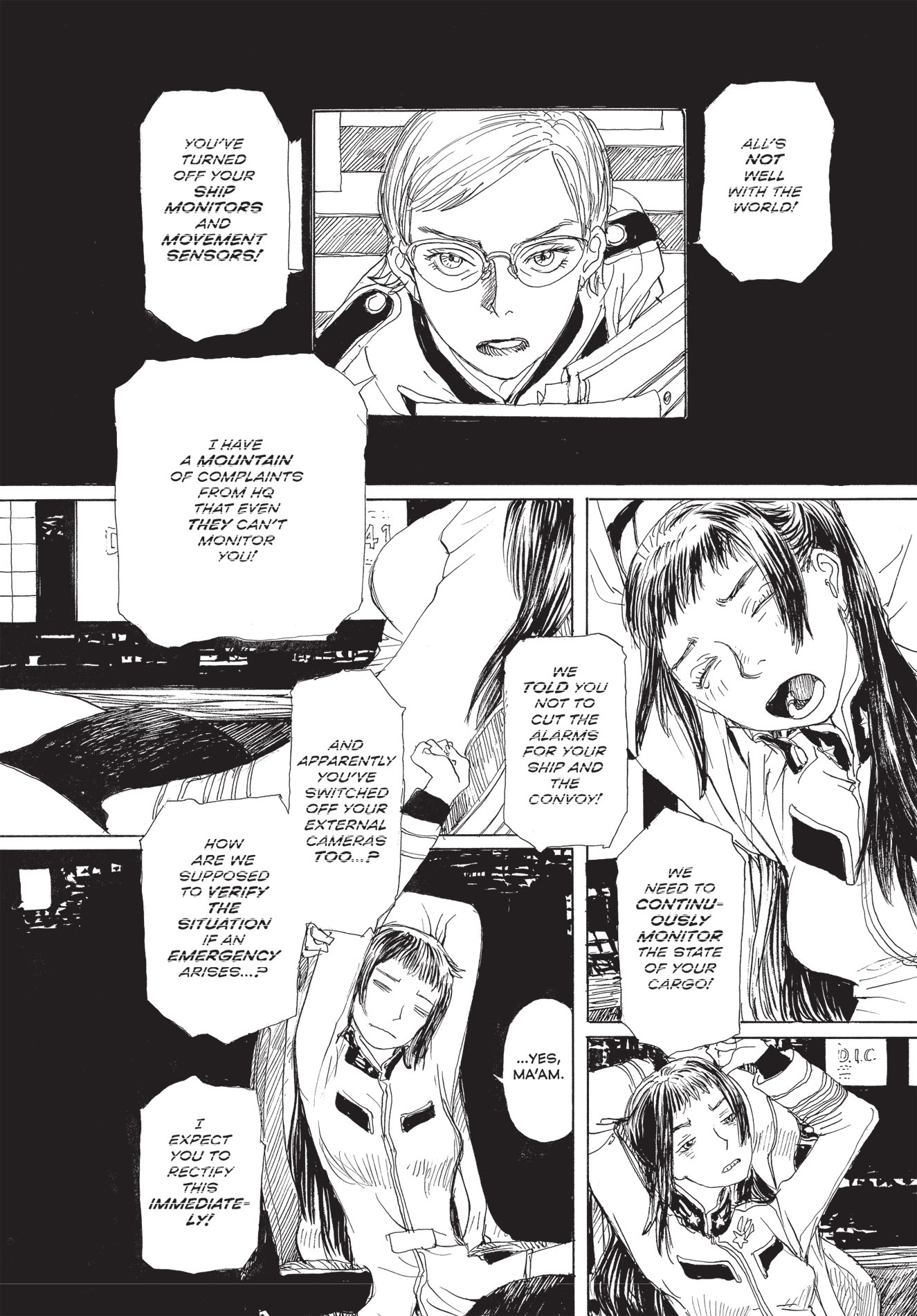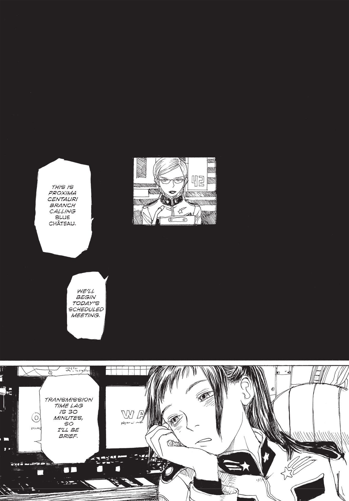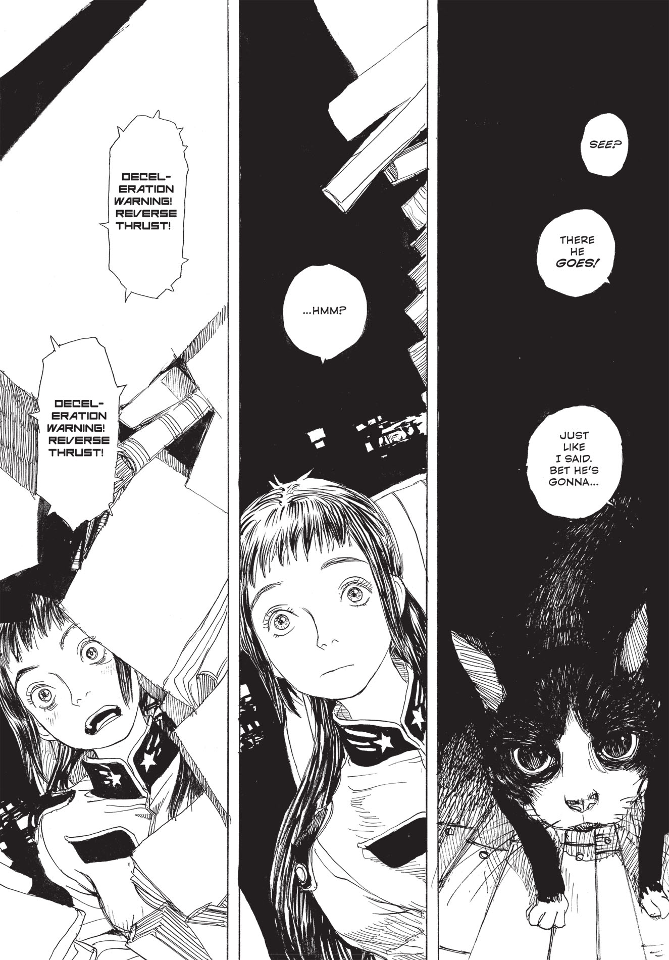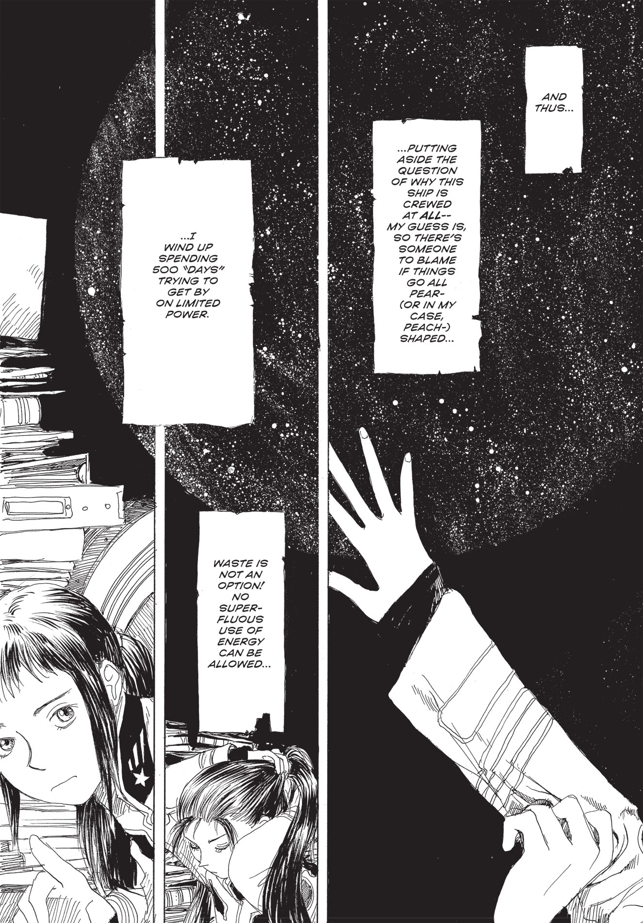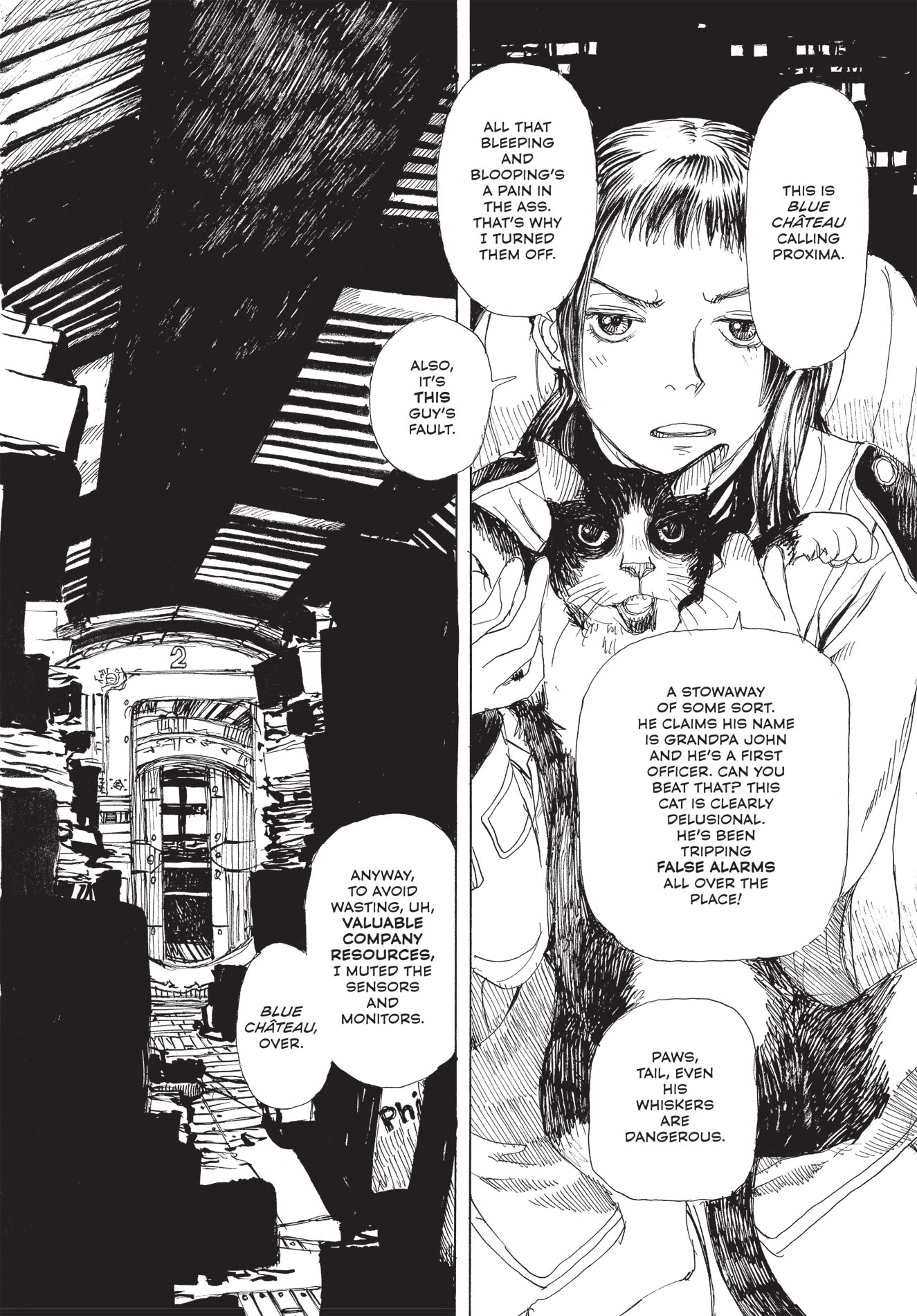 In the year 3019 AD, humanity has gotten even more work casual: most of the time, Momo doesn't bother to wear her captain's uniform—or anything at all—onboard the cargo vessel Blue Chateau, as she struggles against interstellar tedium, company directives, low battery strength, and her ever-underfoot cat John. But fear not, for equipped with plenty of reading material and a crate of peach liqueur, in the long haul past Proxima Centauri space slacker Captain Momo will at last prove Newton correct—a body at rest will remain at rest!