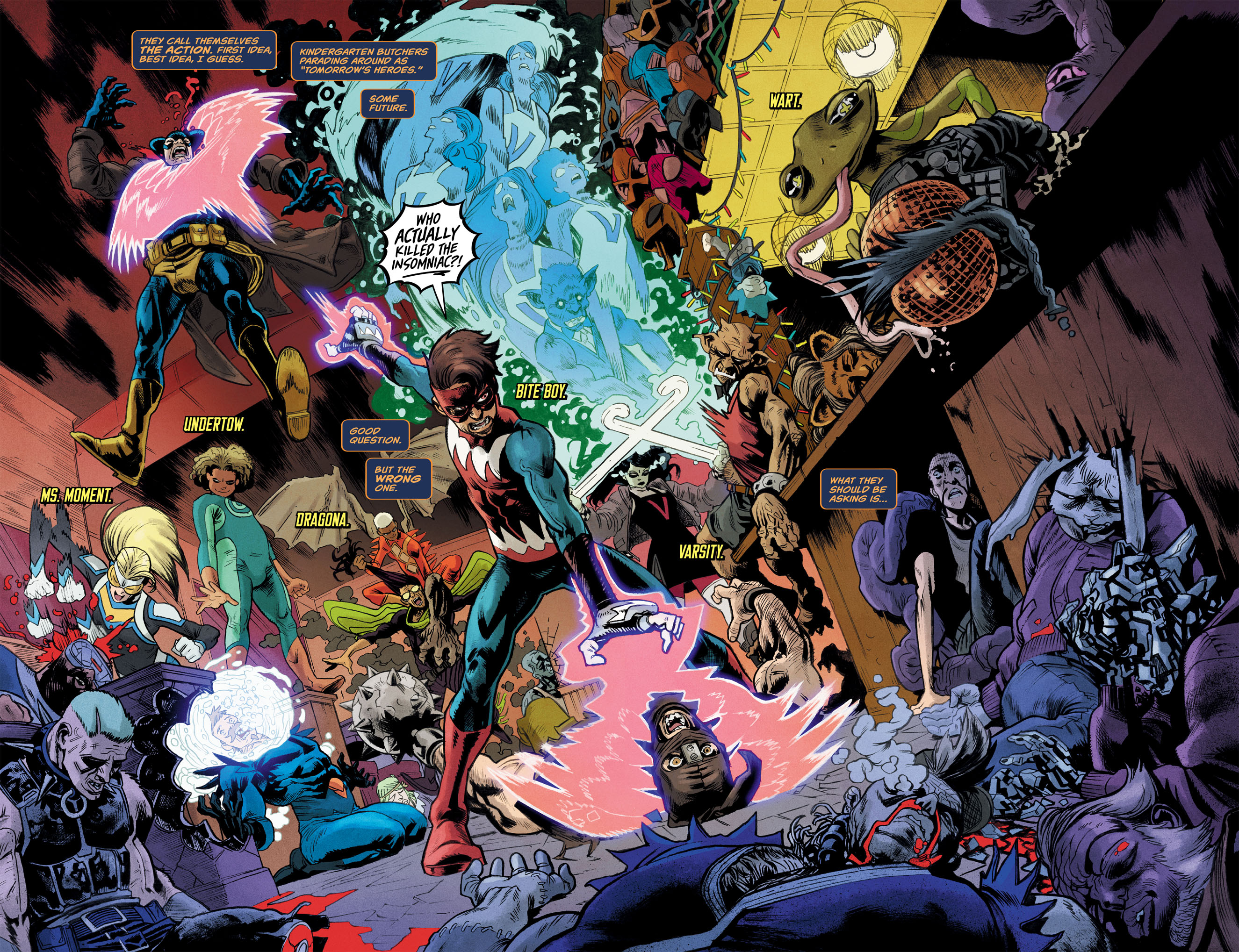 The hit superhero saga that’s Watchmen meets The Wire returns from Patton Oswalt and Jordan Blum, showrunners of Marvel’s M.O.D.O.K on HULU, and superstar artist Scott Hepburn (Tom Morello’s Orchid).