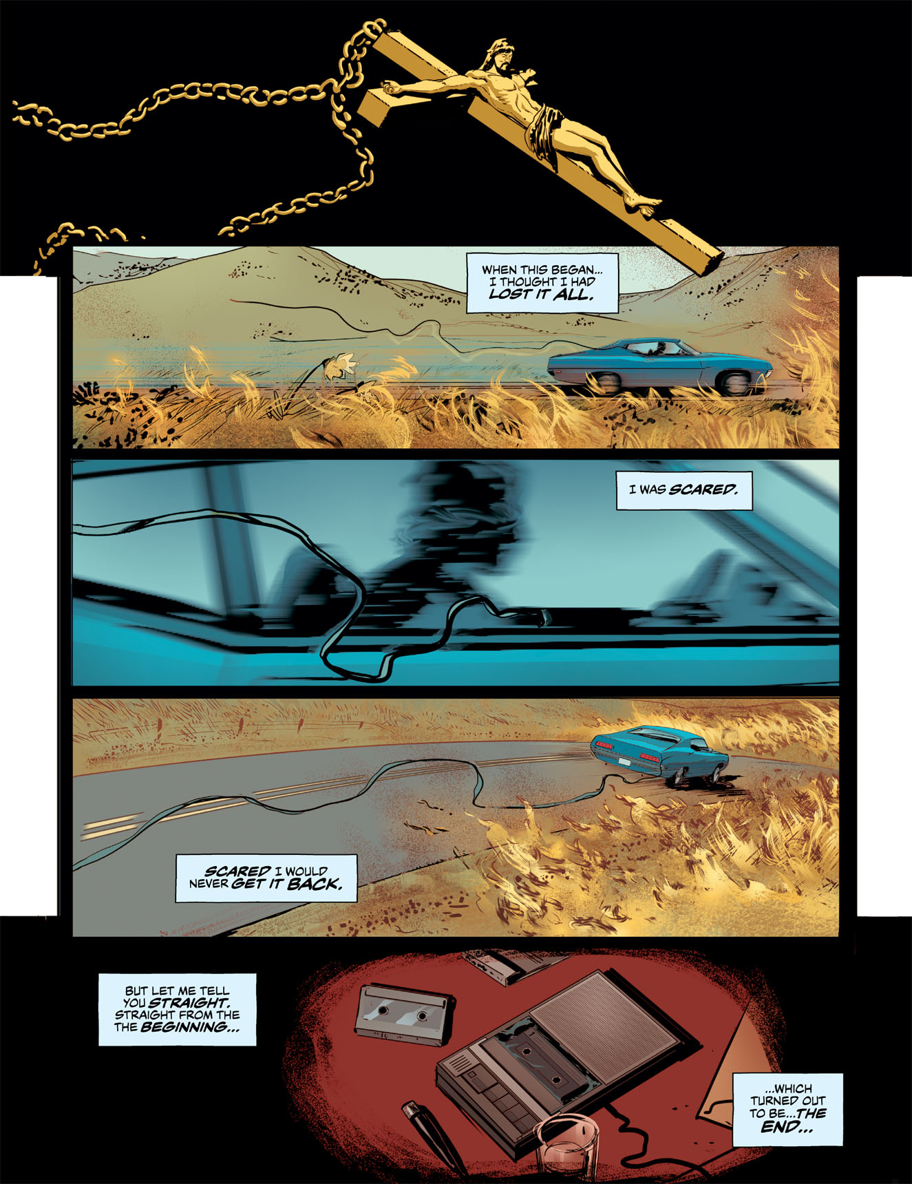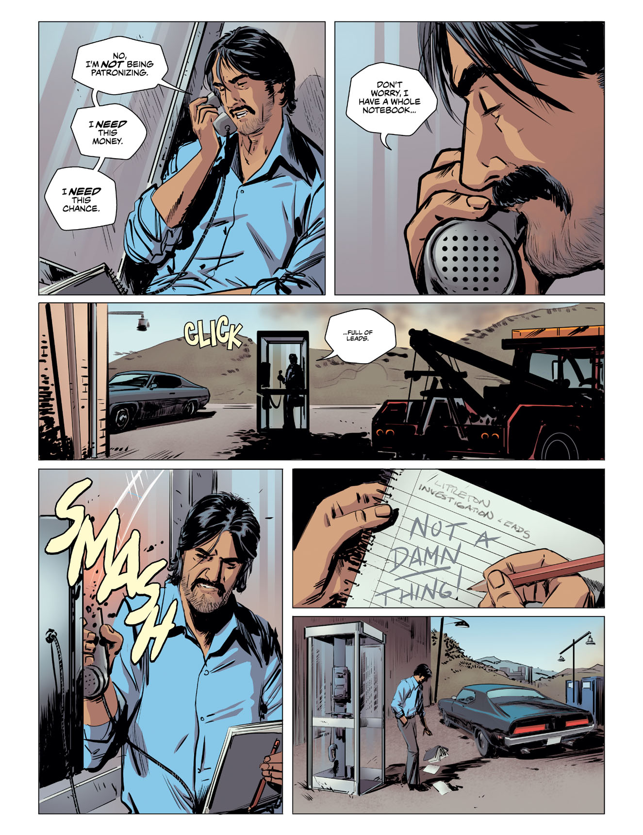 Will his “questionable” methods net him a murderer, or will the grizzled detective be brought to his knees by heartbreak and addiction? Find out, in this all-new edition of Blacking Out, a scorching crime noir comic set in a small town in the dry California desert.