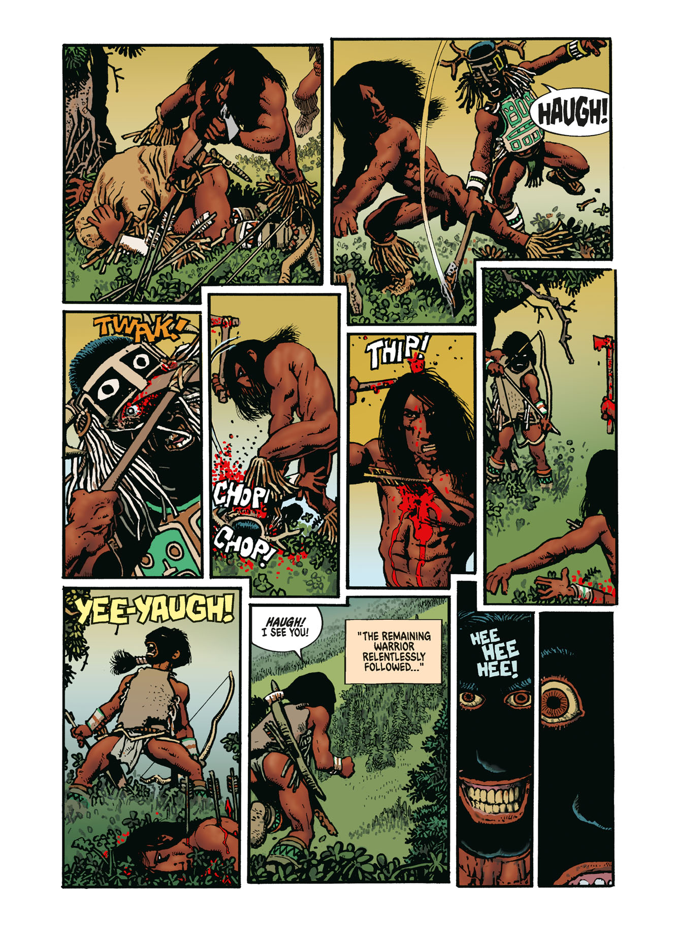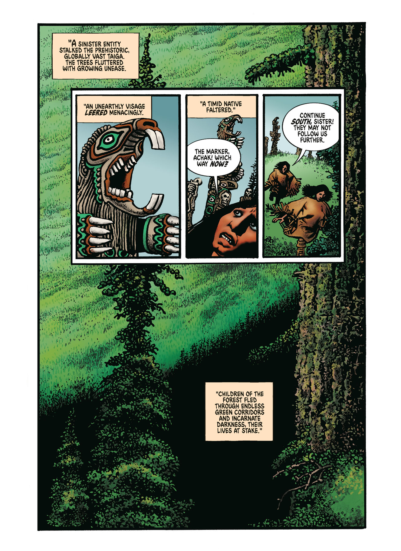 Terrible things stalk the forests outside Arkham in this chilling original tale from comics master Richard Corben! An arrogant city slicker on a quest to uncover the background of a young woman from the backwoods finds horrors beyond imagining, combining Lovecraftian mutations with Native American legends.