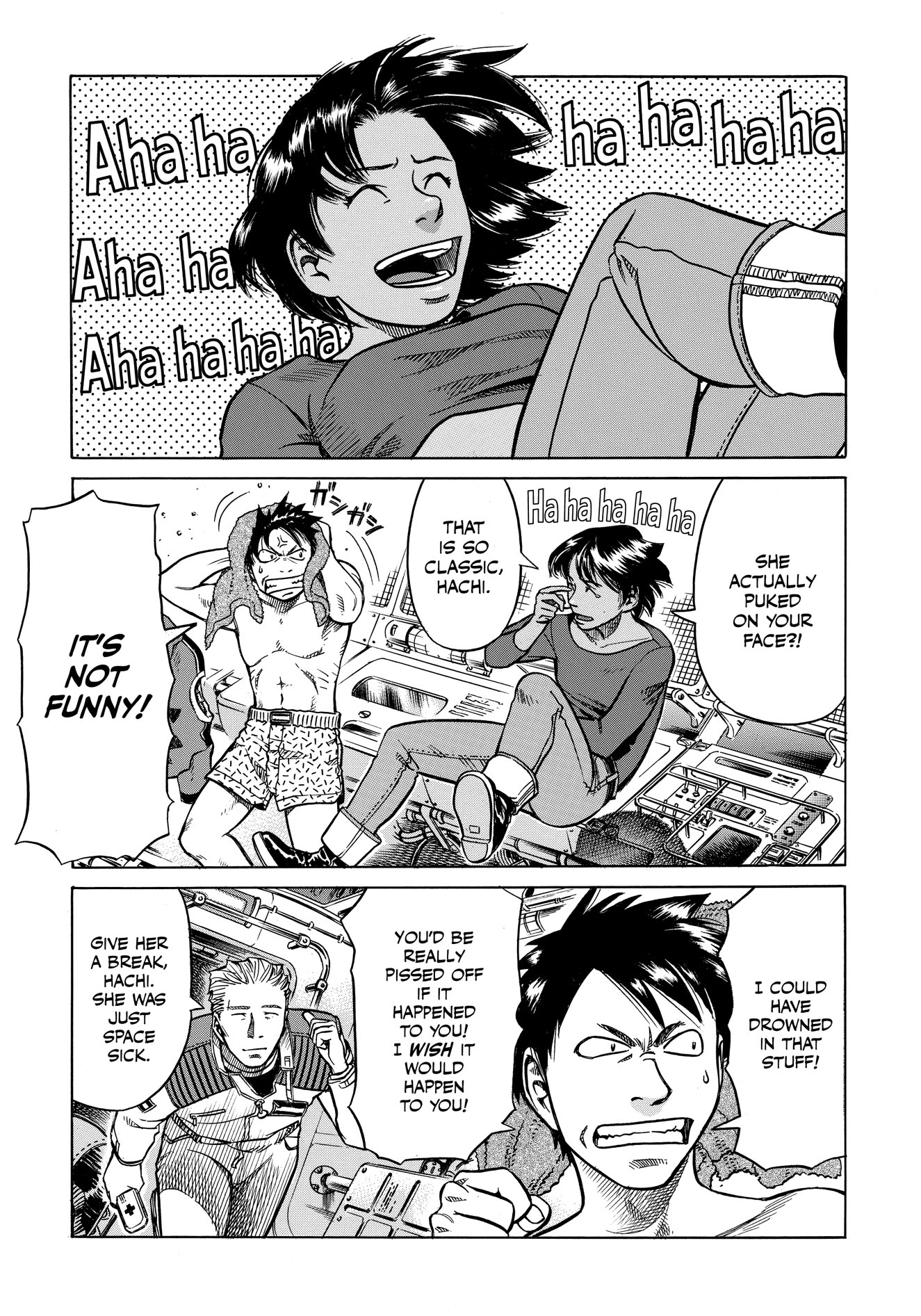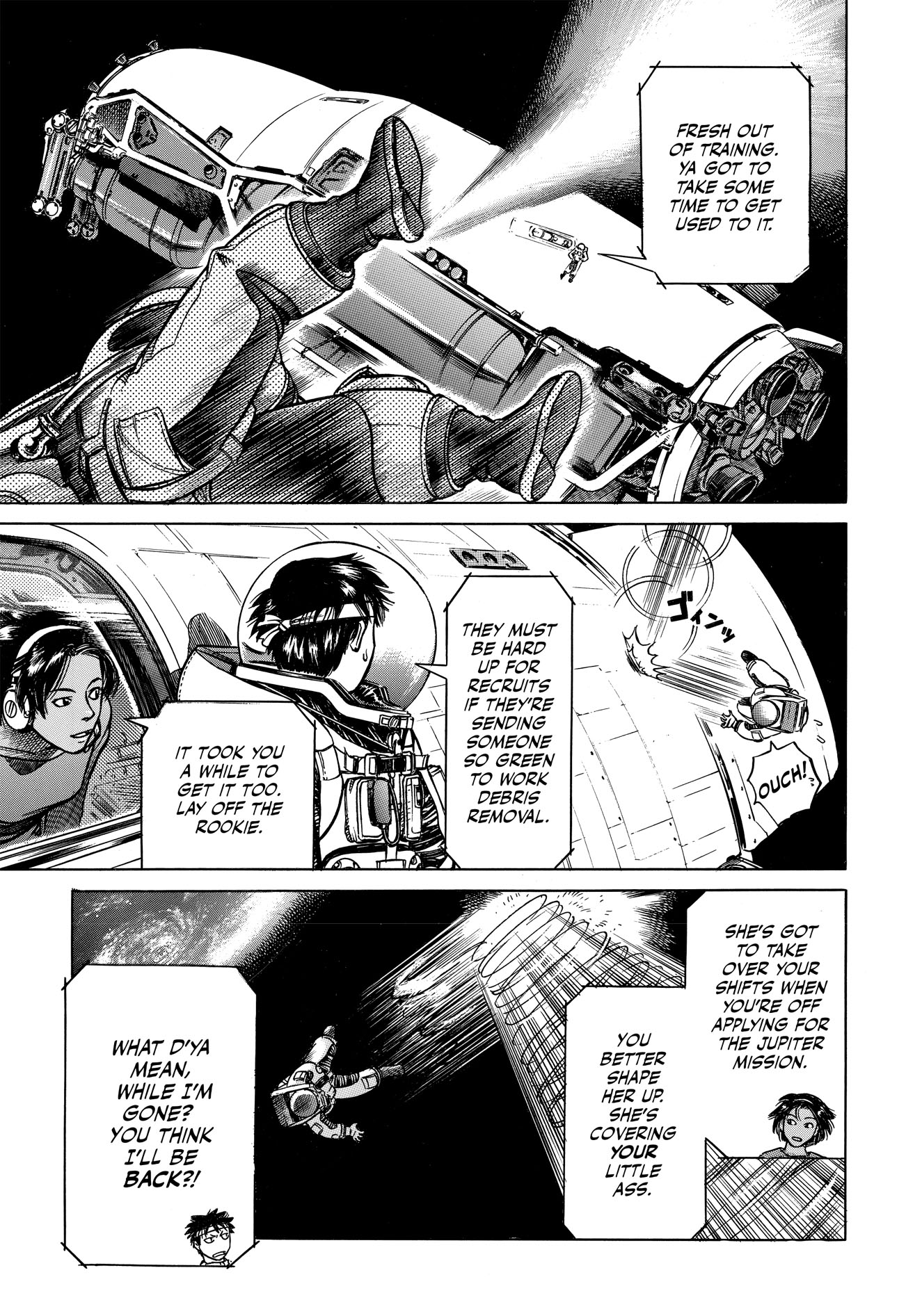 Hachi, son of a famous pioneer of Mars voyages, dreams of breaking out from his father Goro’s shadow by joining the Jupiter mission, but a traumatic brush with death may have used up Hachi’s courage to journey further. Fee, no-nonsense pilot of the Toy Box and working mom, is lauded as a heroine for preventing a terrorist incident in space, but faces an even tougher challenge as an astronaut—finding a place where she can smoke! And Yuri, the ever calm and reliable crewmate on the team, deals with the loss of his wife in a tragic accident while grappling with the true meaning of humanity’s place among the stars.