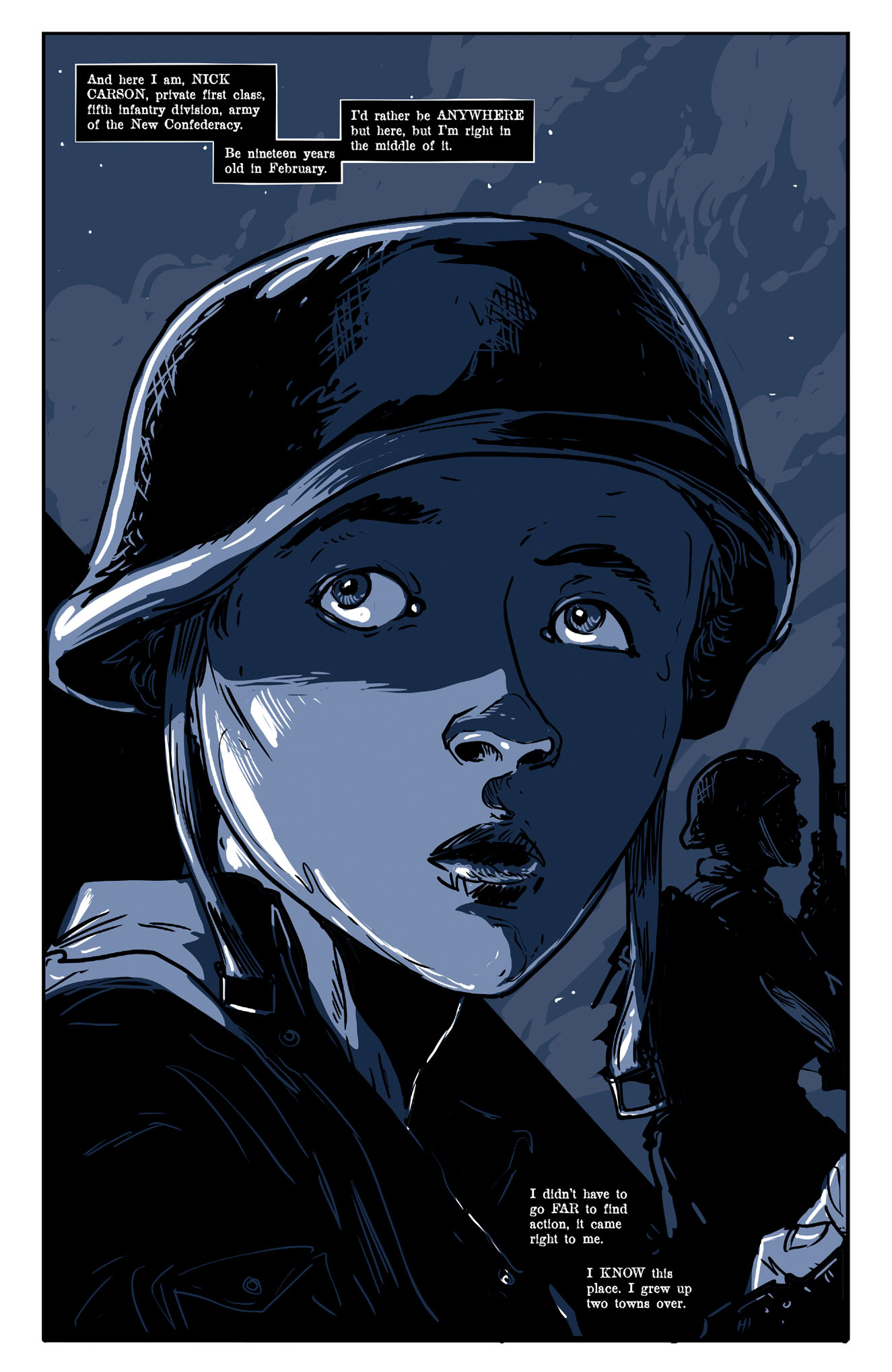 Set in an alternate future amid a Second Civil War, wounded infantryman Nick Carson flees the battlefield and escapes across the wasteland of war-torn America.