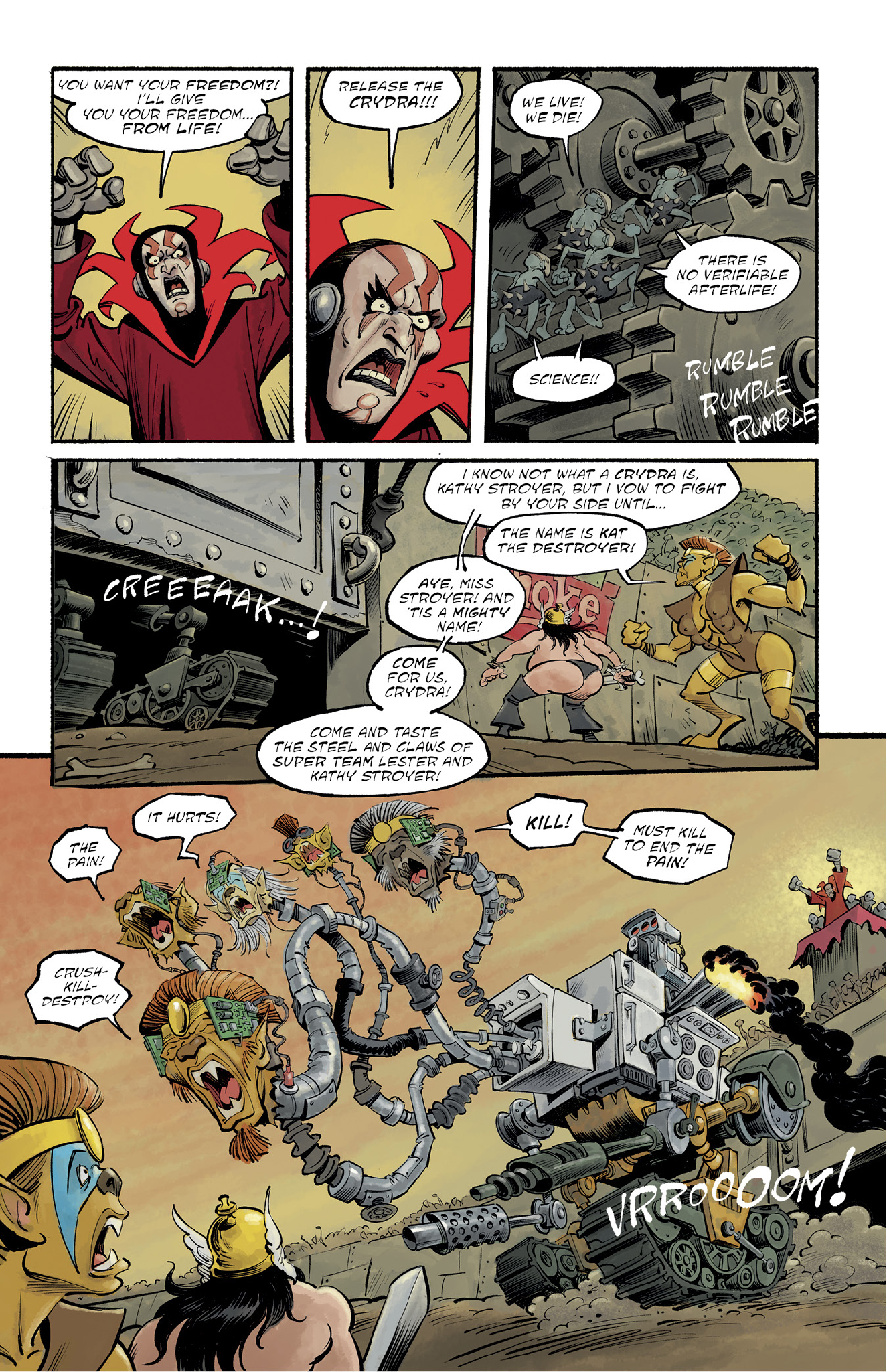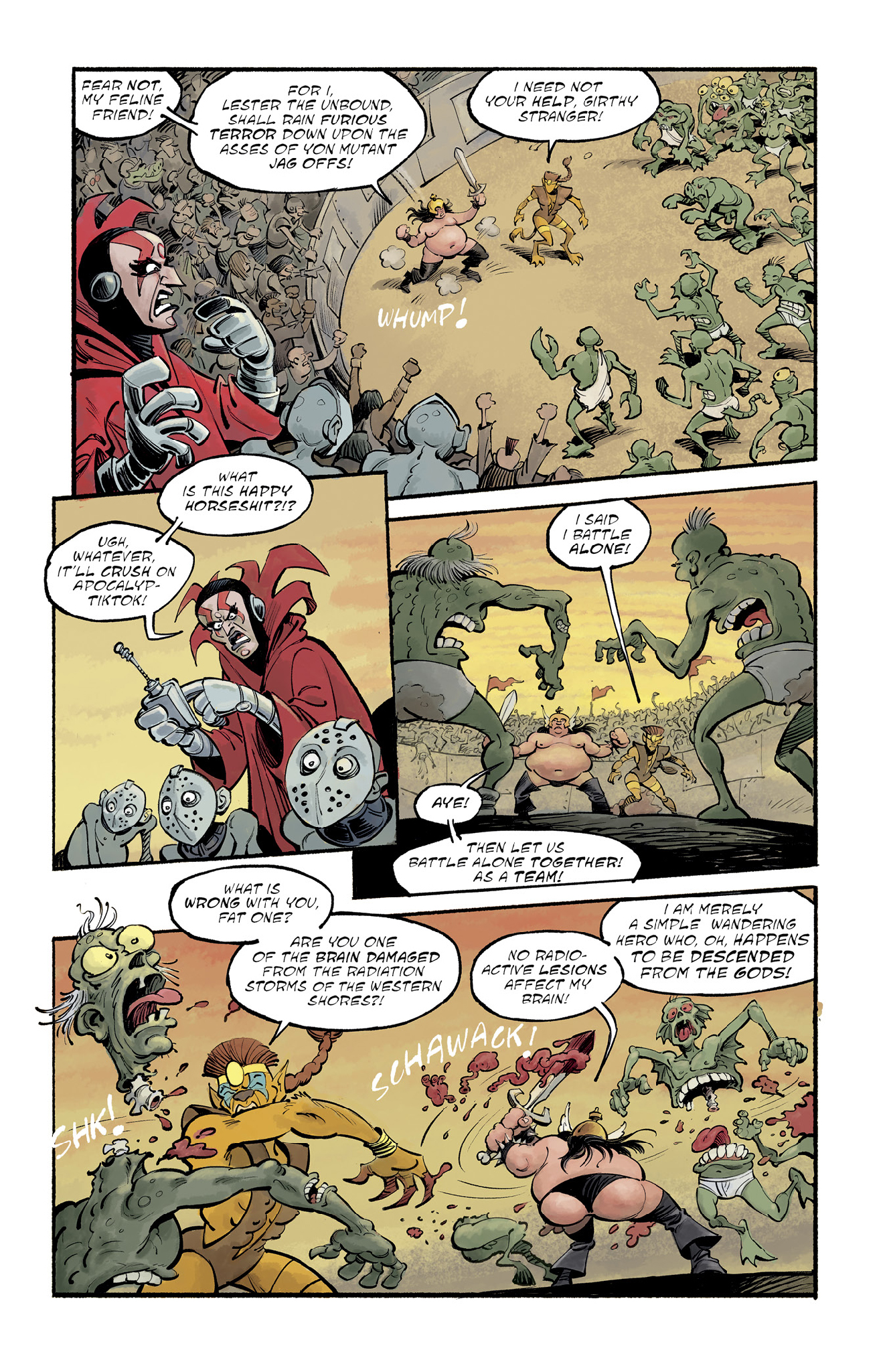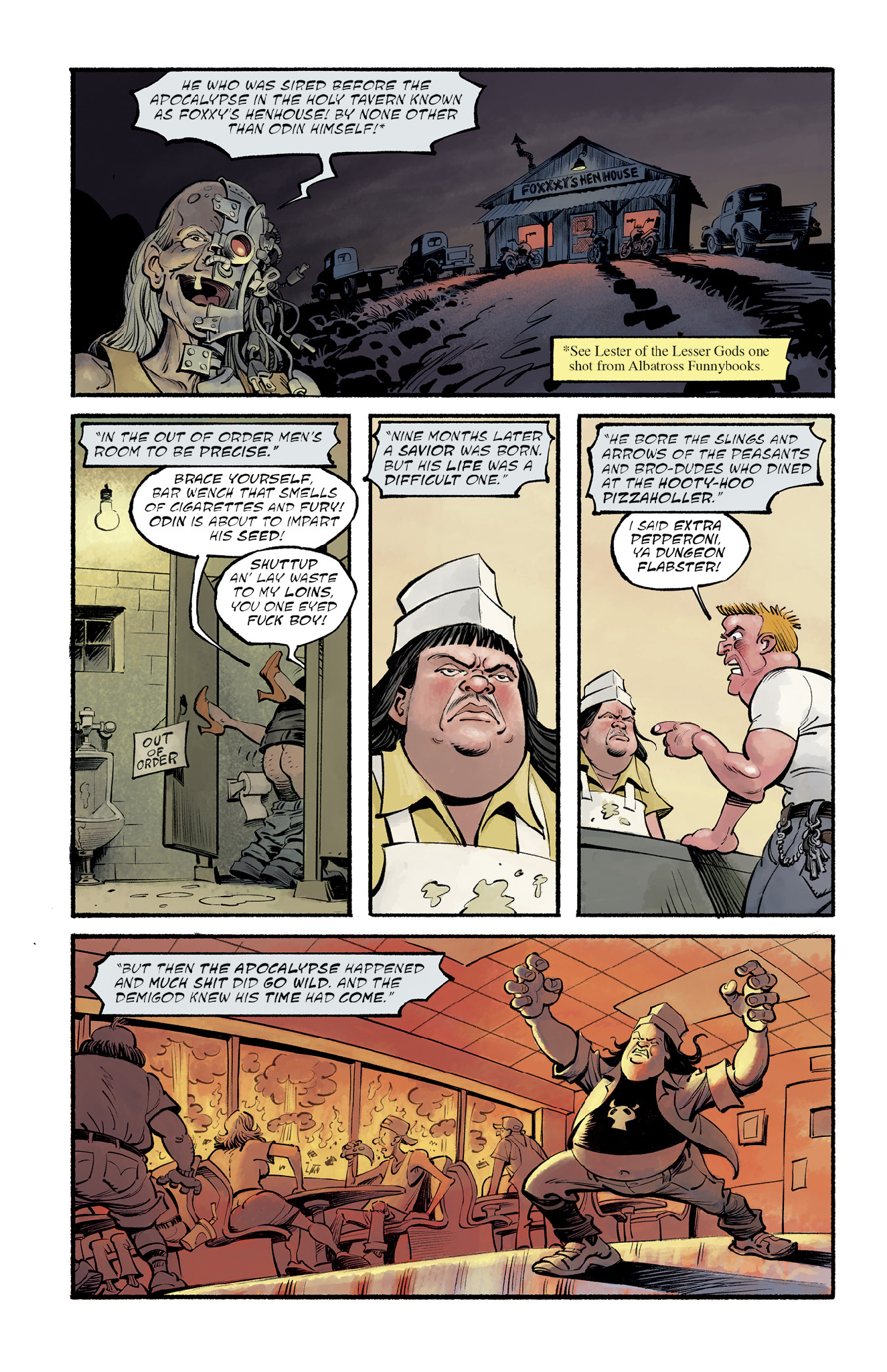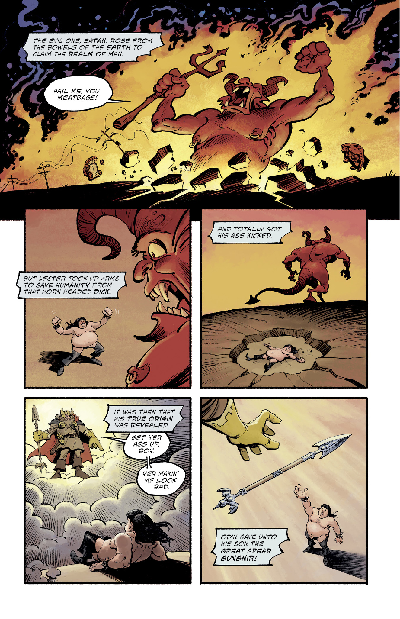 Eric Powell (The Goon) and comedian and voice actor Lucky Yates (Archer) combine twisted comedic talents to bring you Lester of the Lesser Gods. Originally created as an unproduced animated short by Powell a decade ago, the concept was revived when the two writers were looking for a comic project to work on and Lester was born!