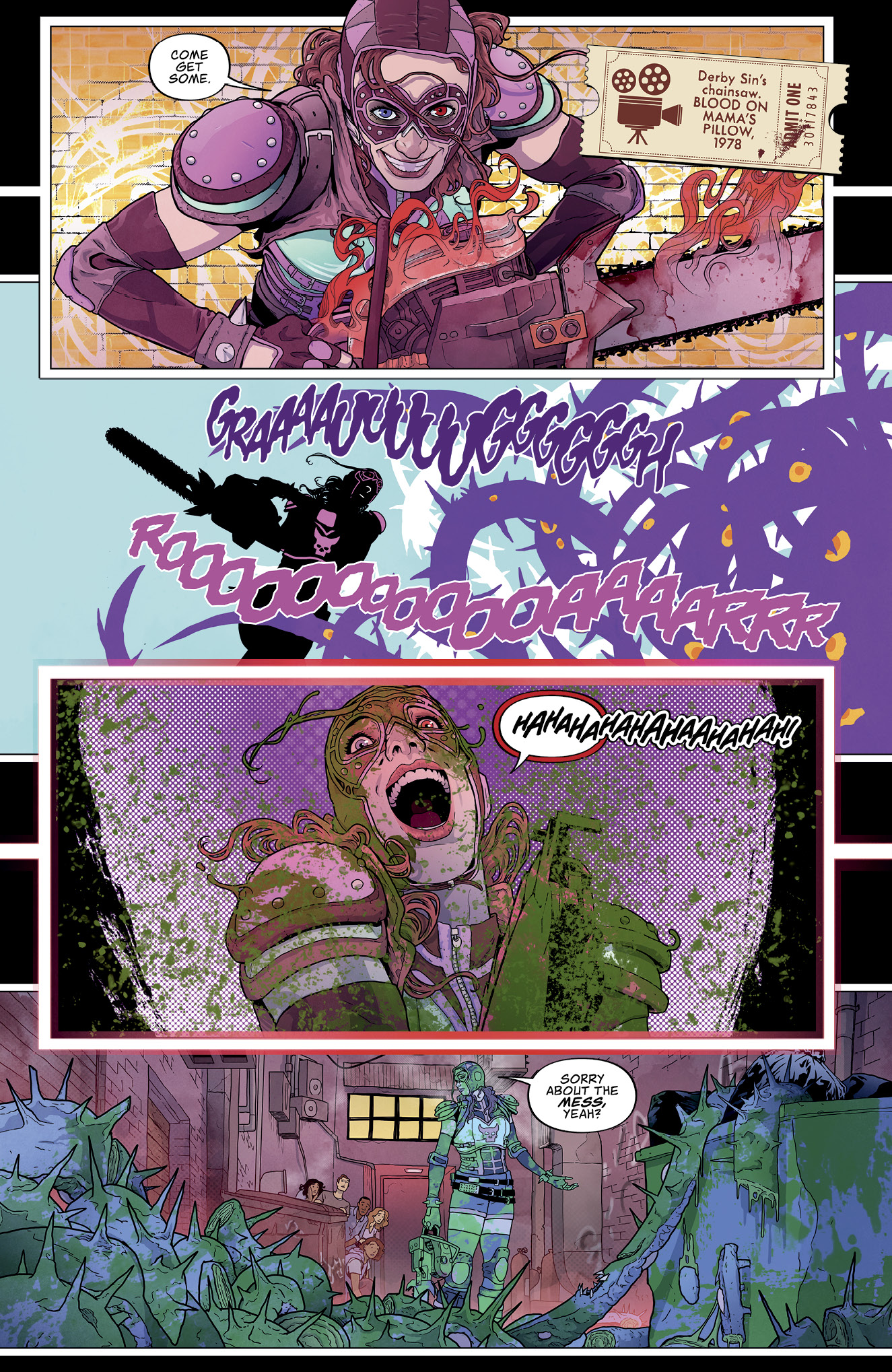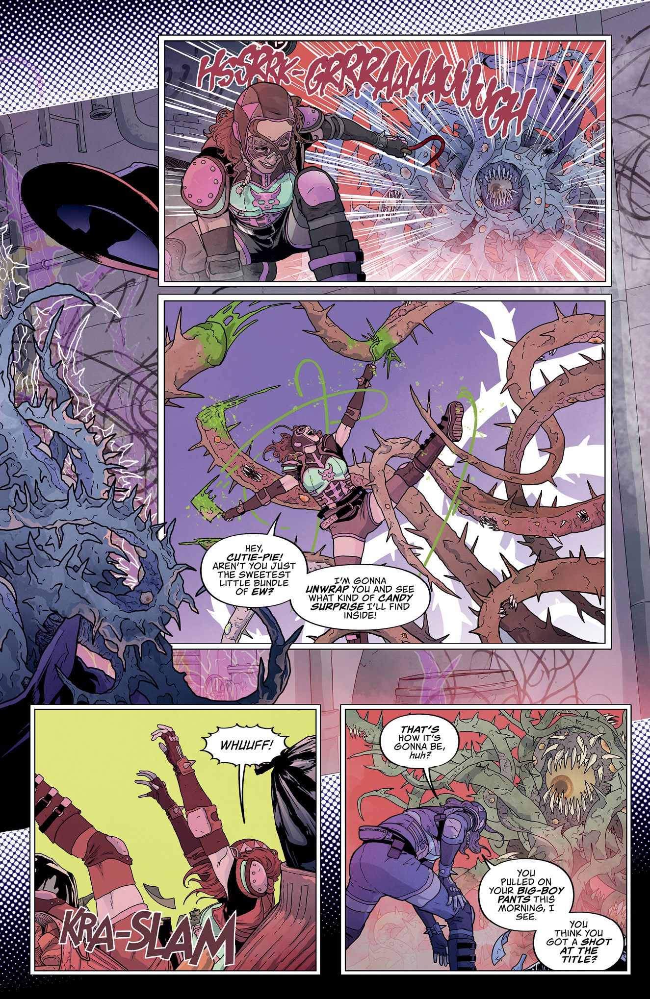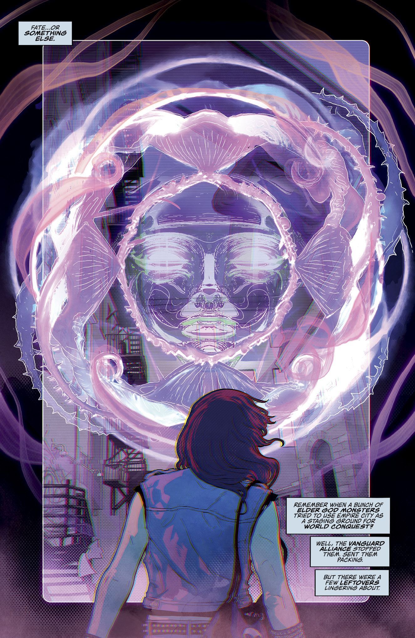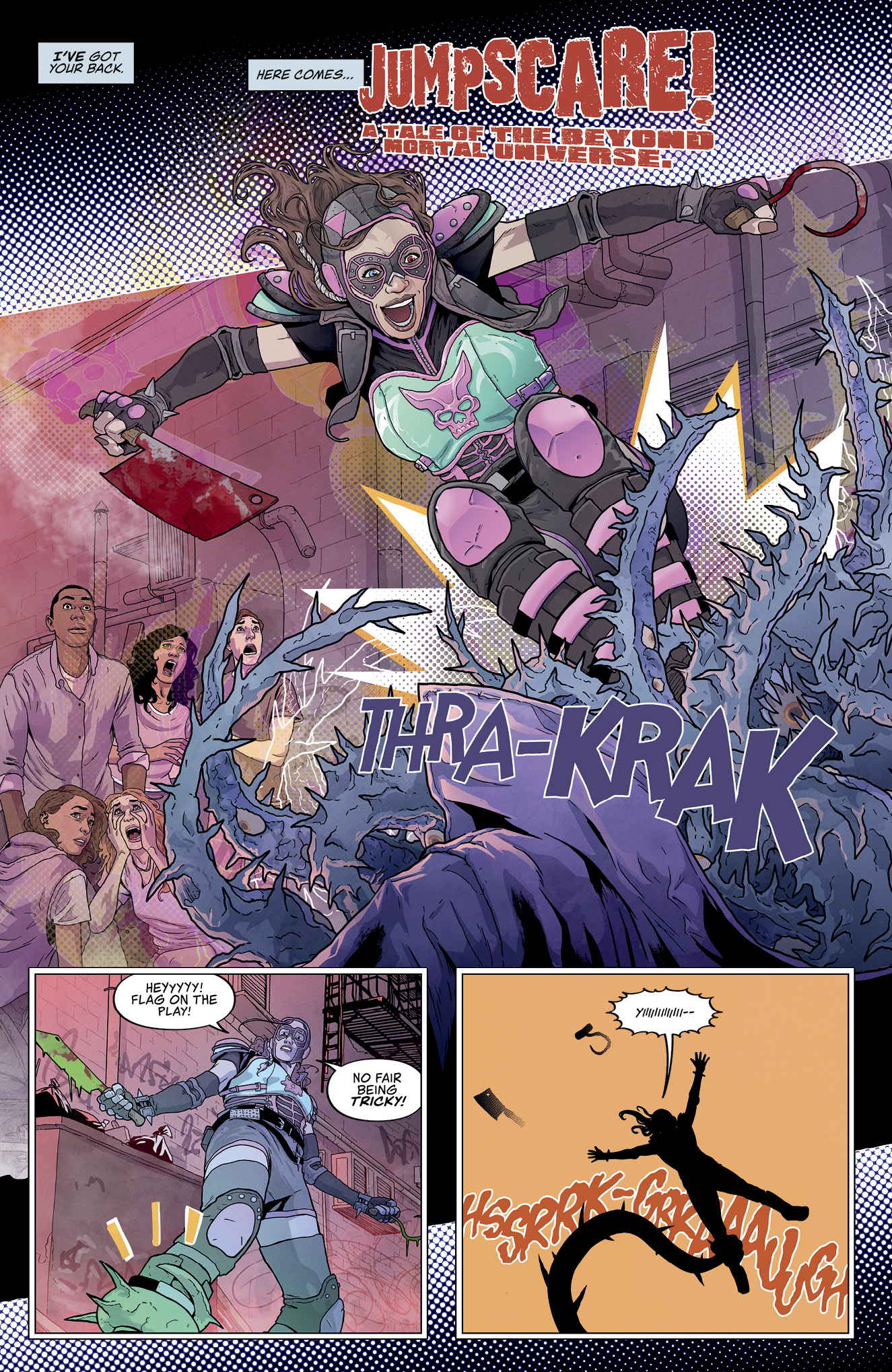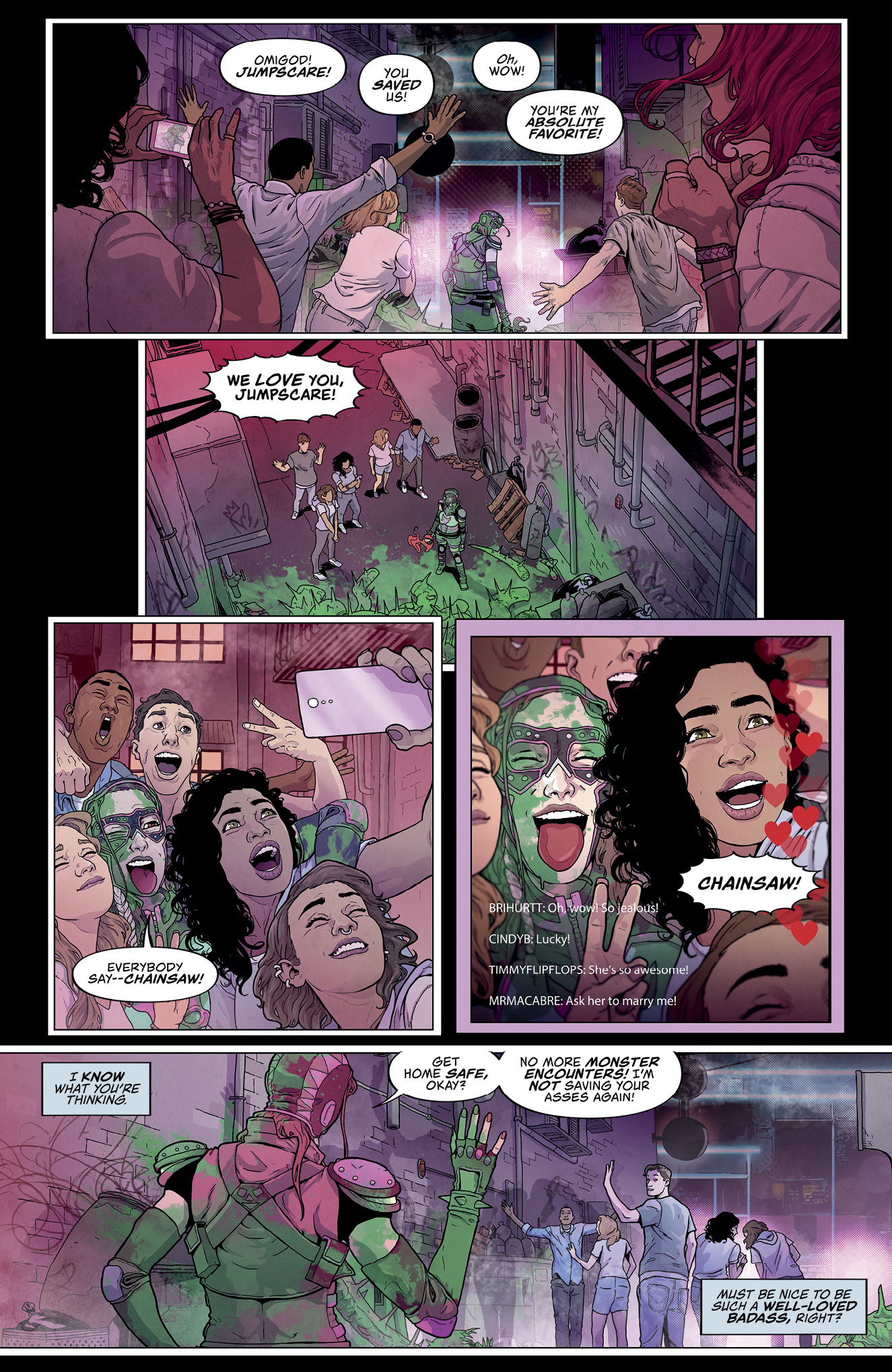 Horror fan turned vigilante Jumpscare can conjure any gore-soaked weapon from any gore-soaked movie she's watched. Using this power, she's become a force for good in Empire City...and the world's most popular superhero! Even with all her powers, though, she may not be able to save her estranged sister from the clutches of mobster-turned-monster—Grindhouse! Especially with a band of eldritch zealots called the Dismal Concordat standing in her way!
