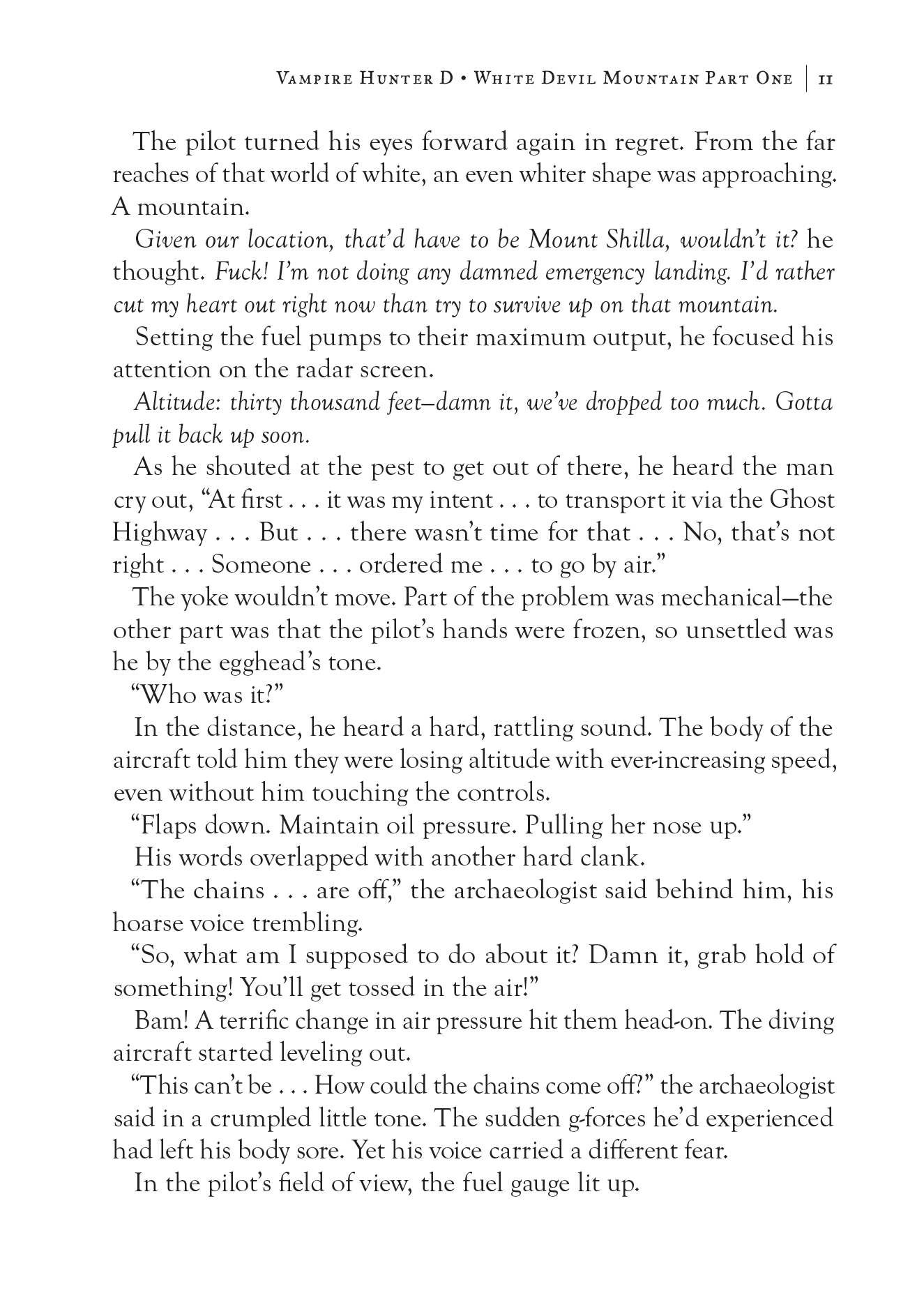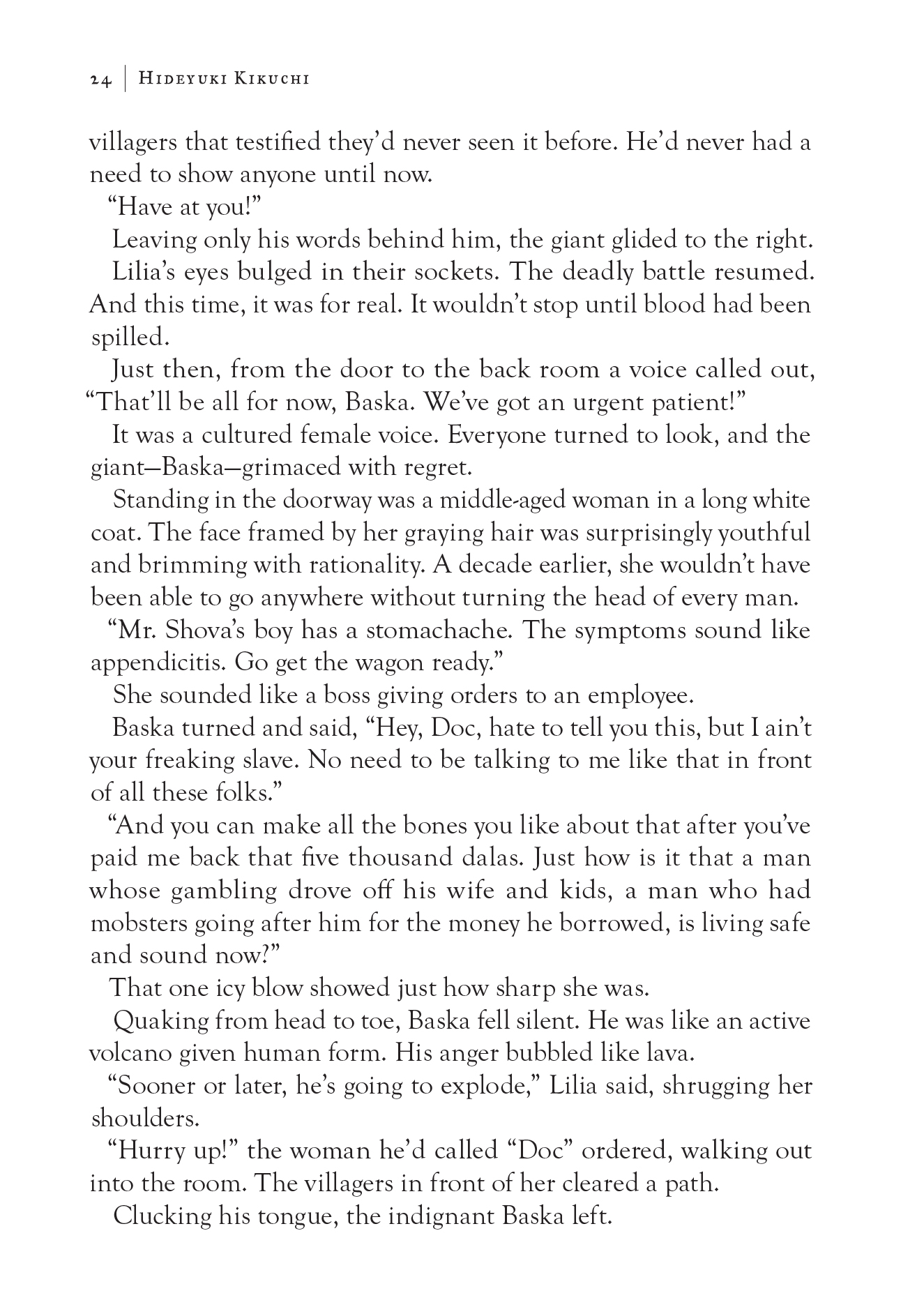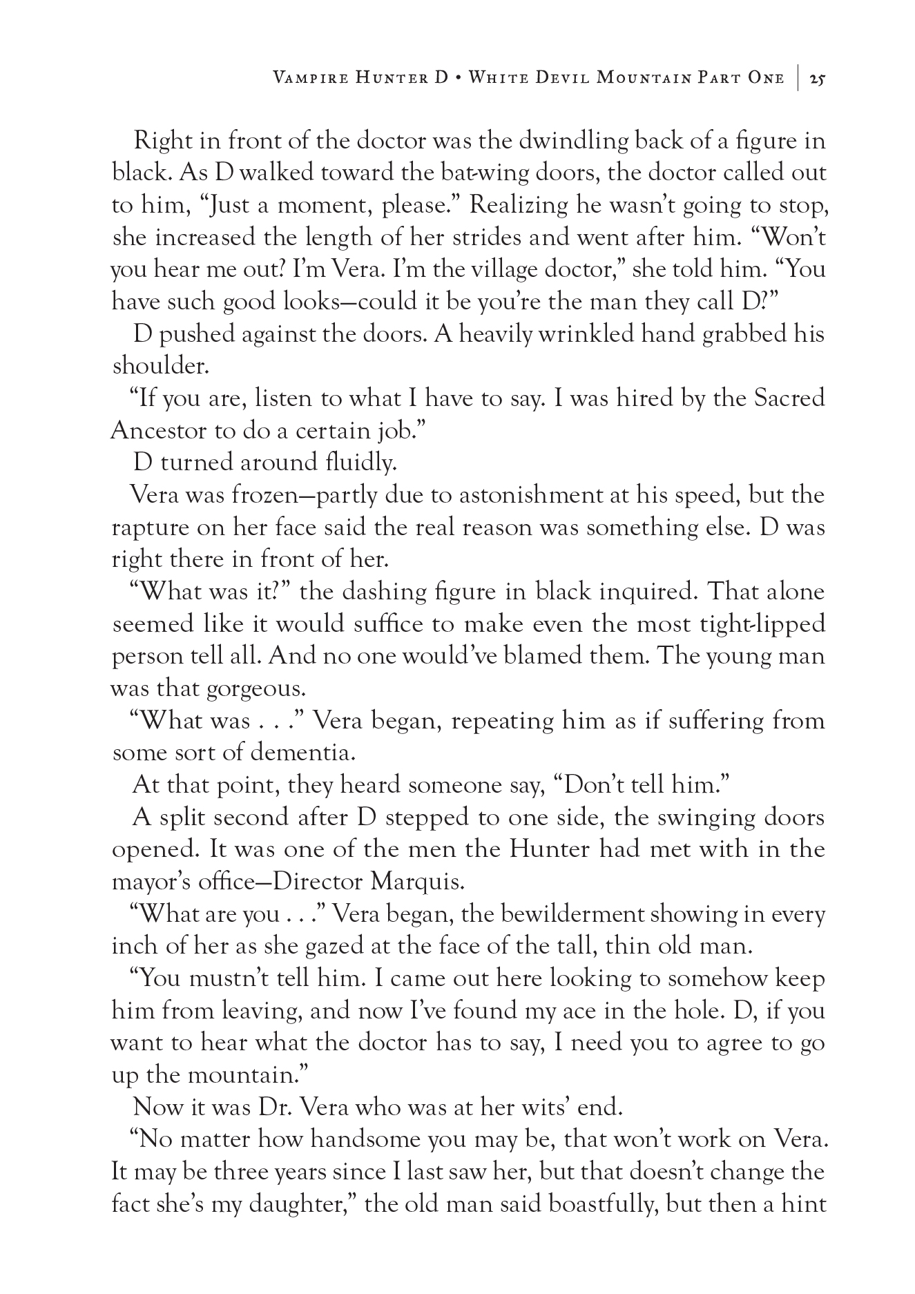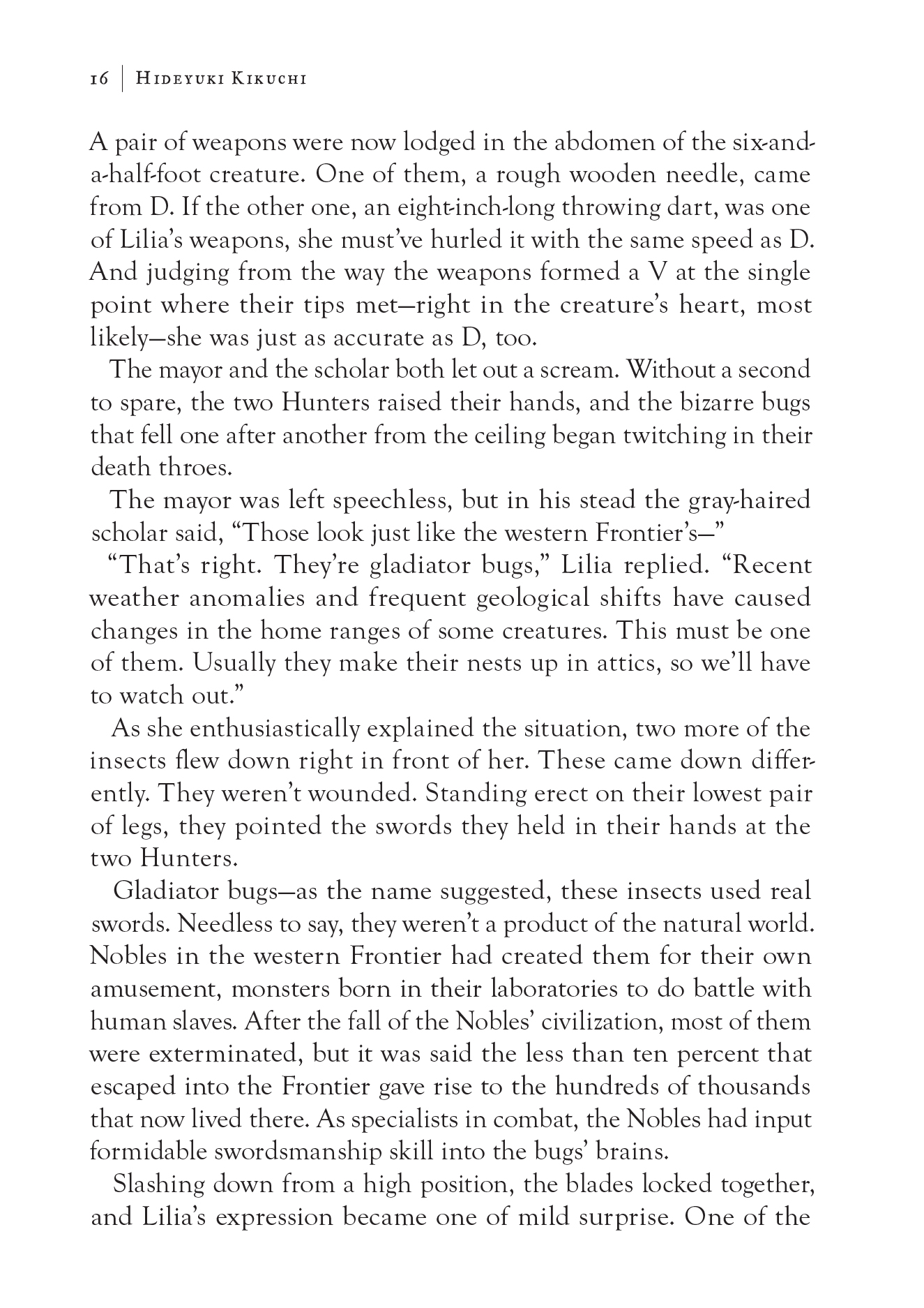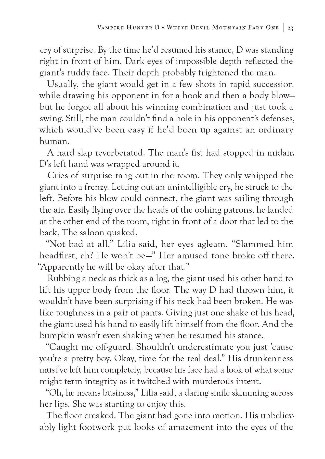 The hunt continues in the bizarre far future of 12,090 A.D, where the immortal vampire lords who were the only winners of mankind’s nuclear war still oppress the human survivors who have pushed the blood-drinking fiends back to the lawless Frontier. Yet humanity too remains as quick as ever to prey upon itself, and where the law can’t bring safety or justice, the crescent blade of D will—assuming you meet the half-vampire wanderer’s price!