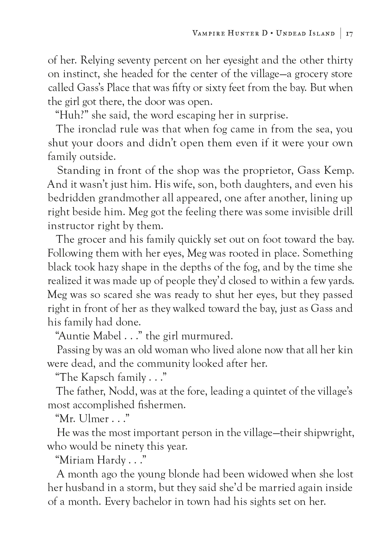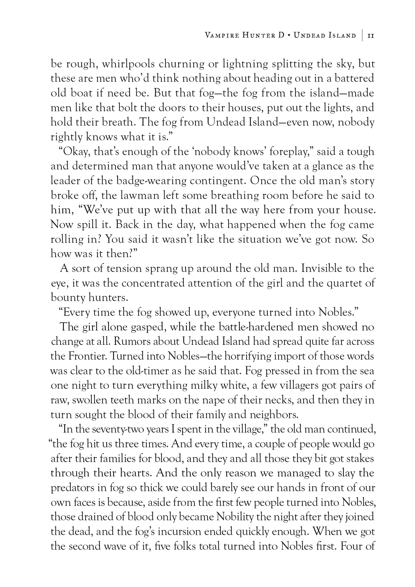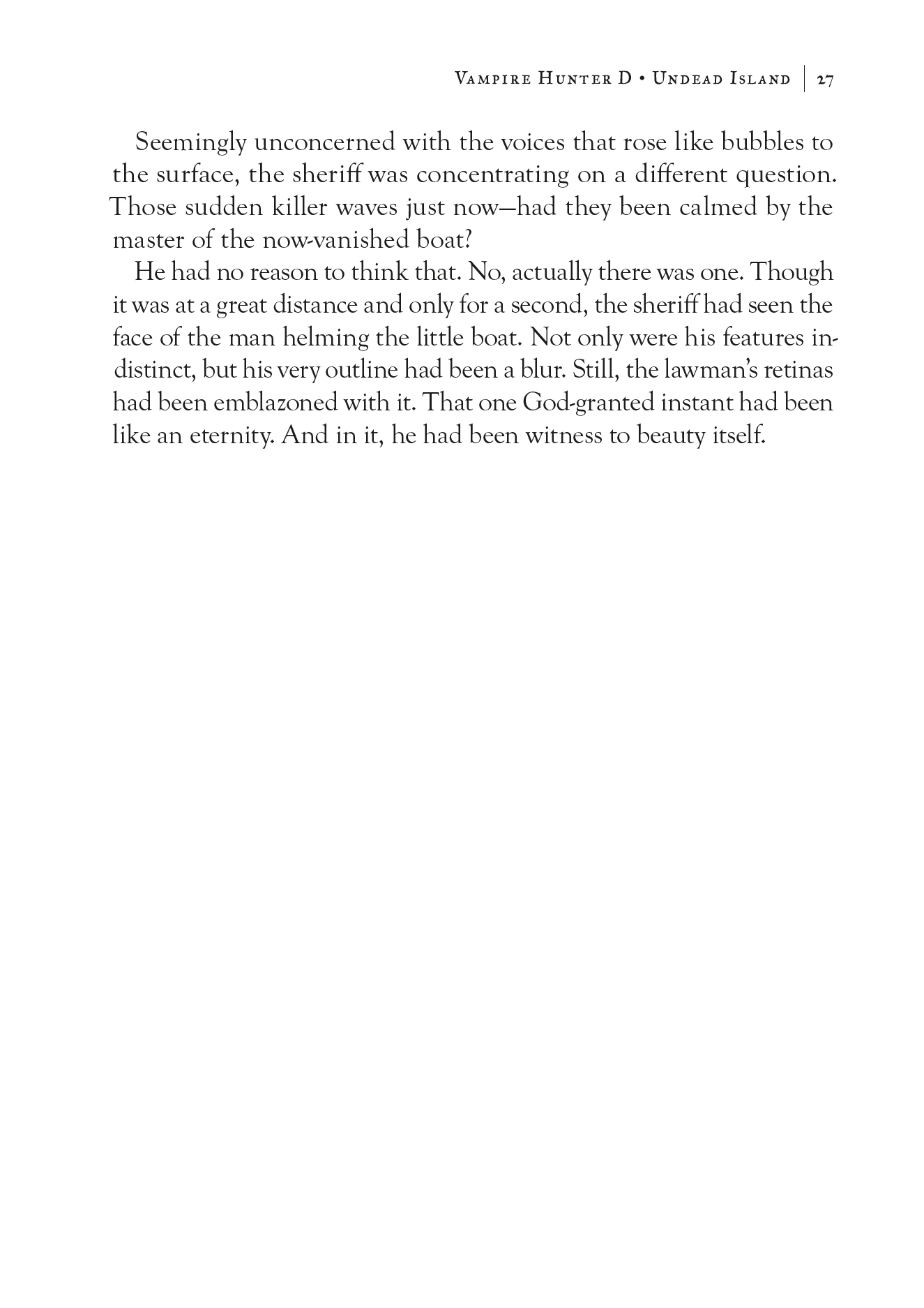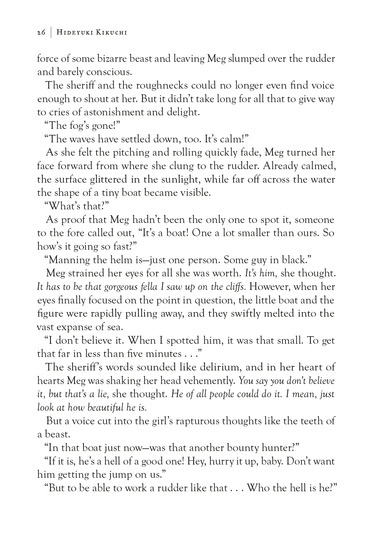 The hunt continues in the bizarre far future of 12,090 A.D, where the immortal vampire lords who were the only winners of mankind’s nuclear war still oppress the human survivors who have pushed the blood-drinking fiends back to the lawless Frontier. Yet humanity too remains as quick as ever to prey upon itself, and where the law can’t bring safety or justice, the crescent blade of D will—assuming you meet the half-vampire wanderer’s price!