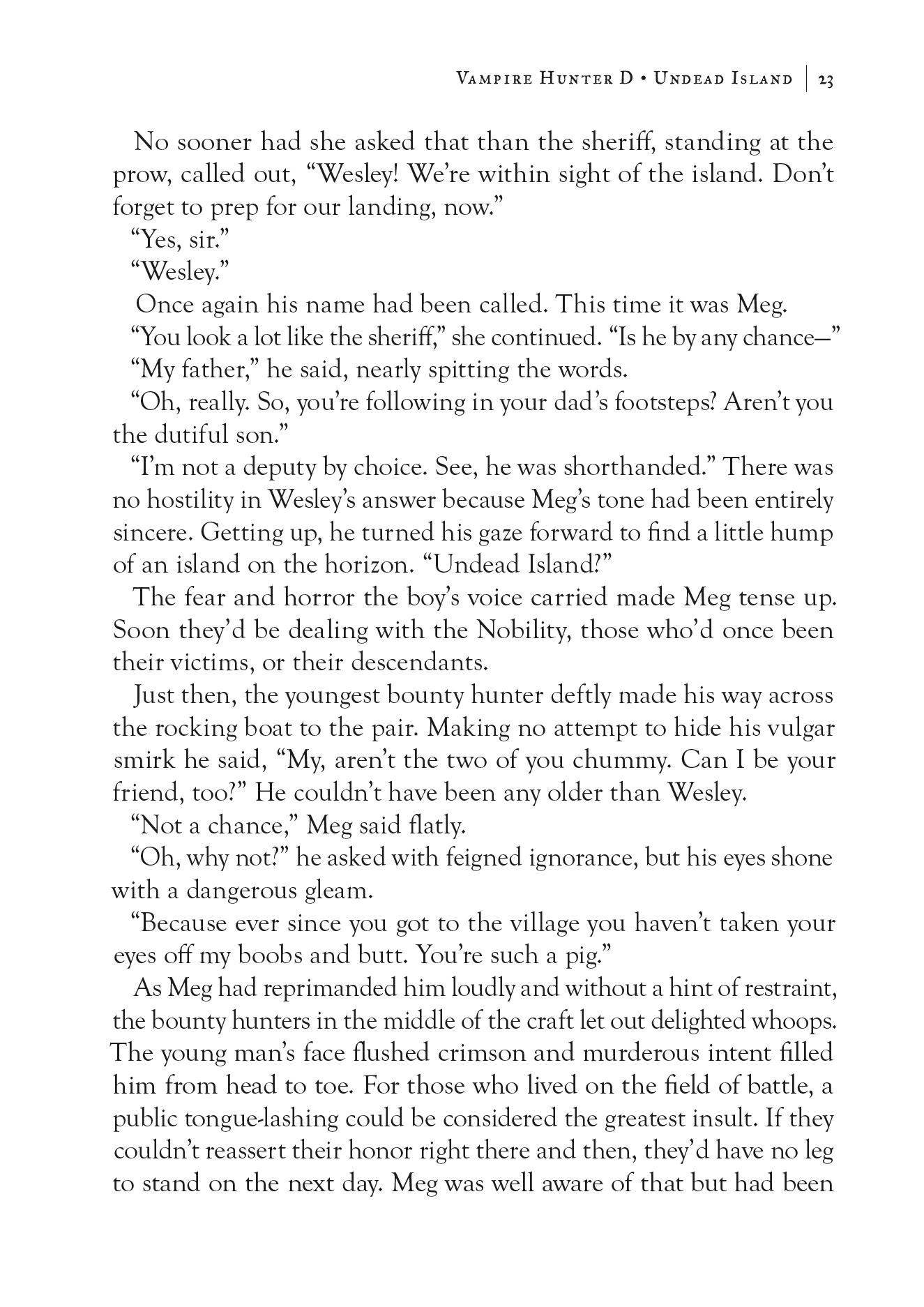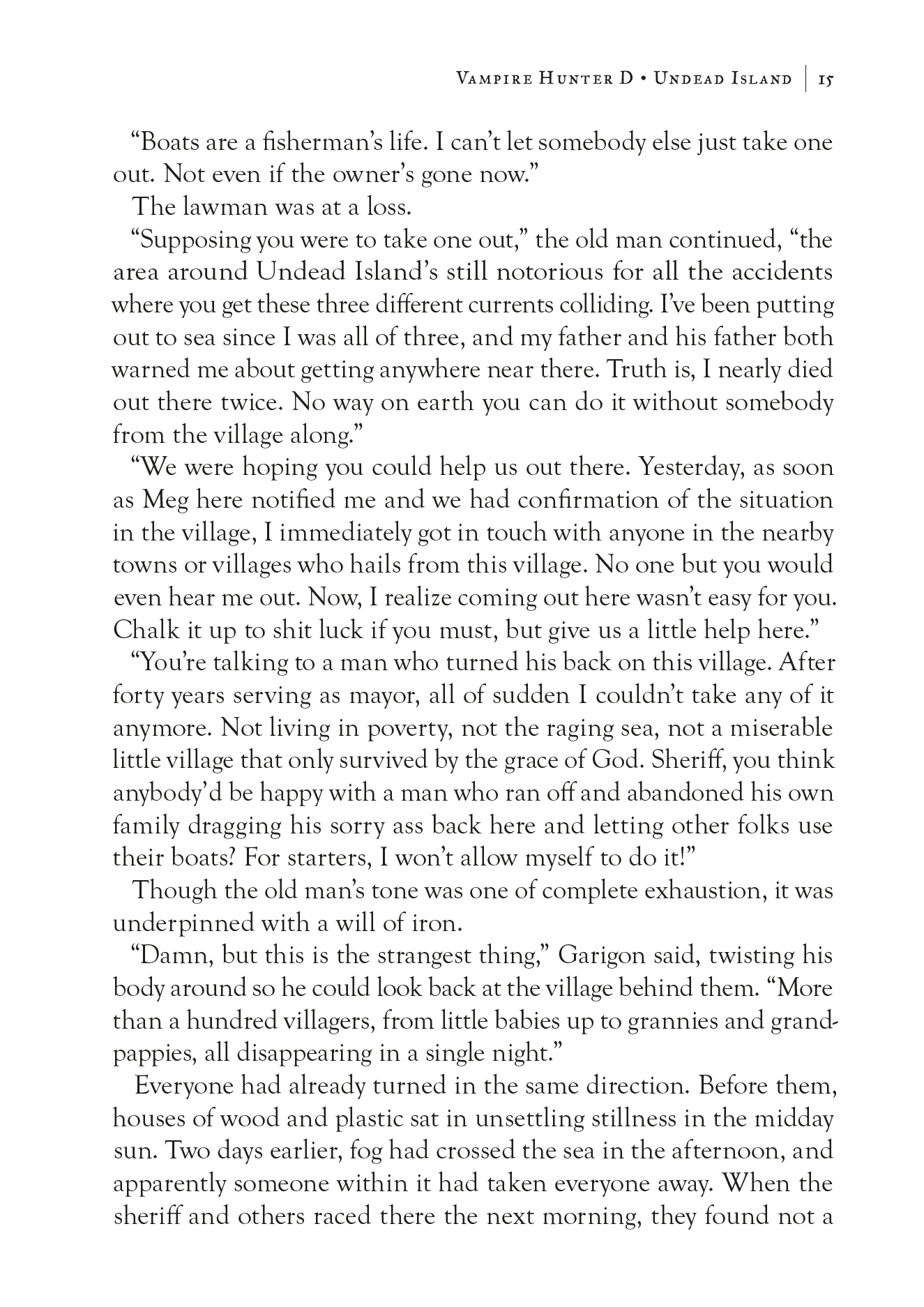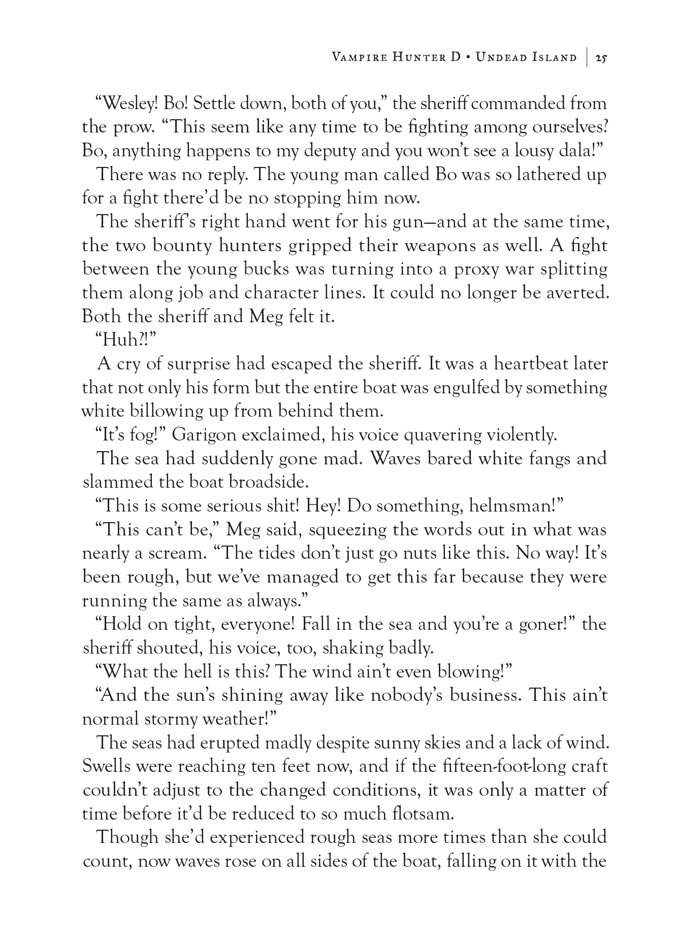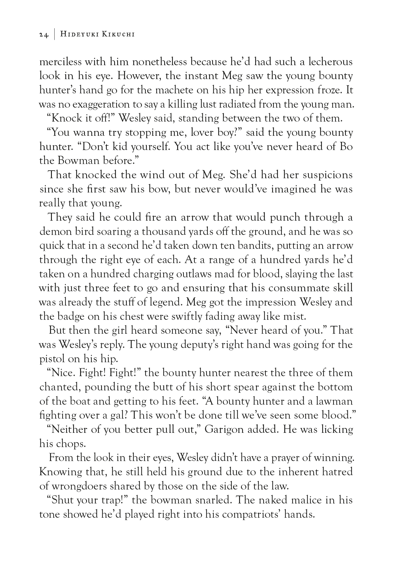 The hunt continues in the bizarre far future of 12,090 A.D, where the immortal vampire lords who were the only winners of mankind’s nuclear war still oppress the human survivors who have pushed the blood-drinking fiends back to the lawless Frontier. Yet humanity too remains as quick as ever to prey upon itself, and where the law can’t bring safety or justice, the crescent blade of D will—assuming you meet the half-vampire wanderer’s price!
