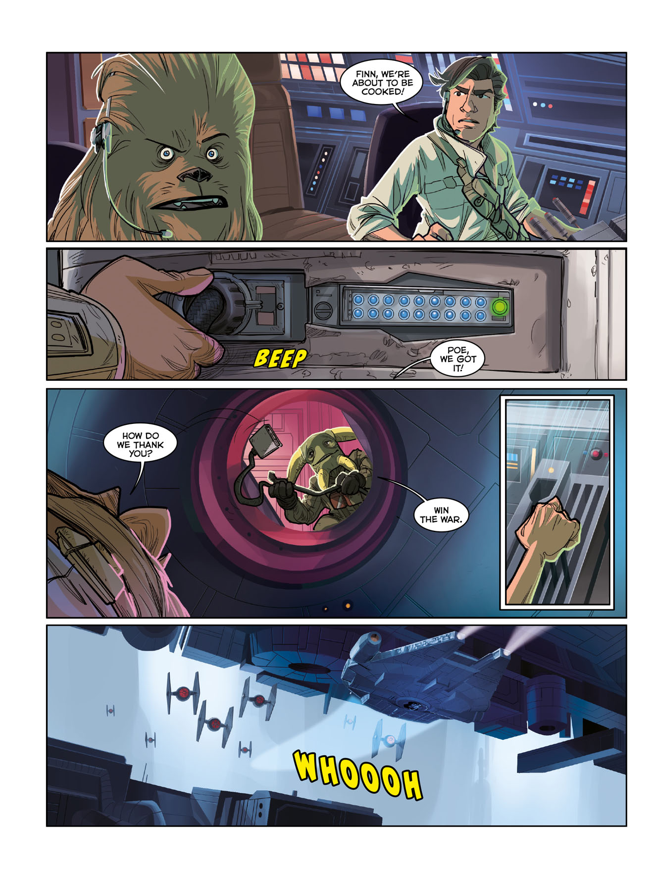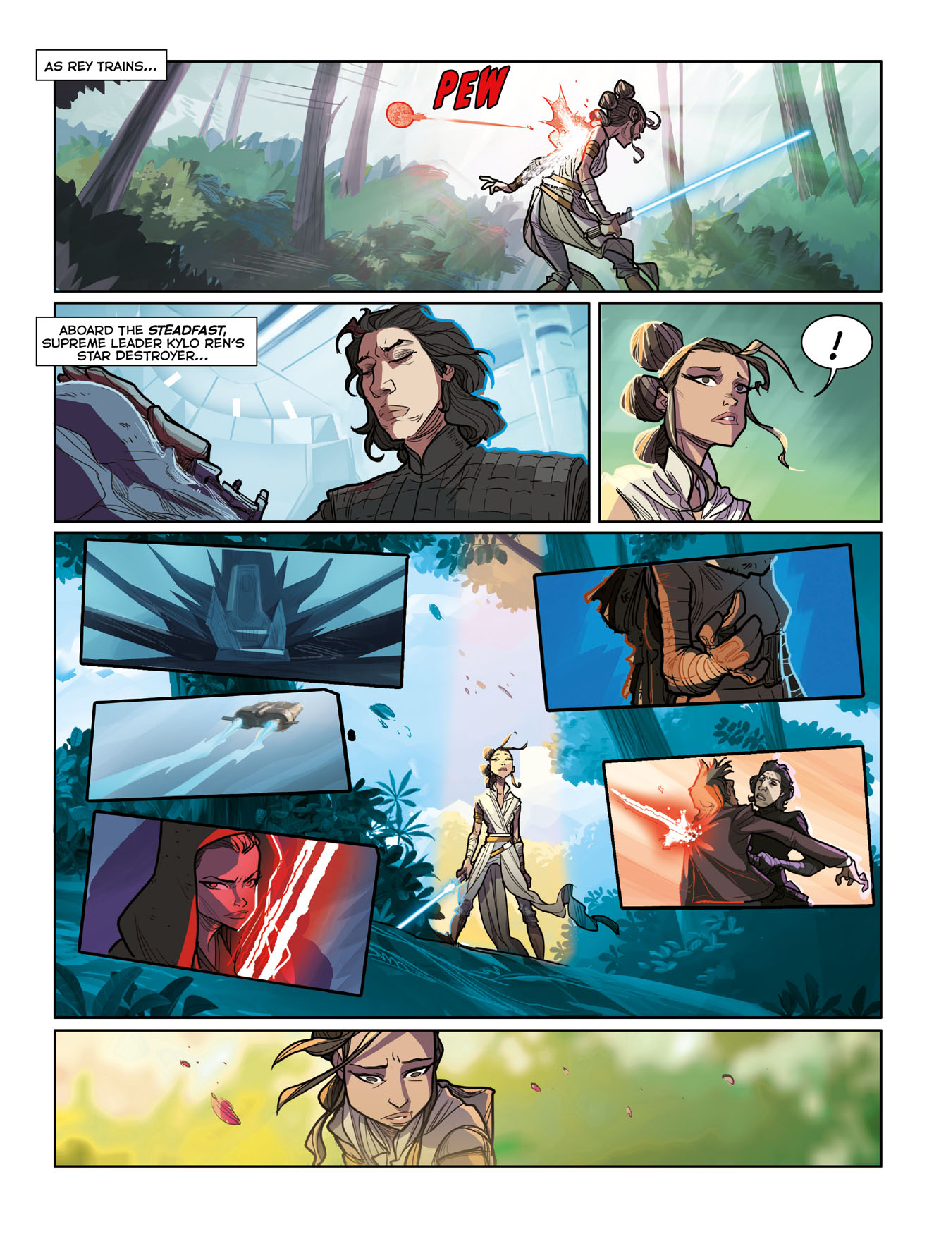 In The Last Jedi, Rey tries to convince a weary Luke to teach her the ways of the Force, while navigating her fledgling bond with the fearsome Kylo Ren! Meanwhile, Finn, Poe, and Rose Tico mount a risky plan to save a weakened Resistance from the First Order’s clutches. It all comes to a head in a thrilling battle on a striking salt planet!