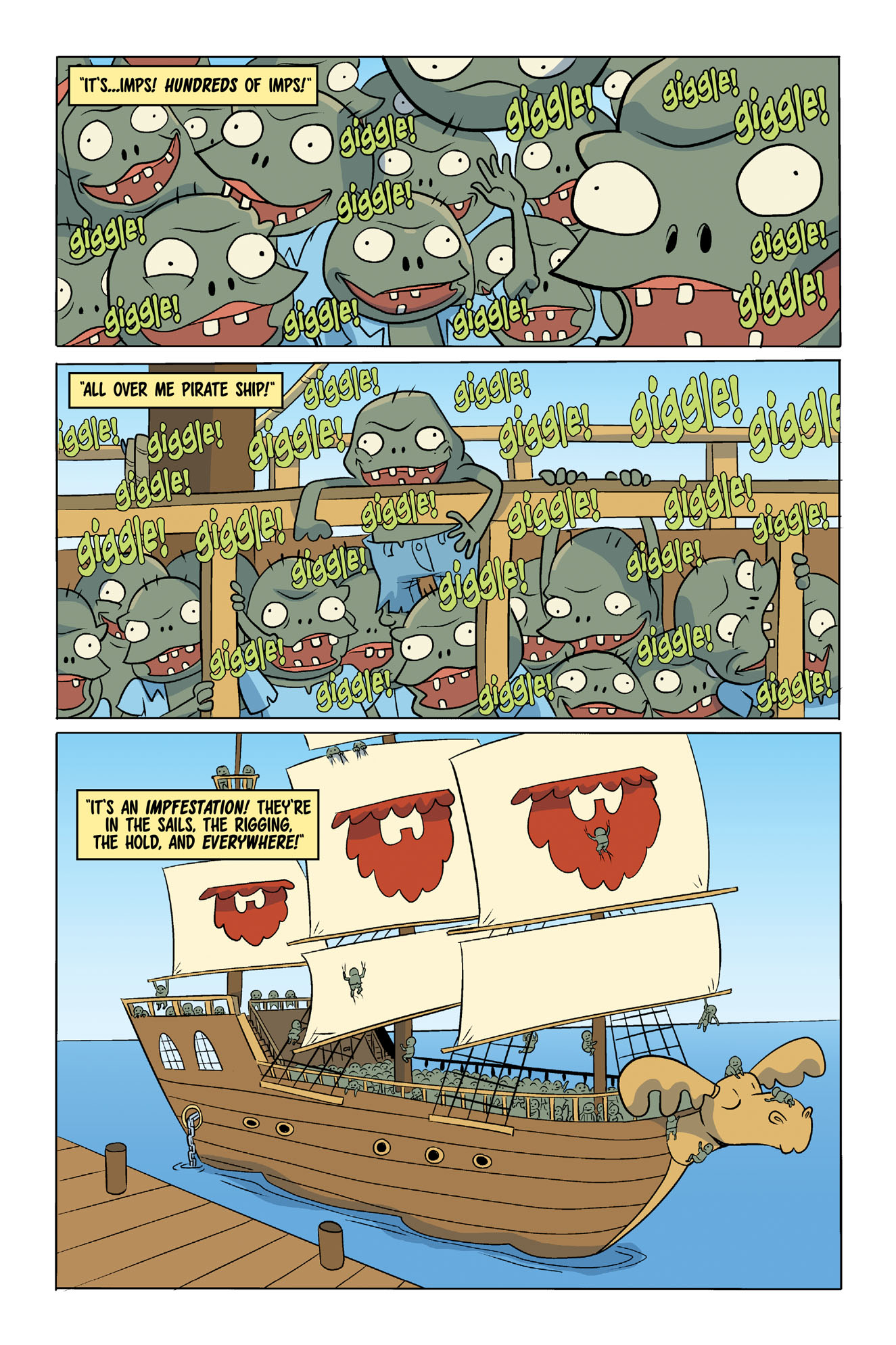 A new boxed set collecting three humorous hardcover graphic novels from the award-winning Plants vs. Zombies series with a double-sided poster and unique slipcase! Enjoy three standalone adventures, starting with Impfestation—which finds an infestation of troublesome imps overloading Chesbeard’s pirate ship! Next, Zomboss creates four brain bots that can predict the future, so he’ll always be one step ahead of the plant team and Crazy Dave, in The Unpredictables! And when a sudden wave of Zombies Automatically Produced by a Zomboss invention causes zombie storms in Neighborville—can Patrice, Nate, and Crazy Dave destroy the machine before their town is Zapped beyond recovery…? Written by the brilliantly clever Paul Tobin and featuring gorgeous artwork by talented artists Luisa Russo, Cat Farris, and Christianne Gillenardo-Goudreau!