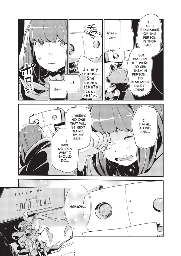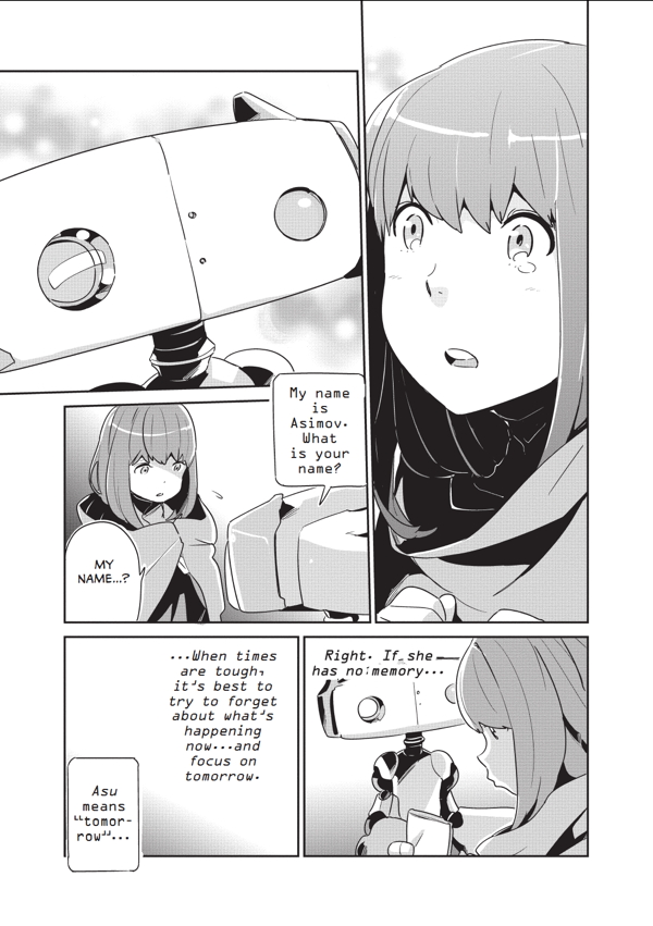 In the distant future, Asumi--a girl who has no clue to her memories but a drawing of a green-haired, ponytailed person--finds her only friend in Asimov, a battered old delivery robot. The strange companions travel the stars together in search of the mysterious ''Miku,'' only to learn the legendary idol has taken different forms on many different worlds!