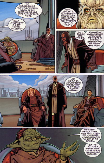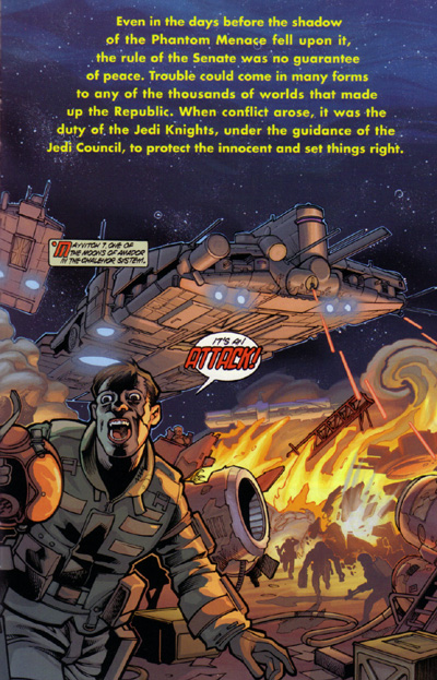 Even in the days before the shadow of the Phantom Menace falls upon the Republic, the rule of the Senate is no guarantee of peace. When conflicts arise, it is the duty of the Jedi Knights, under the guidance of the Jedi Council, to protect the innocent and restore order. When the warlike Yinchorri threaten the stability of the Republic, a Jedi task force led by Mace Windu and including Qui-Gin Jinn and Obi-Wan Kenobi is sent to the Yinchorri system to settle matters, and they soon find themselves facing overwhelming odds on three different worlds. Collecting the four-issue series.