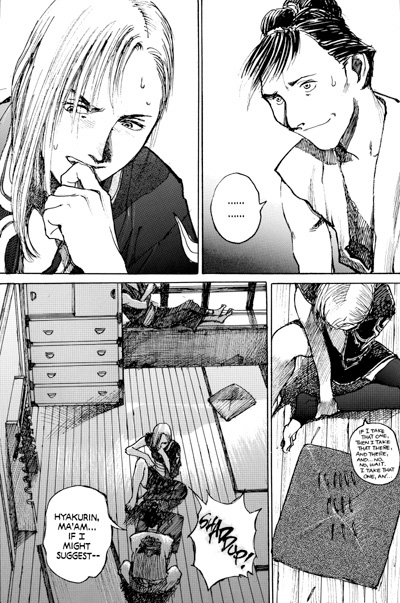 It is said that the enemy of my enemy is my friend, but couldn't he just be another enemy? Rin and her bodyguard, the immortal swordsman Manji, need to know the answer when they visit the headquarters of the mysterious Akagi assassins -- led by the beautiful and deadly Hyakurin -- who are out for vengeance against the Itto-Ryu, the rogue sword-school of Anotsu Kagehisa, the man responsible for the murder of Rin's parents. Can Rin and Manji hold to their own course once they've agreed to join forces with the misfit band of killers?