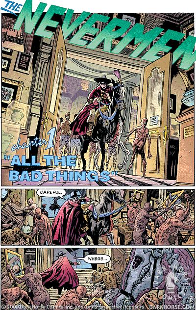 "This never happened. We were never here." Where they come from, no one knows. Where they go when their crime-fighting work is done is a mystery. They are the Nevermen, the greatest heroes who never existed -- in the mission they never expected! One of the Nevermen is missing, taking with him the only clues to a plot that has the criminal underworld in turmoil. With homicidal monkey butlers, disembodied living heads, the diabolical League of Crows, and the mysterious villain known as Clockwork arrayed against them, the remaining Nevermen find themselves seeking the help of one of their former companions now turned free-lance avenger -- The Murderist -- in order to stem the swelling tide of evil that threatens not only the Nevermen's beloved city, but the very fabric of time and space! This definitive collection of the four-issue series also includes the hard-to-find Nevermen tales from Dark Horse Presents!