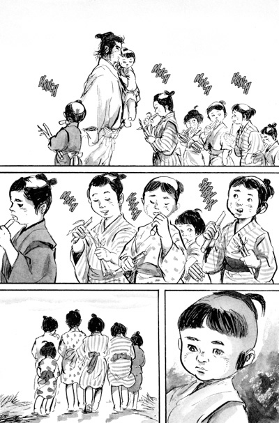 The mortal enemy of our ronin hero, Retsudo Yagyu has been imprisoned in Edo castle by the shogun. It seems the conniving poisoner, Abeno Kaii, has exposed the Yagyu letter! And Yagyu's jailer is none other than the poisoner himself, determined to feed Retsudo the dose that will end his life in a pit of dishonor. But Yagu has spies even in Edo caslte, and a message is sent to his "grass," members of the clan hiding in secret, living as normal townspeople throughout Japan. It is up to them to give their lives in this final hour of desperate need. Meanwhile, Itto Ogami is living in a shack and training his little boy for the day when he must protect the battlefield with his own little hands. Still, two swords remain in this field of death, awaiting the two hands that will draw them from the soil and bring us closer to the end of our tale.This volume contains the following stories: